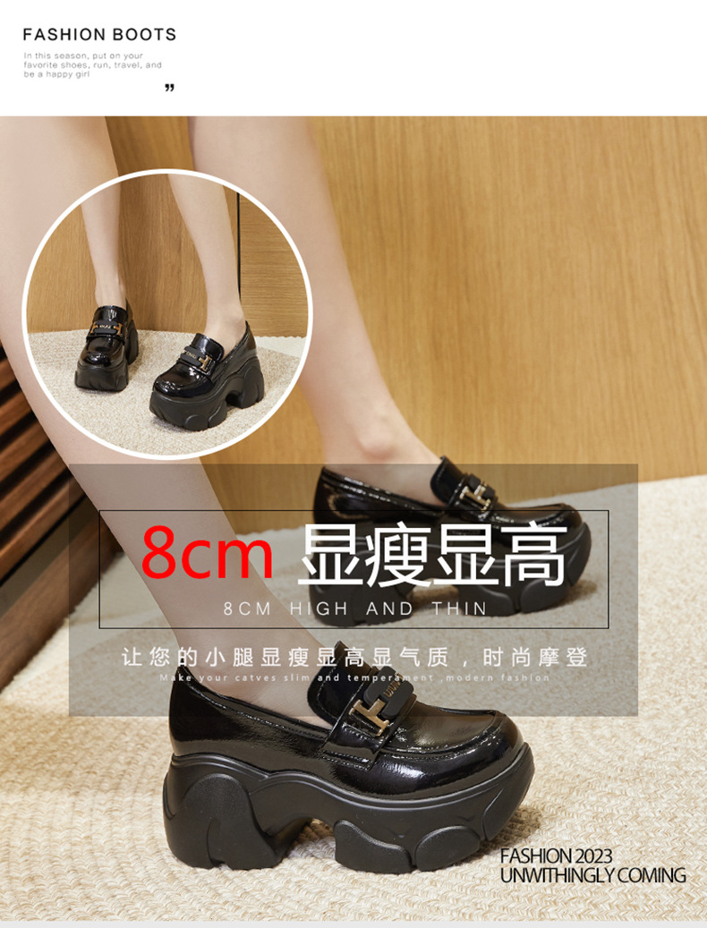 여성을 위한 영국 로퍼, 봄 2025 새로운 스타일의 블랙 두꺼운 밑창 작은 가죽 신발, 여성의 키를 높이는 다용도 슬립온 신발스토어 가기