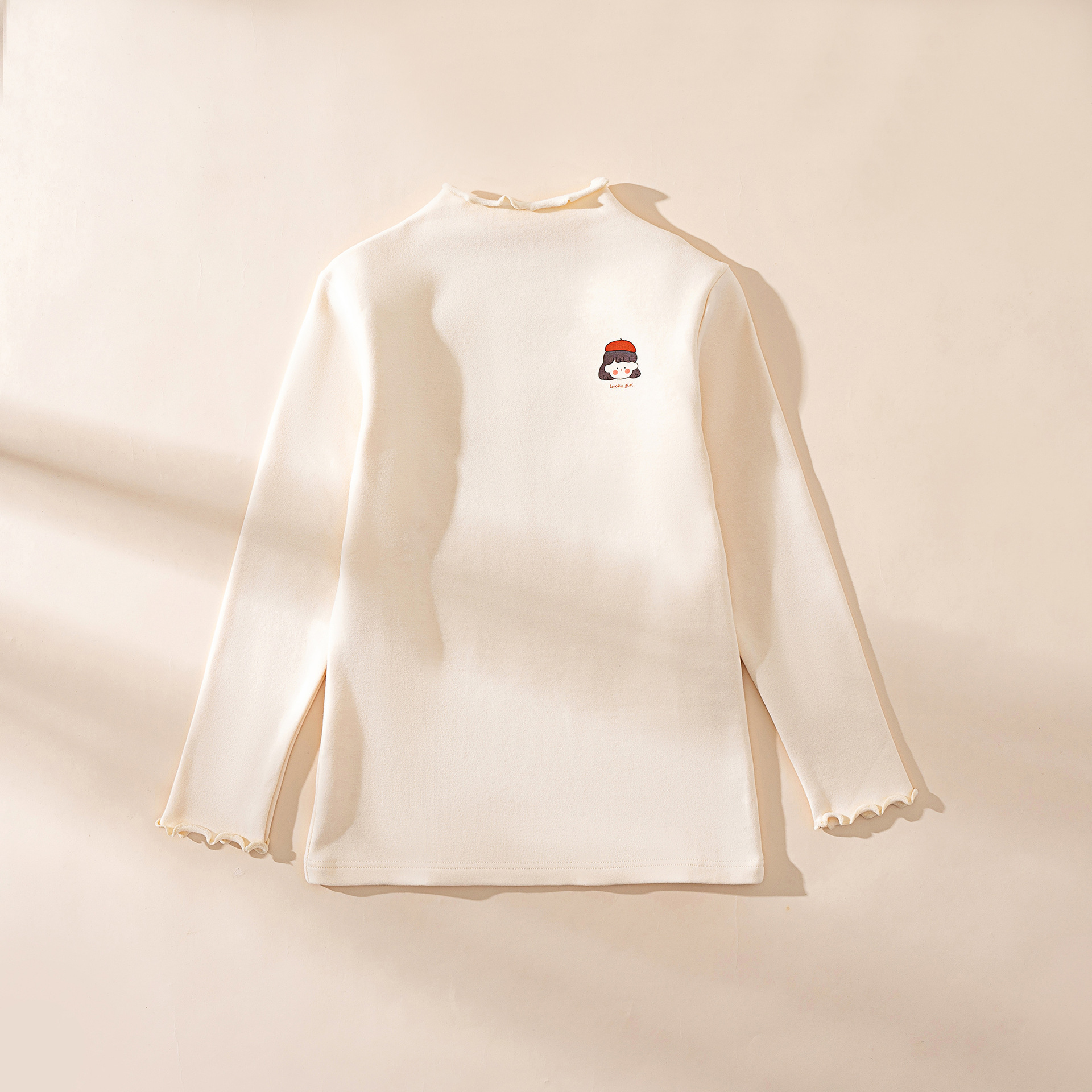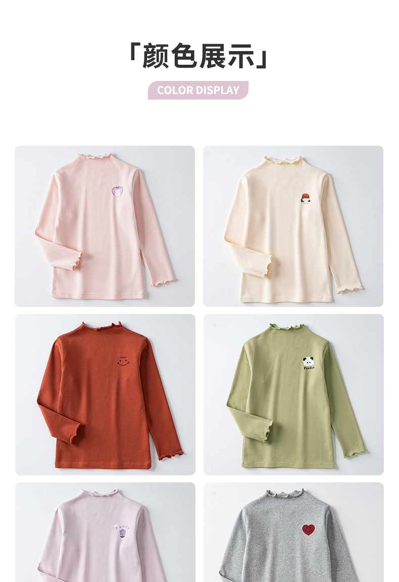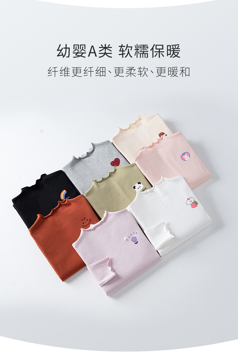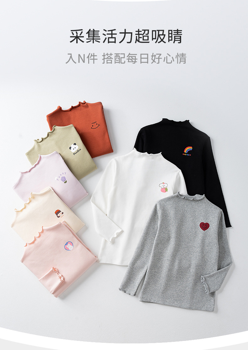 여아 베이스 셔츠 가을 따뜻한 면 하프 하이 칼라 탑 두꺼운 한국 스타일 레이스 어린이 긴팔 티셔츠스토어 가기