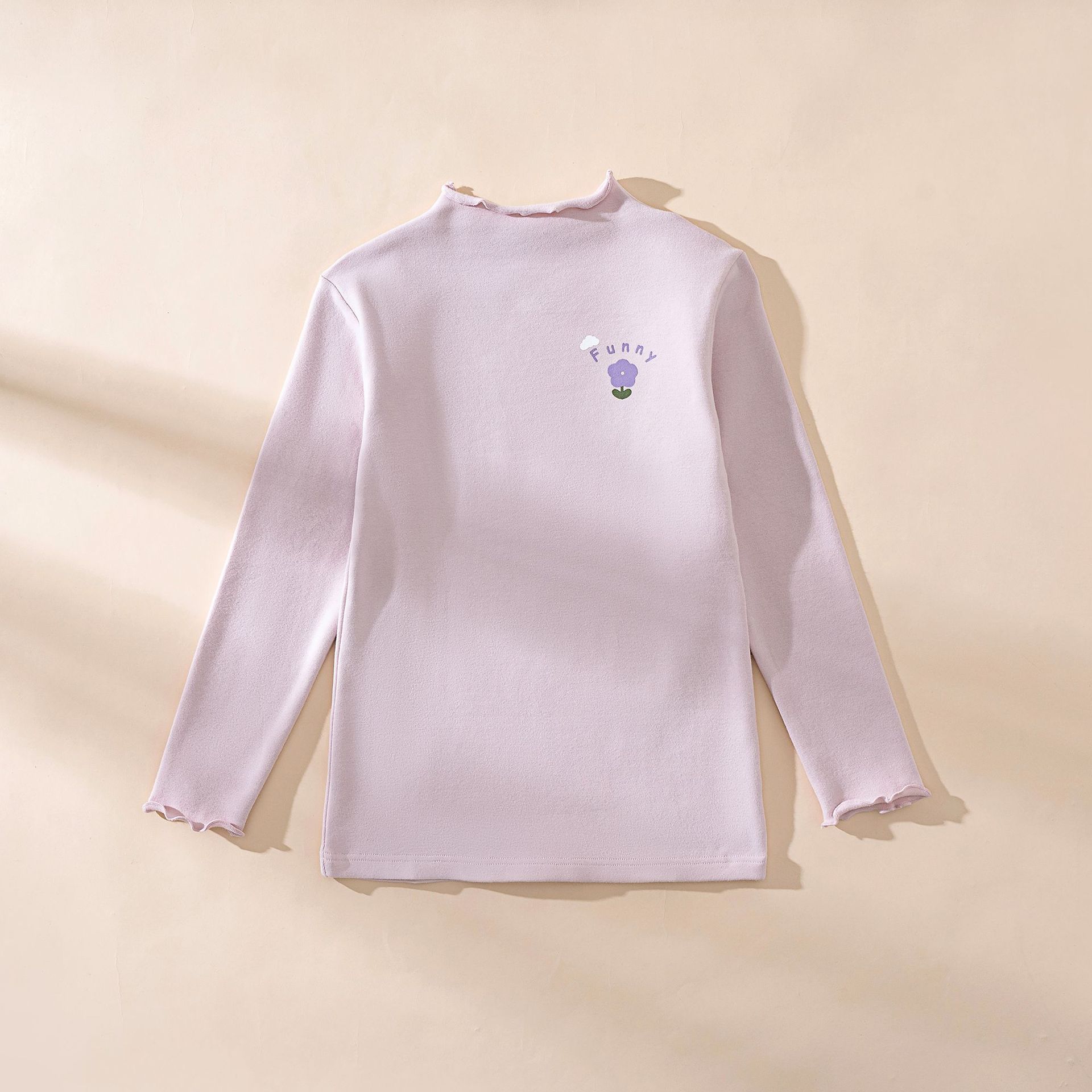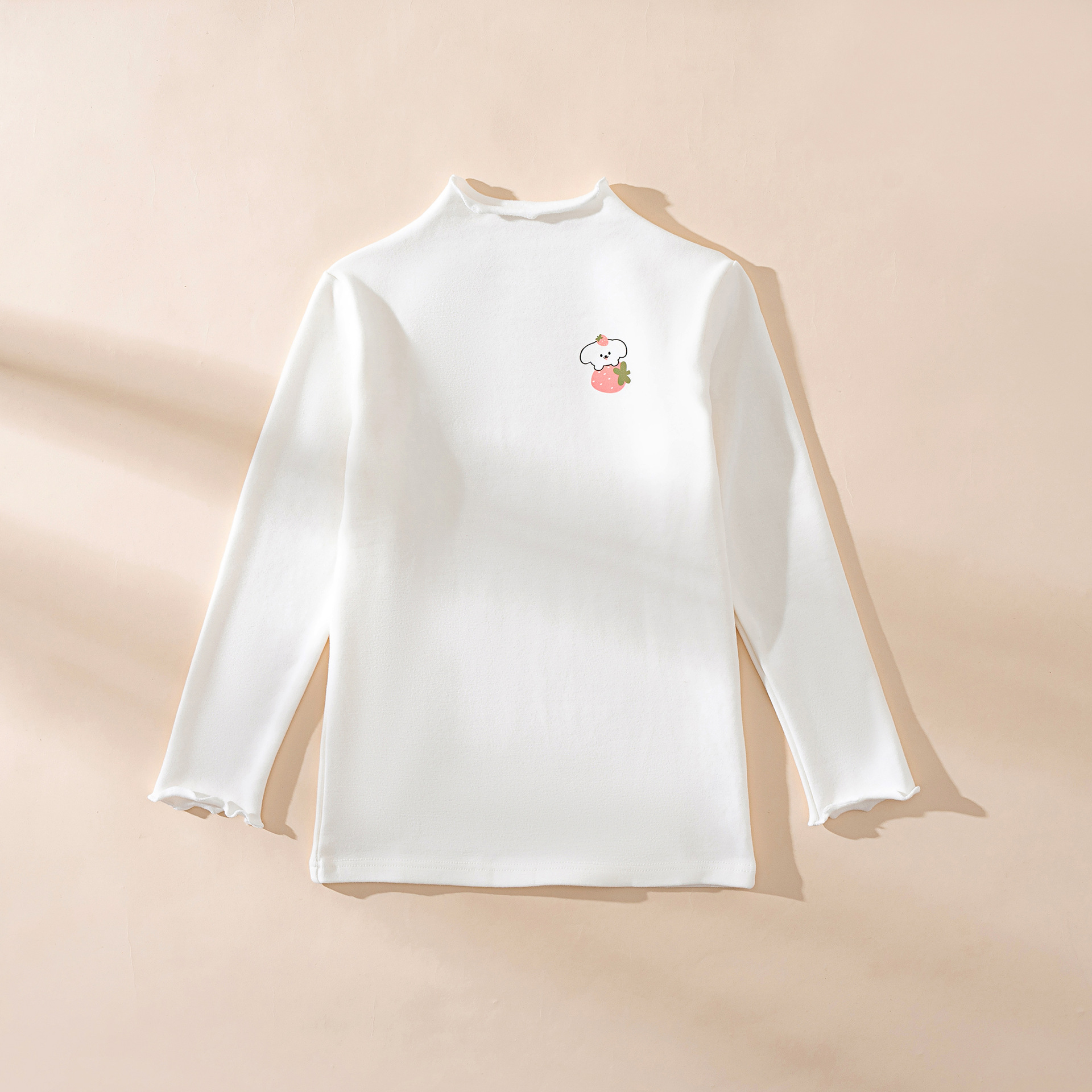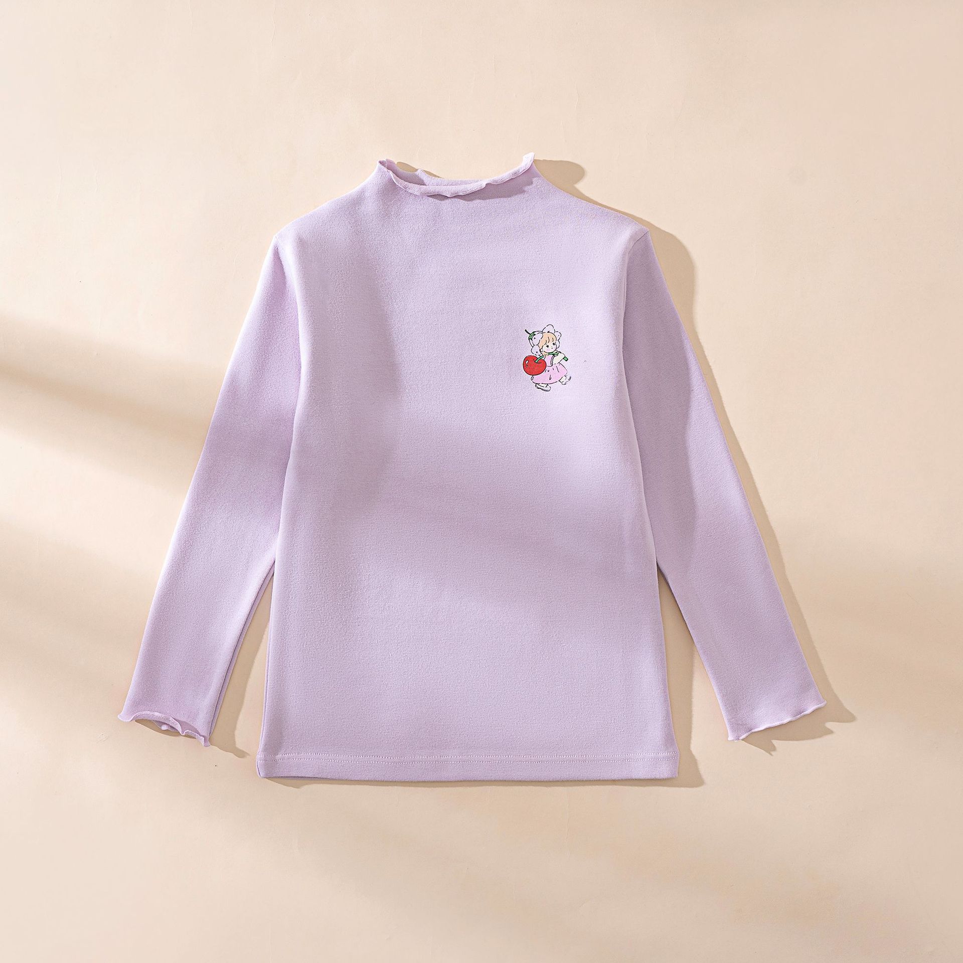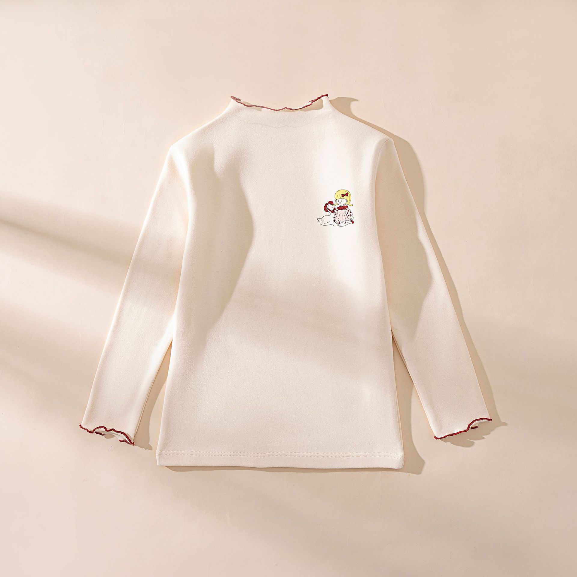 여아 베이스 셔츠 가을 따뜻한 면 하프 하이 칼라 탑 두꺼운 한국 스타일 레이스 어린이 긴팔 티셔츠스토어 가기