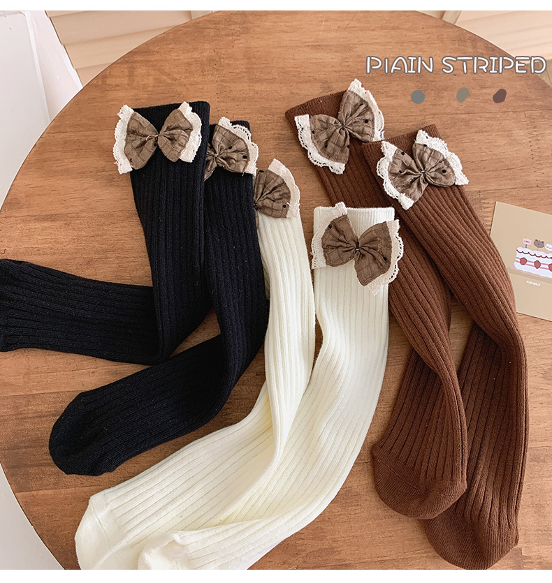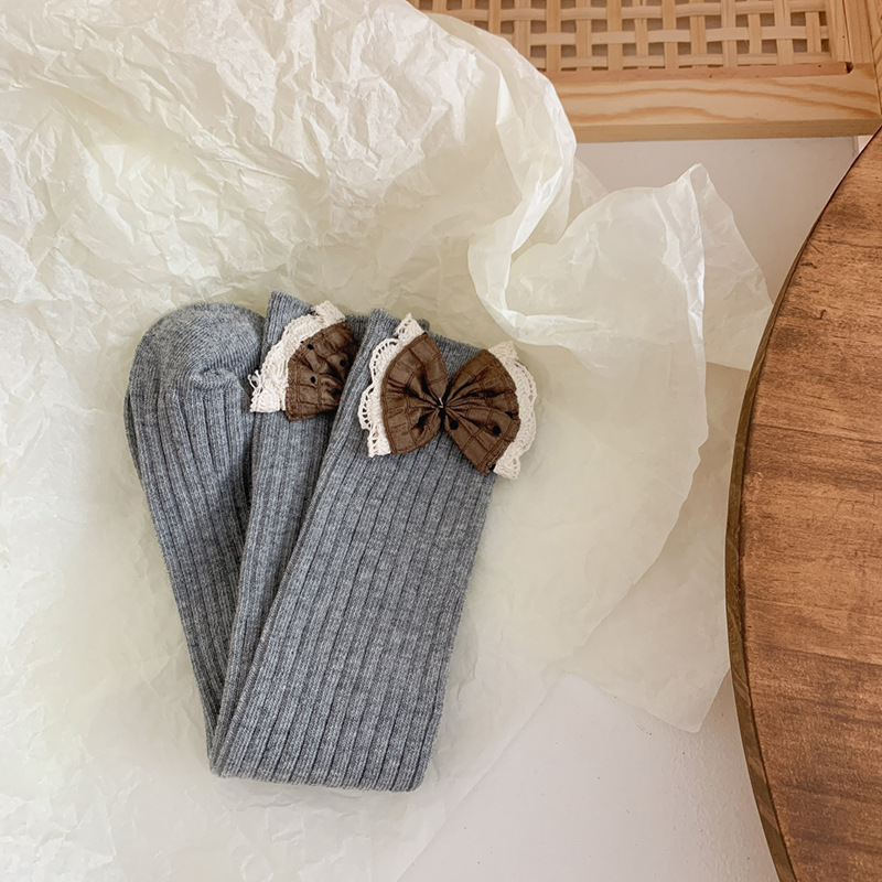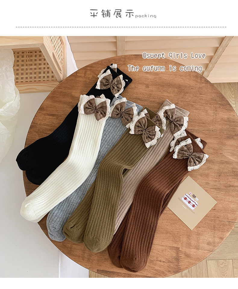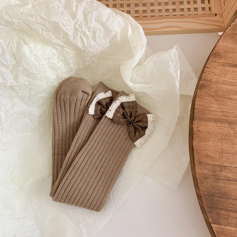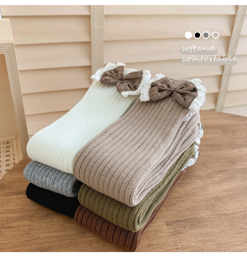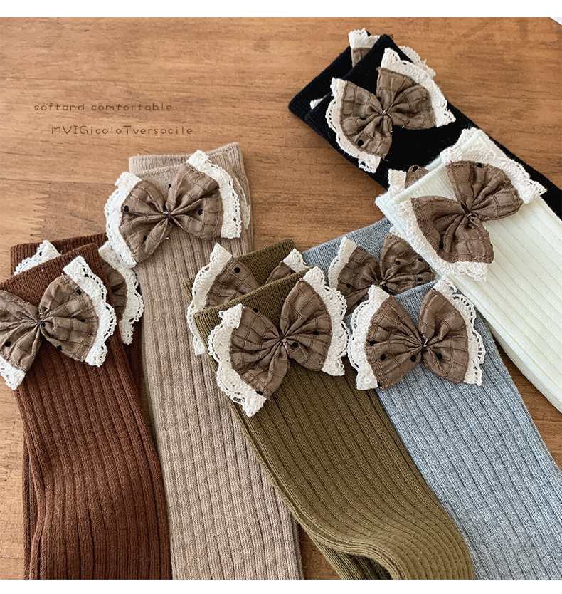 2024 년 어린이 양말 봄과 여름 클래스 얇은 소녀 송아지 양말 뼈없는 중간 길이의 양말 빗질면 니트 로리