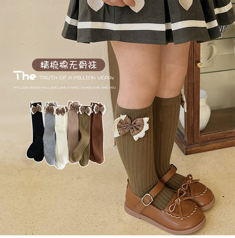 2024 년 어린이 양말 봄과 여름 클래스 얇은 소녀 송아지 양말 뼈없는 중간 길이의 양말 빗질면 니트 로리스토어 가기