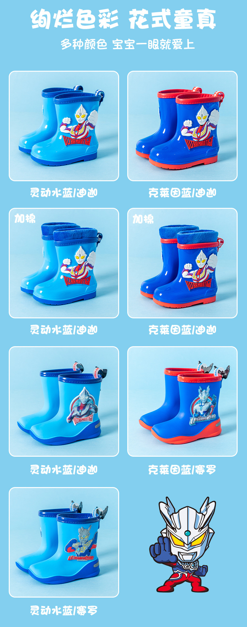 어린이 새로운 Dega Cero Altman 정품 만화 면 미끄럼 방지 장화 남아 중간 튜브 따뜻한 어린이 장화