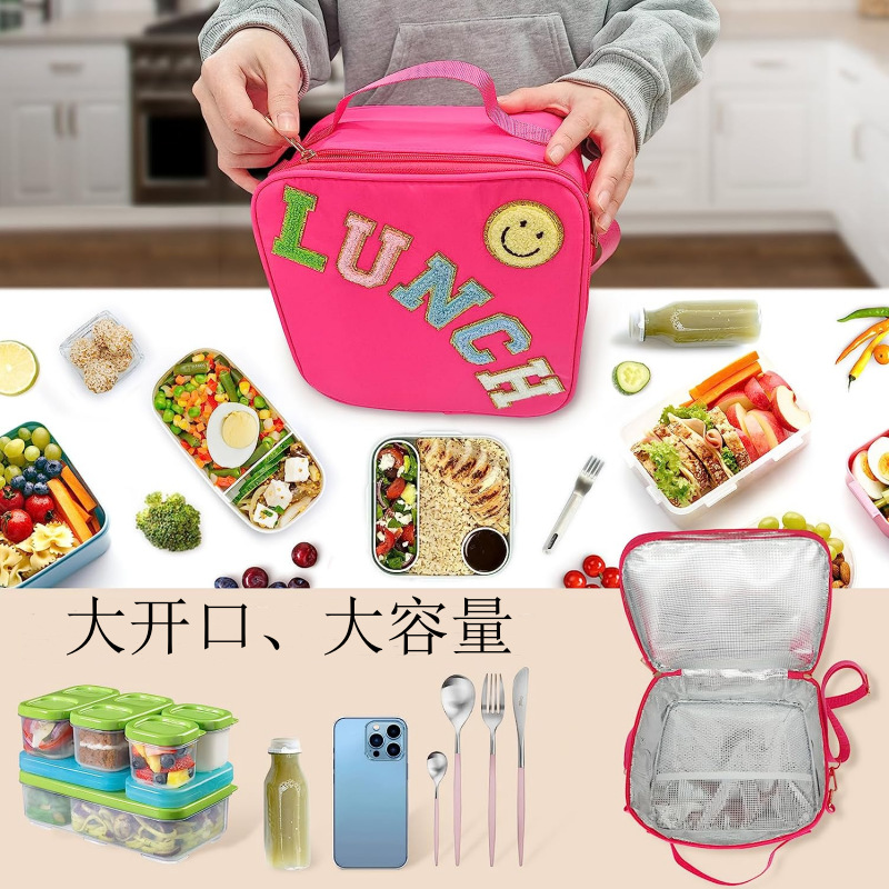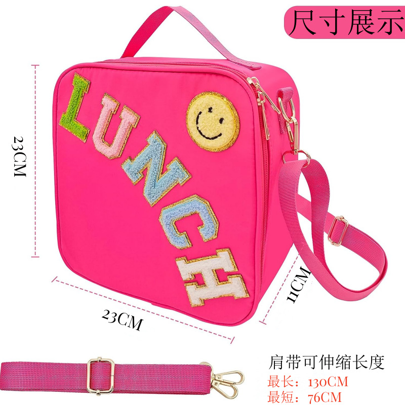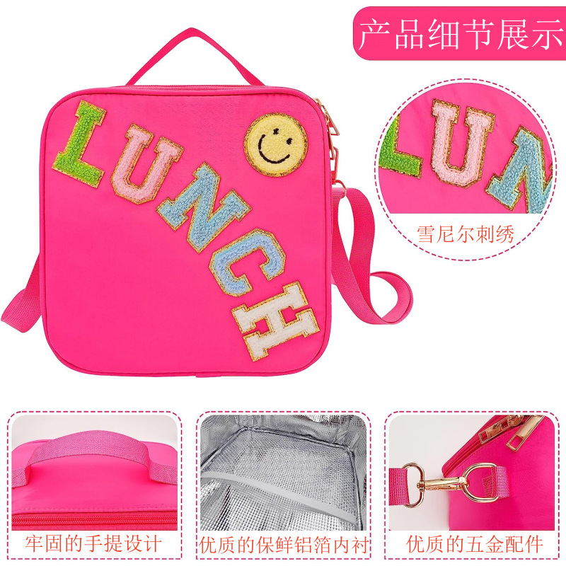 새로운 나일론 자수 편지 도시락 가방 다기능 대용량 신선 보관 아이스백 야외 캠핑 방수 도시락 가방