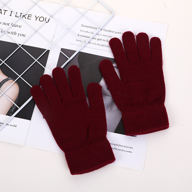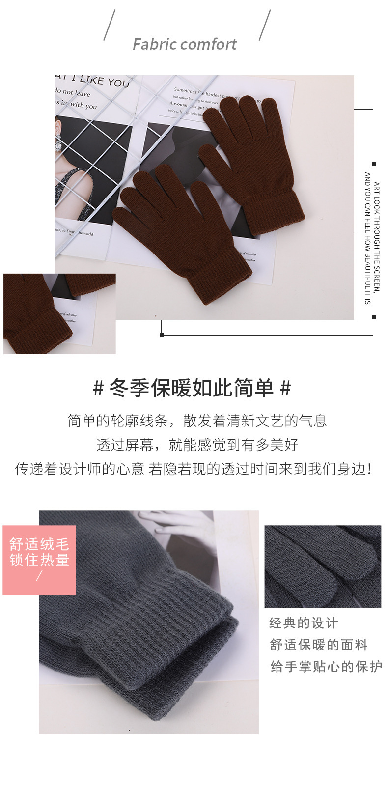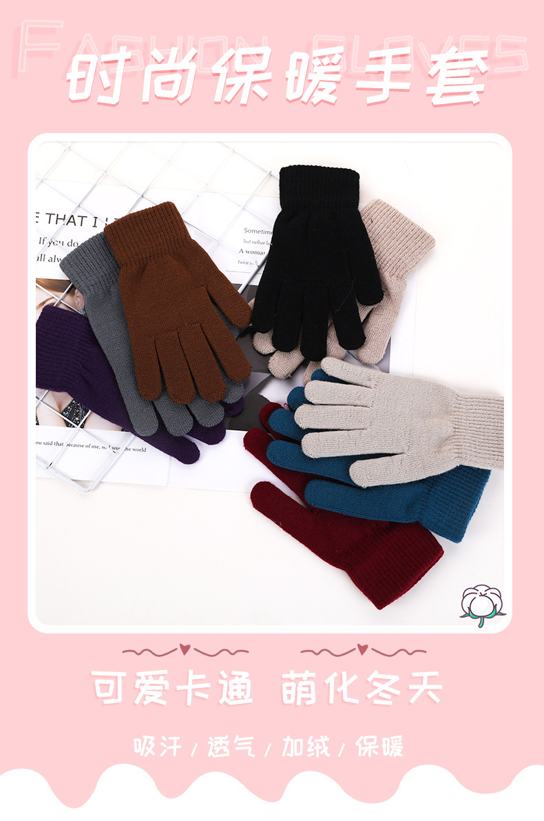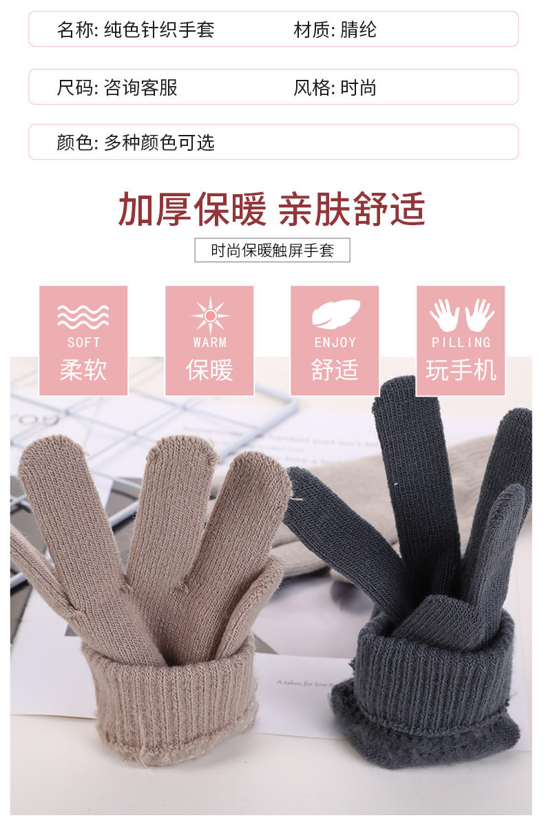 가을과 겨울 빈티지 사이클링 남성과 여성의 단색 방풍 따뜻한 방한 두꺼운 학생 패션 다섯 손가락 스트레치 니트 장갑스토어 가기
