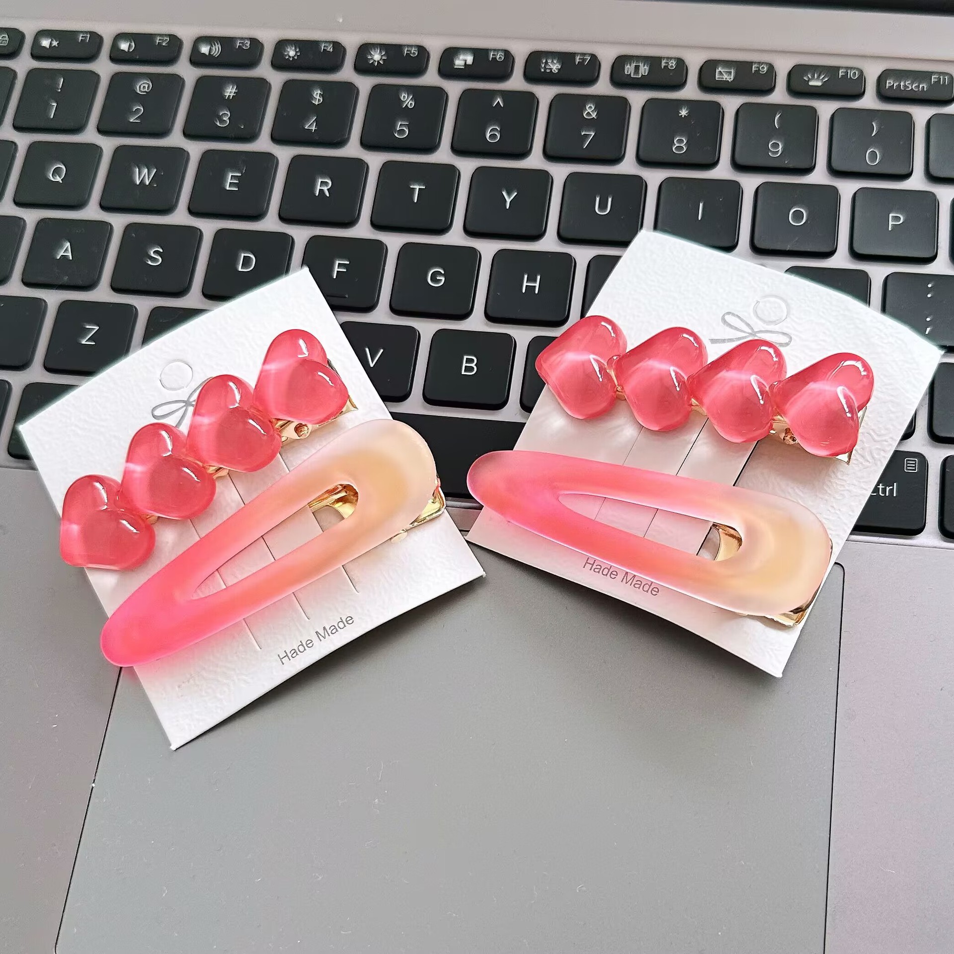 달콤한 핑크 젤리 사랑스러운 덕빌 클립 머리핀 세트 귀여운 소녀 스타일 사이드 클립 머리 장식 헤어 액세서리 헤어 클립스토어 가기