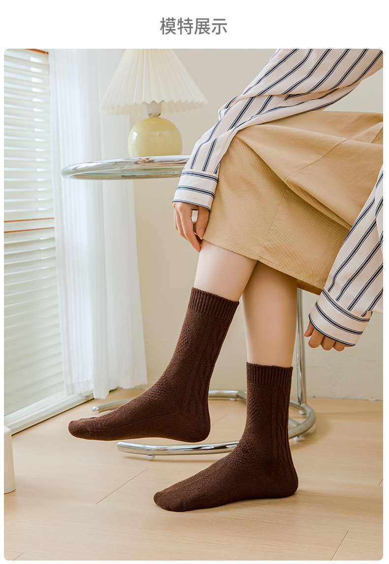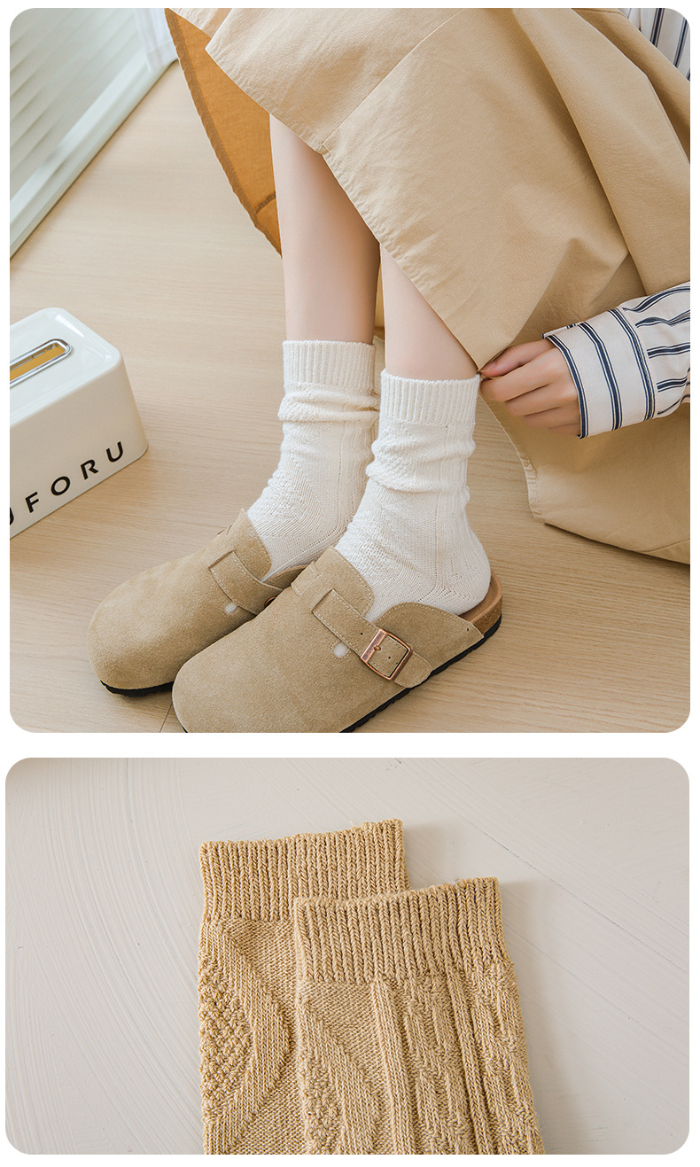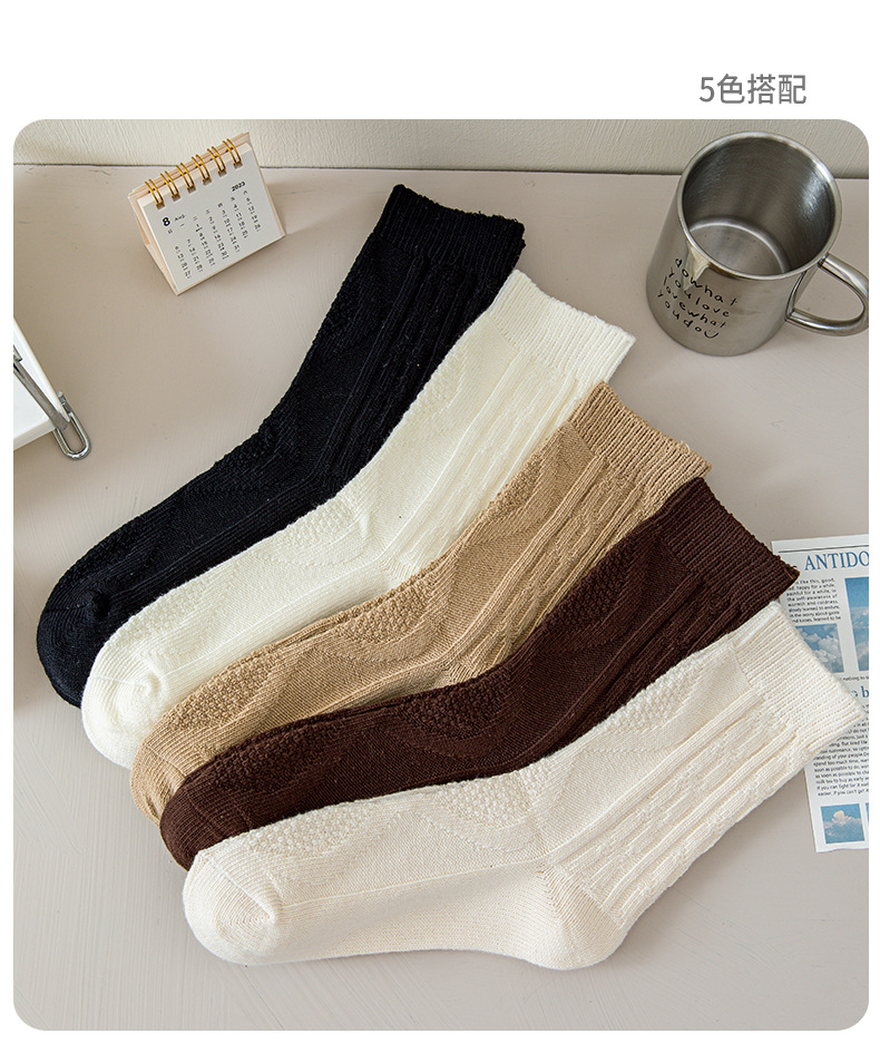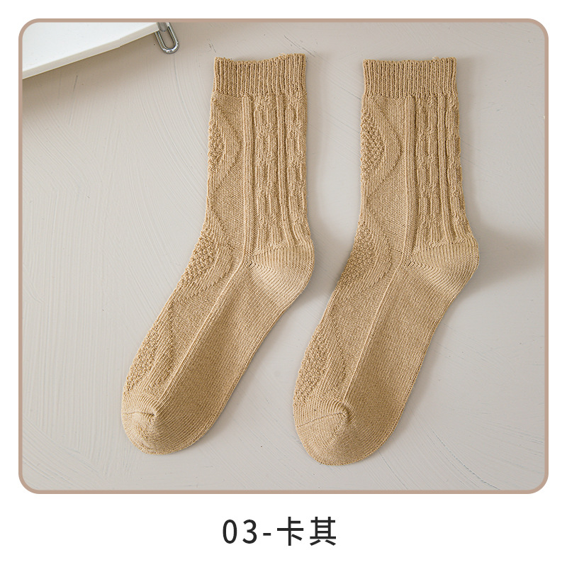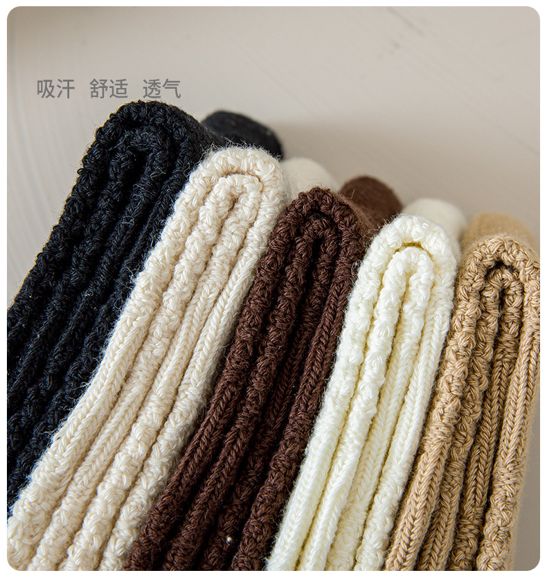 가을과 겨울 양말 어린이 스택 양말 미드 튜브 면 양말 두꺼운 라인 양각 일본 단색 양말 여성용 긴 튜브 Zhuji 양말