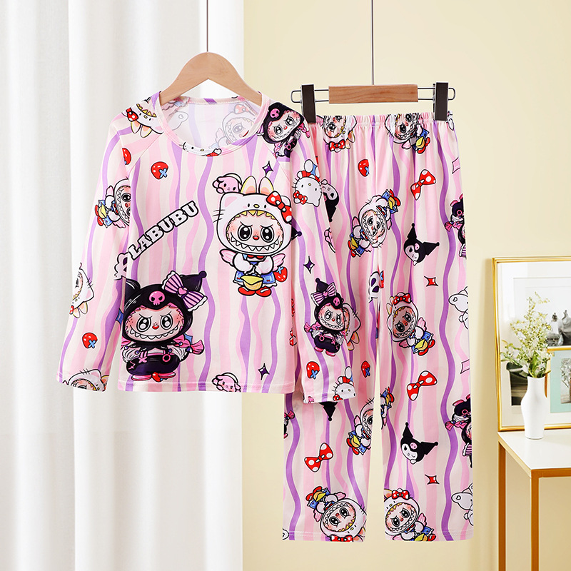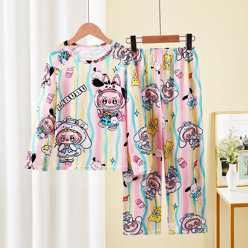 2025년 신상 아동 잠옷 봄 가을 긴팔 얇은 스타일 남아 여아 중대형 아동 여아 여름 홈웨어