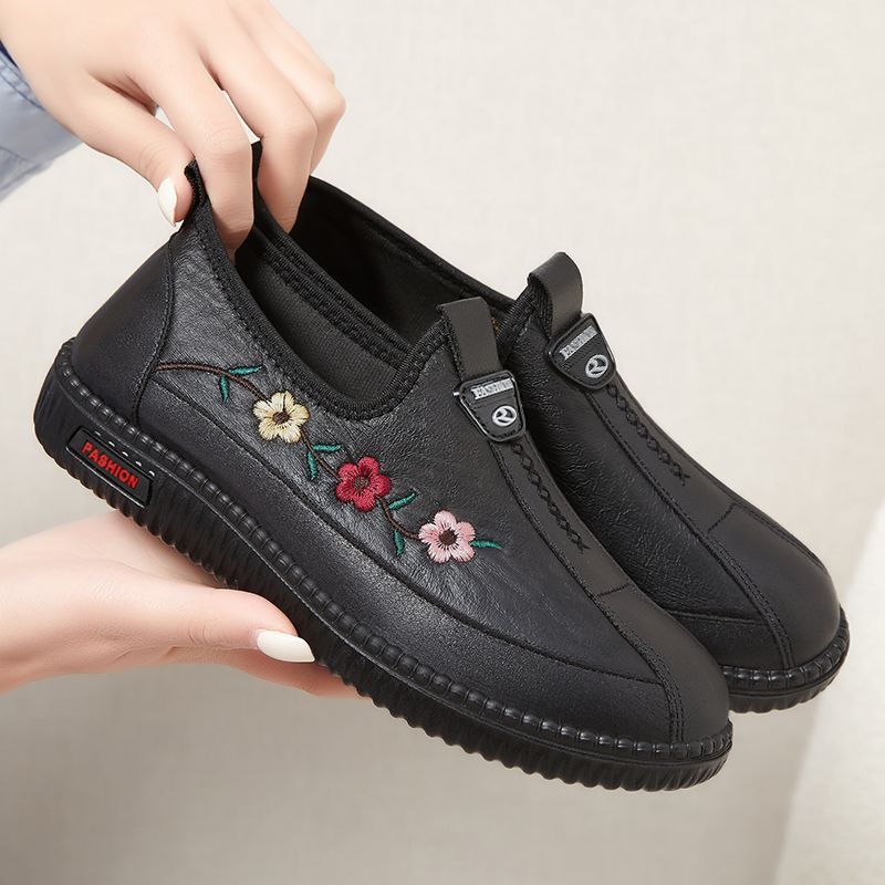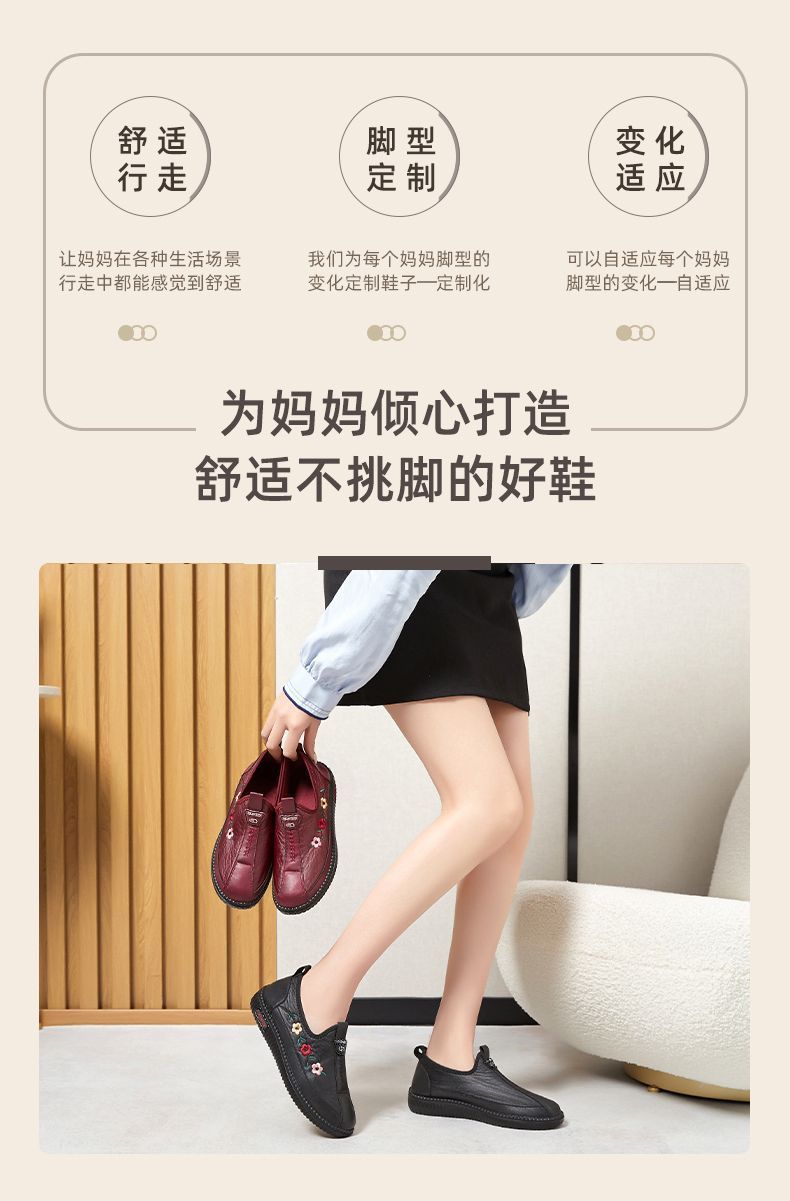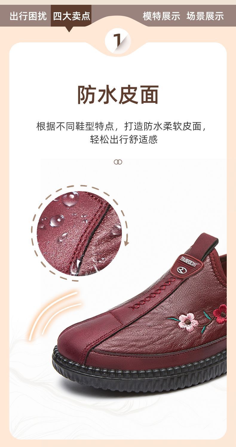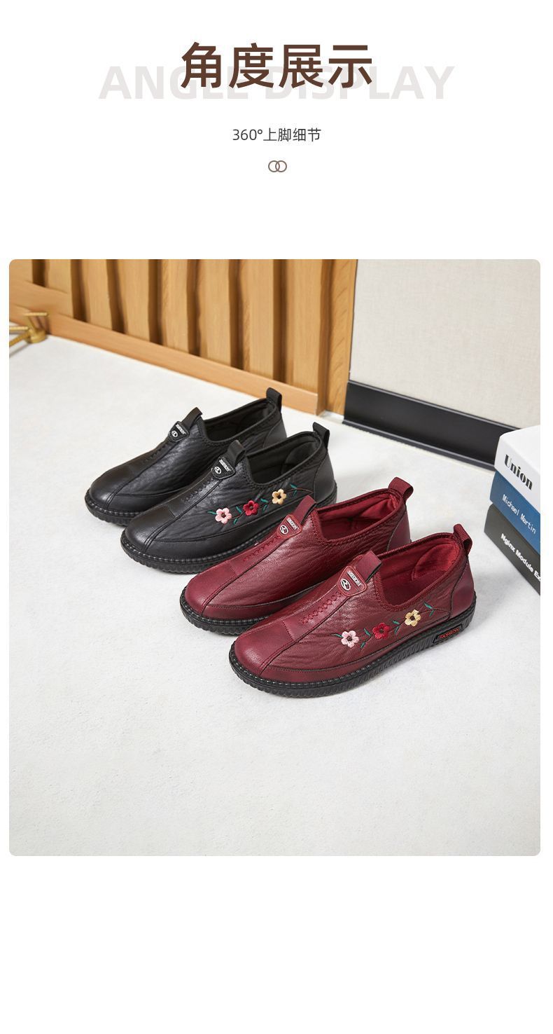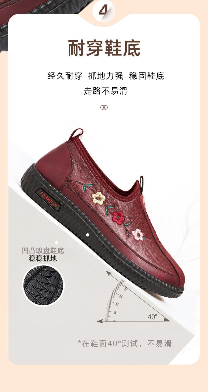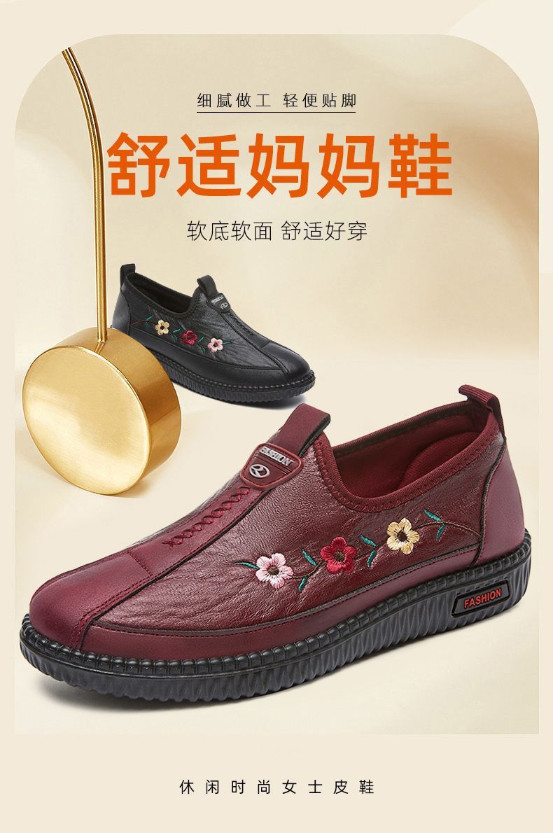 2024년 봄 노인용 부드러운 밑창 편안하고 가벼운 엄마 신발 부드러운 가죽 중년 및 노인 여성 가죽 신발 할머니 신발스토어 가기