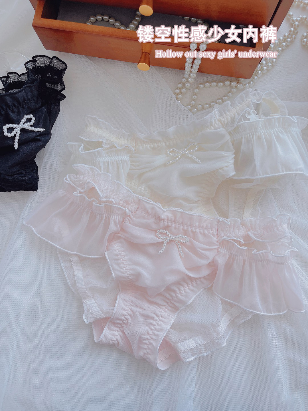숙녀 속옷 도매 단색 메쉬 빛 섹시한 속이 빈 내부 낮은 허리 소녀 귀여운 활 브리프스토어 가기