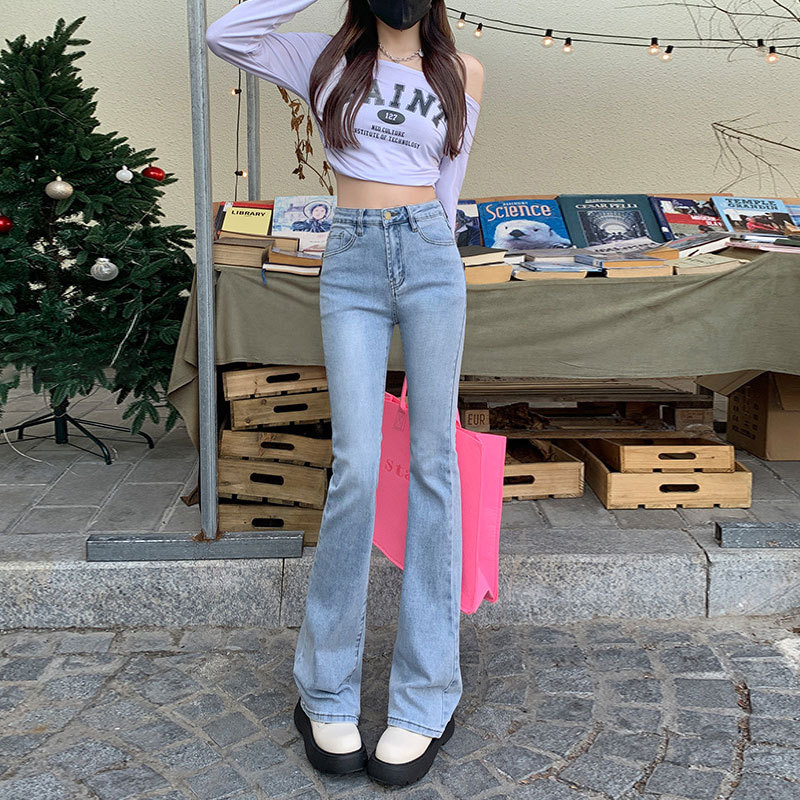 블랙 패션 스트레치 슬림핏 마이크로 지연 청바지 여성용 봄과 가을 하이 웨이스트 와이드 팬츠 트럼펫 말굽 바지스토어 가기