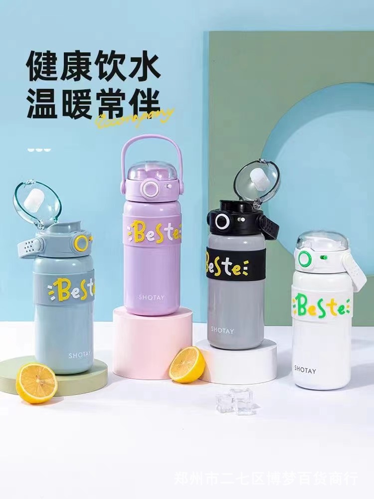 Shangtai 316L 스테인레스 스틸 진공 머그잔 귀여운 야외 컵 바운스 뚜껑 캐주얼 컵 학생 컵 도매