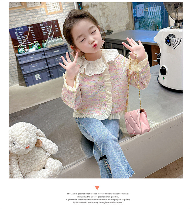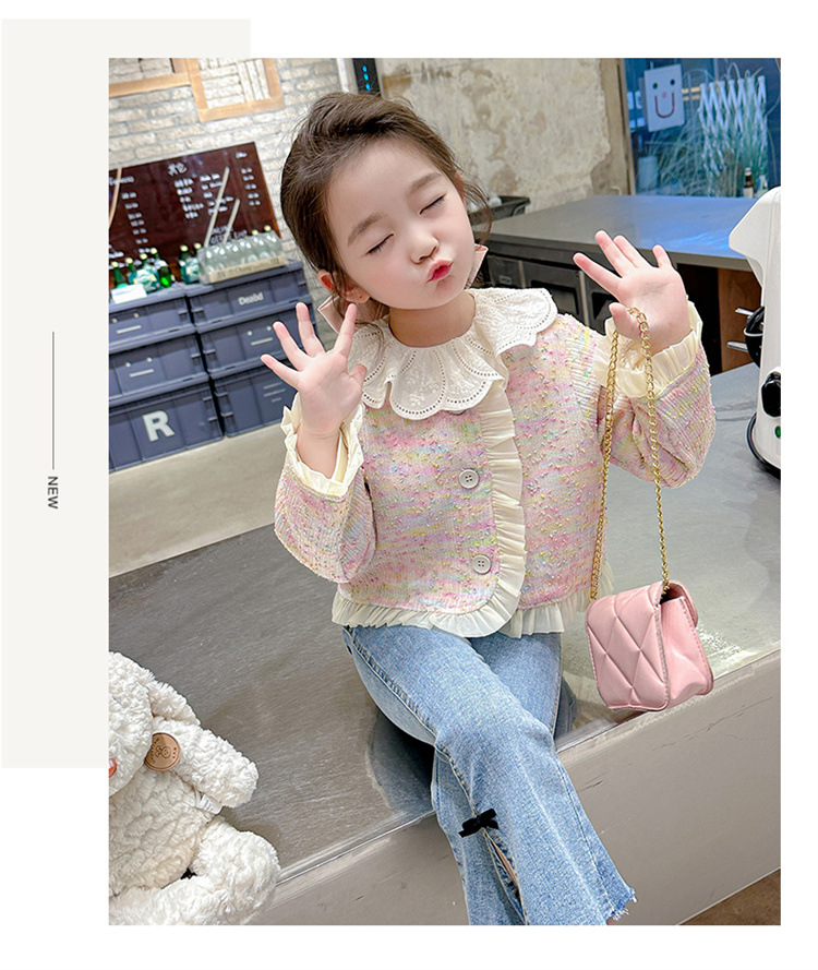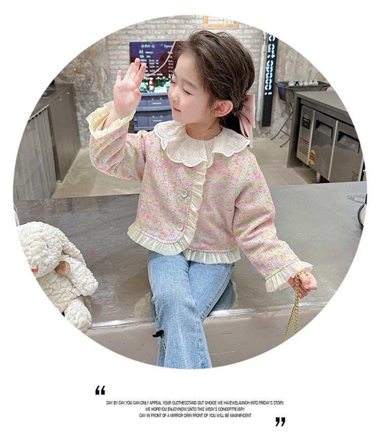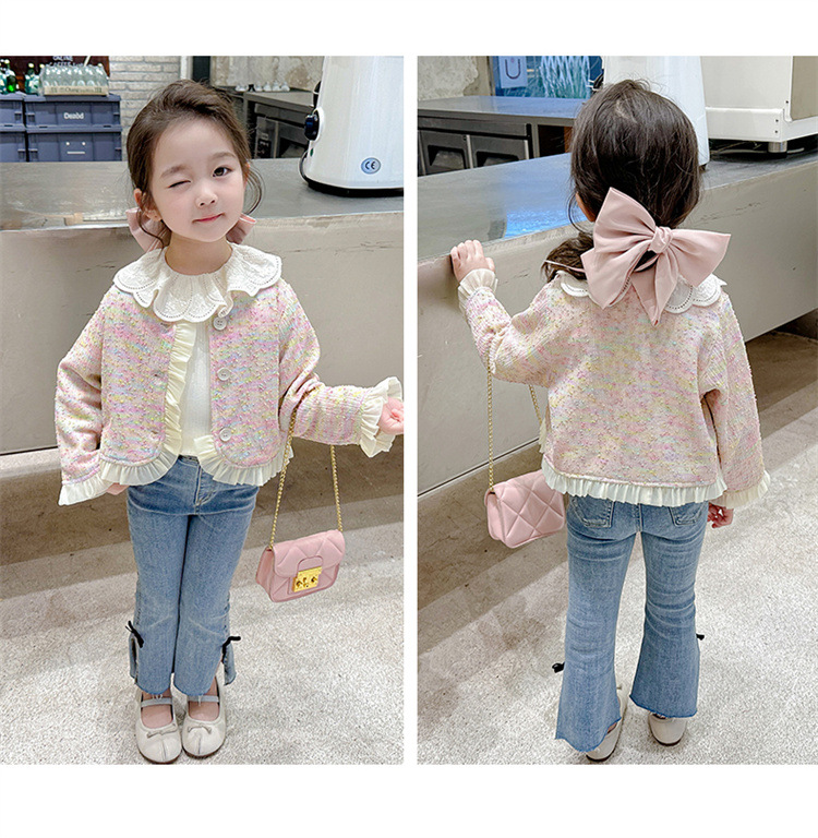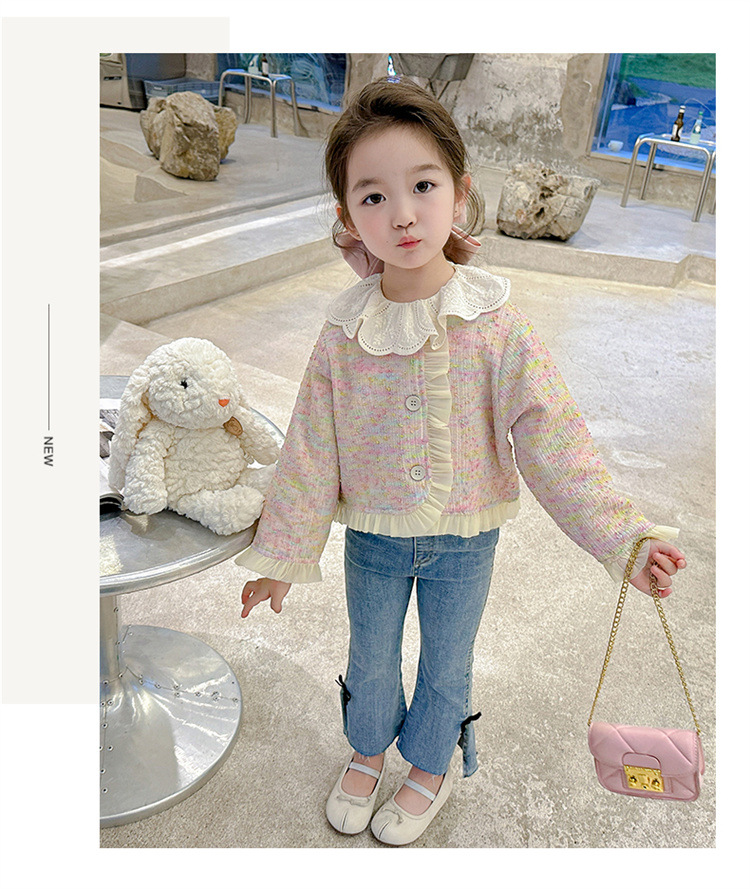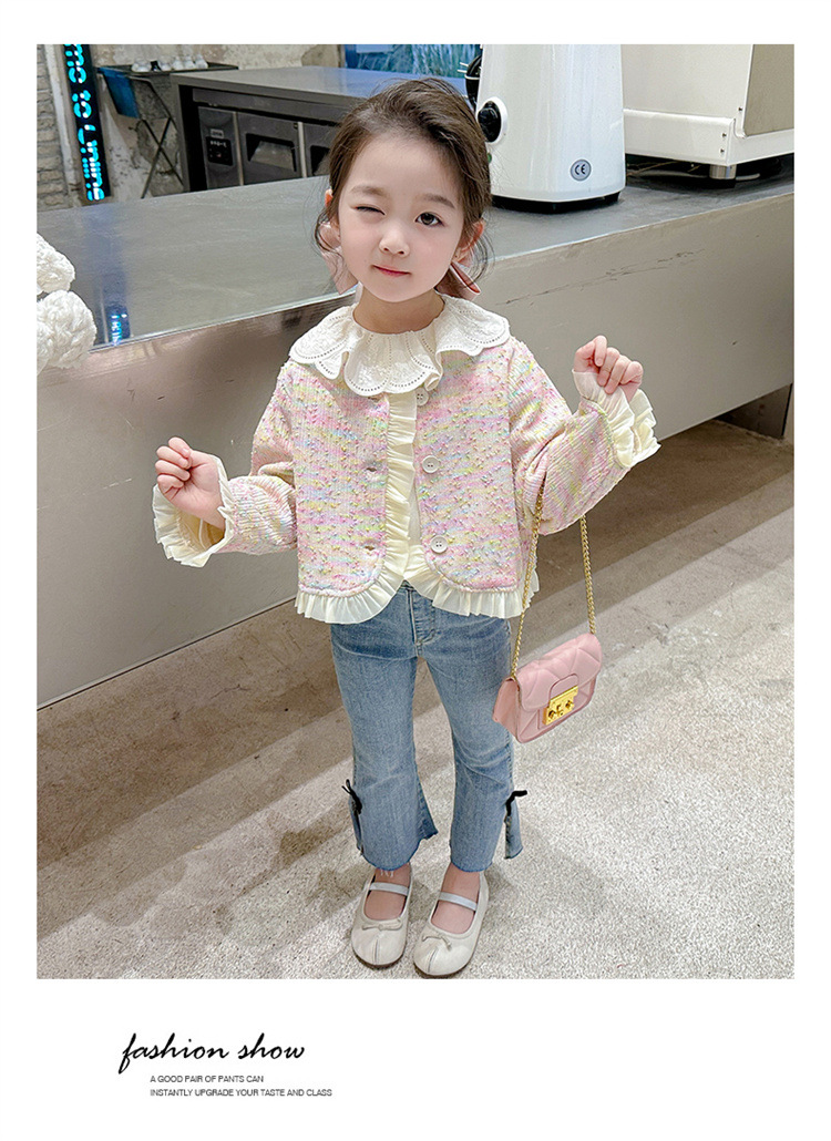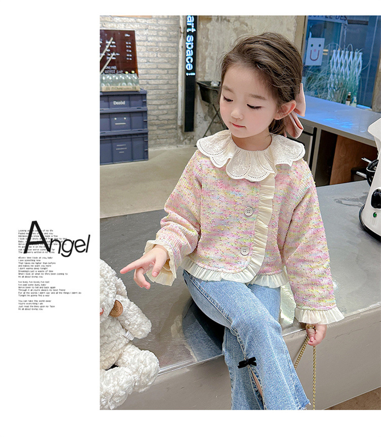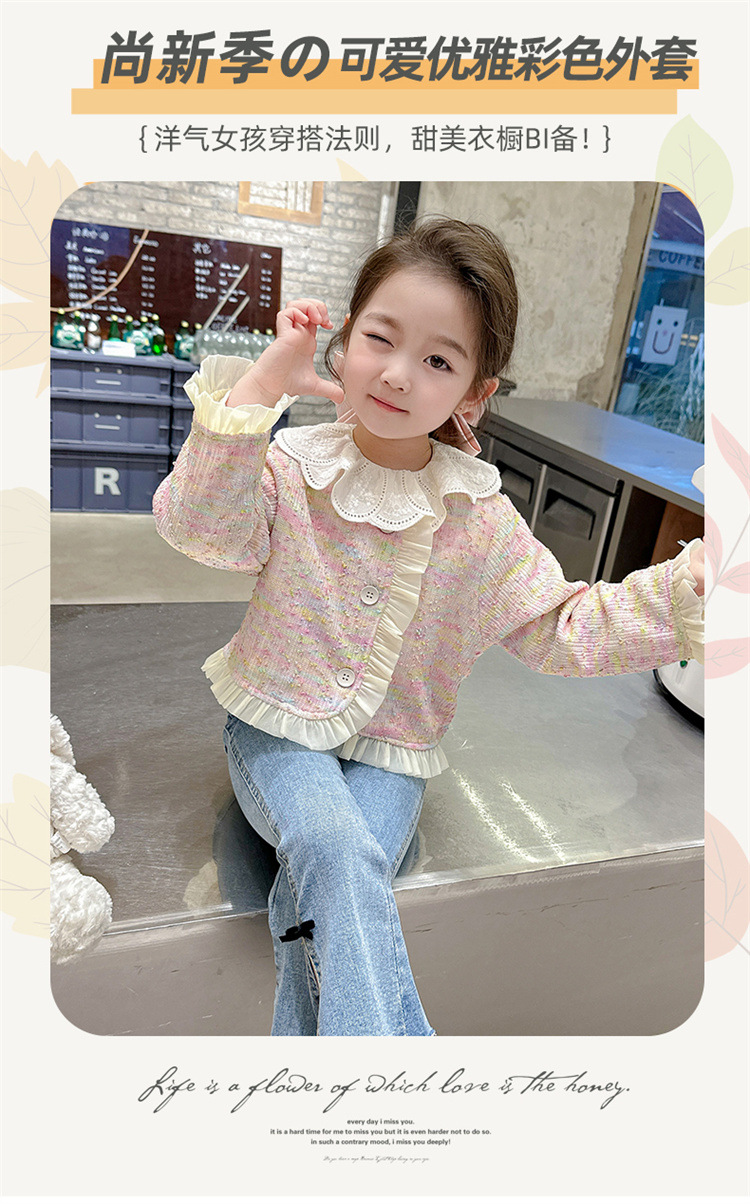 여아 다채로운 코트 봄과 가을 2023 새로운 서양 스타일 유행 어린이 인터넷 축하 탑 유행 아기 여아 옷스토어 가기