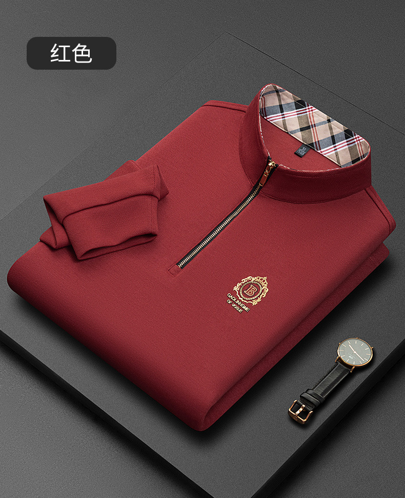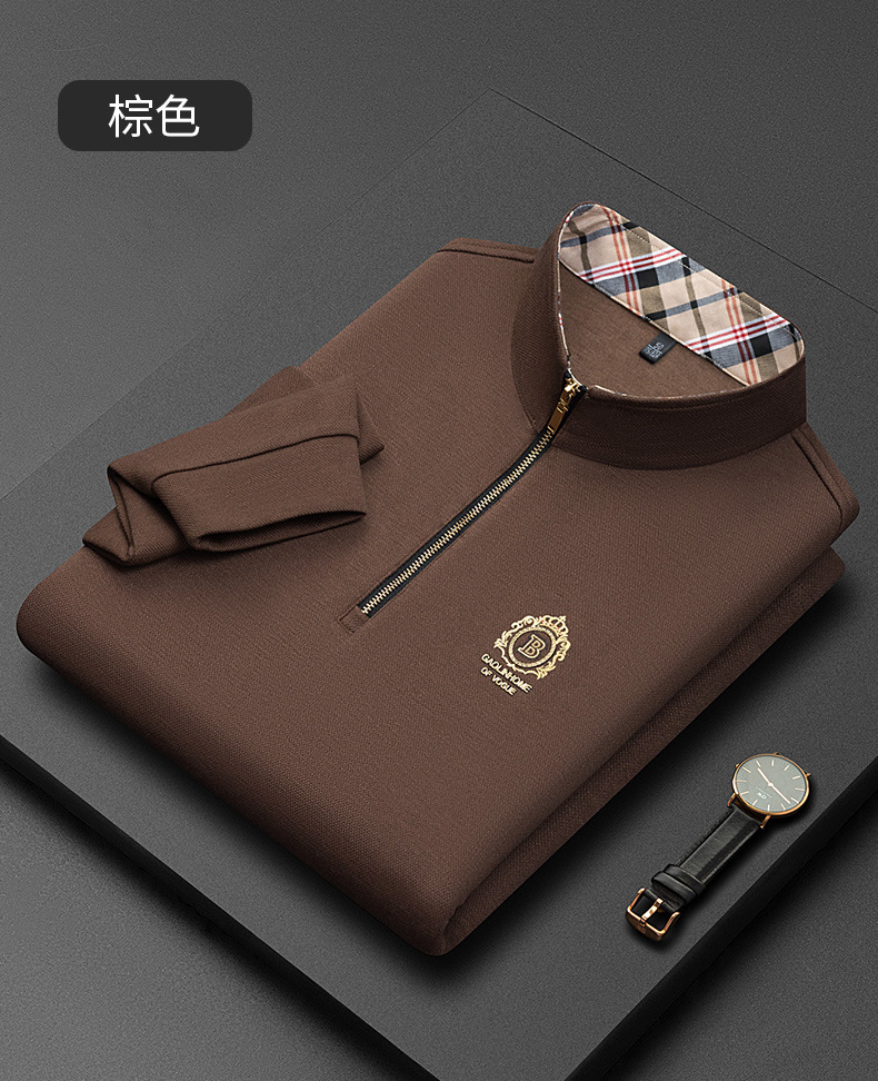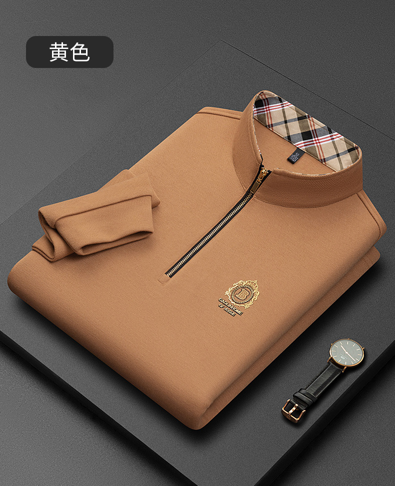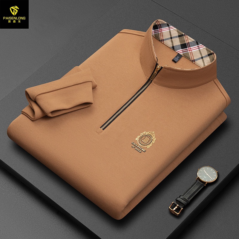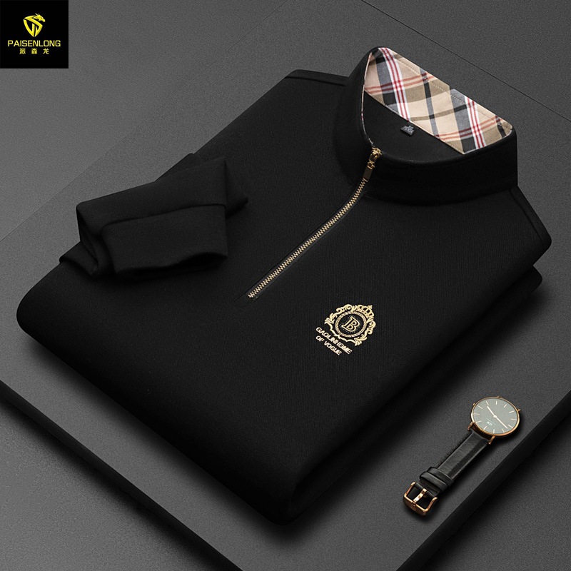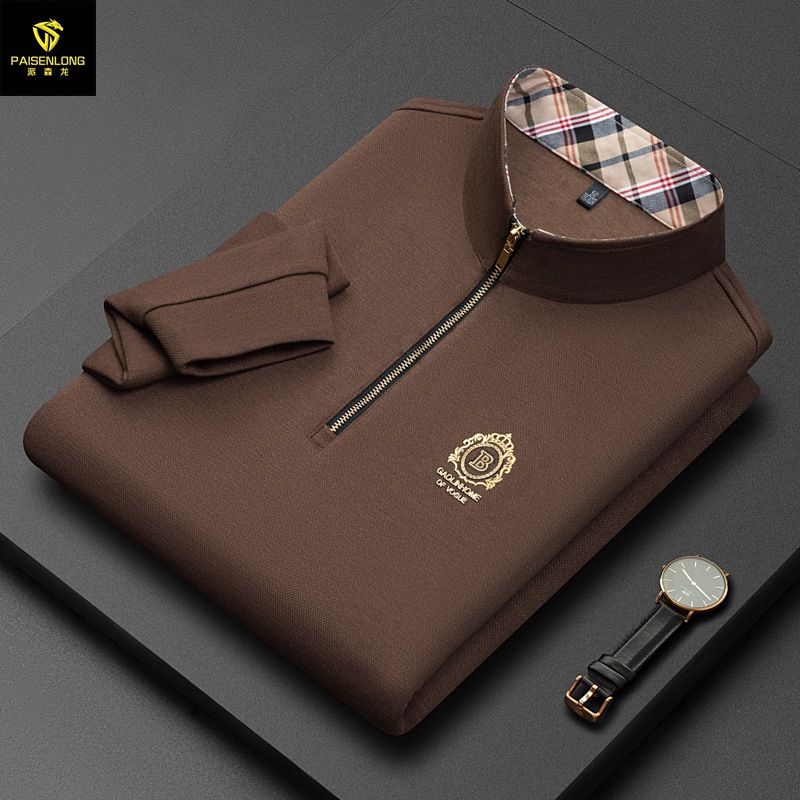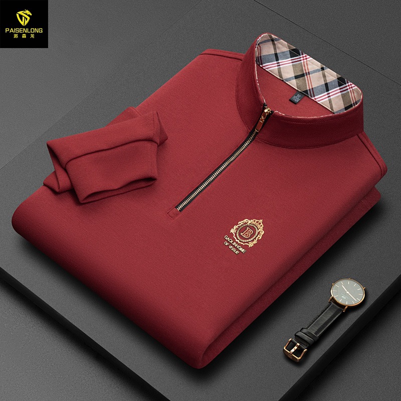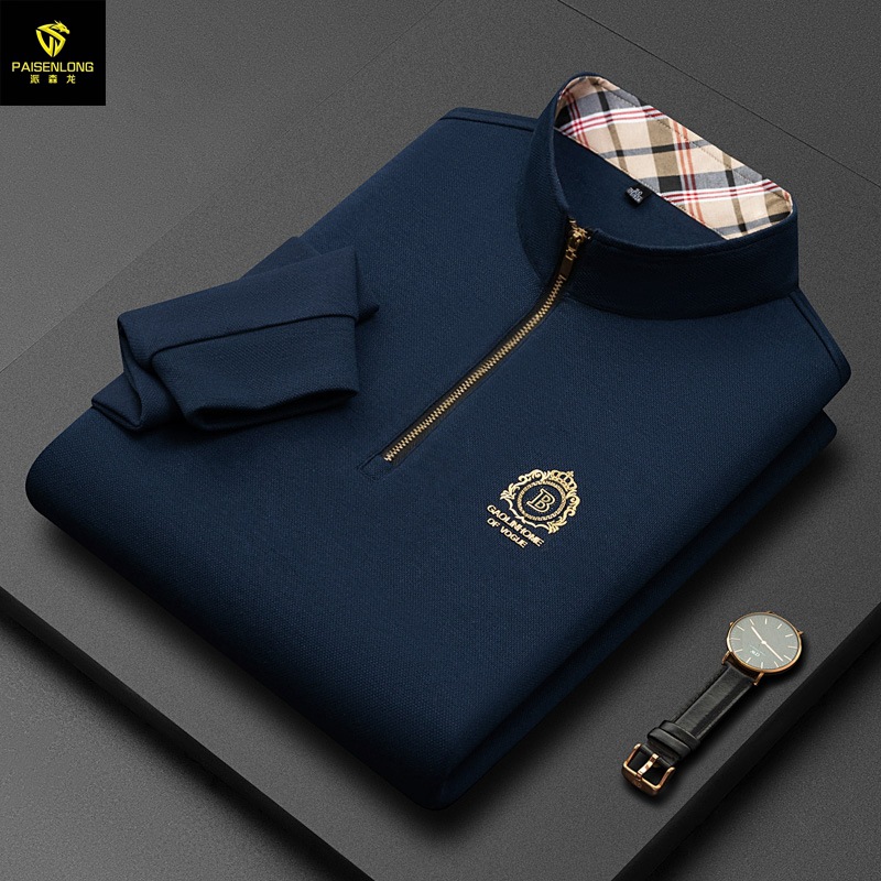 Pesson Dragon 2023 하이 엔드 가을과 겨울 두꺼운 따뜻한 남성용 폴로 셔츠 중년 지퍼 칼라 긴팔 남성용 티셔츠