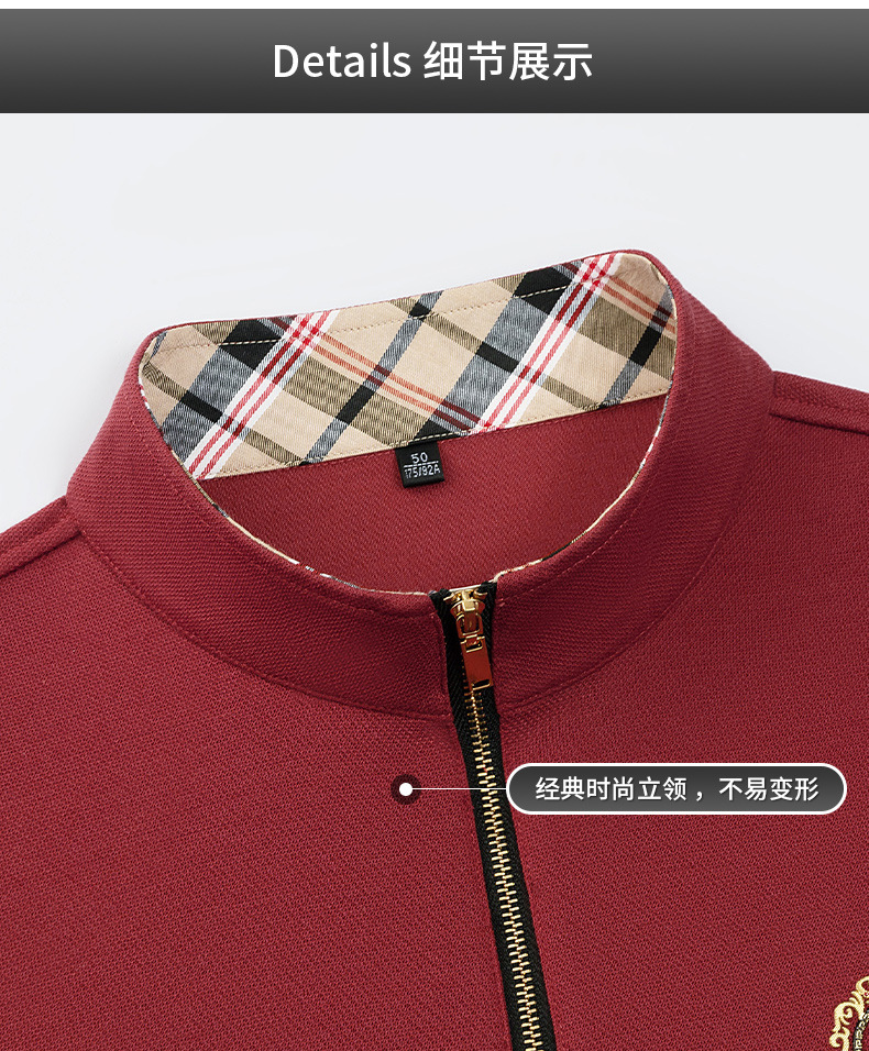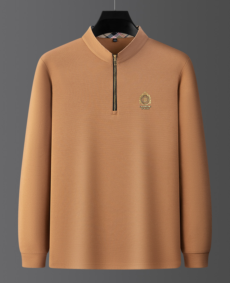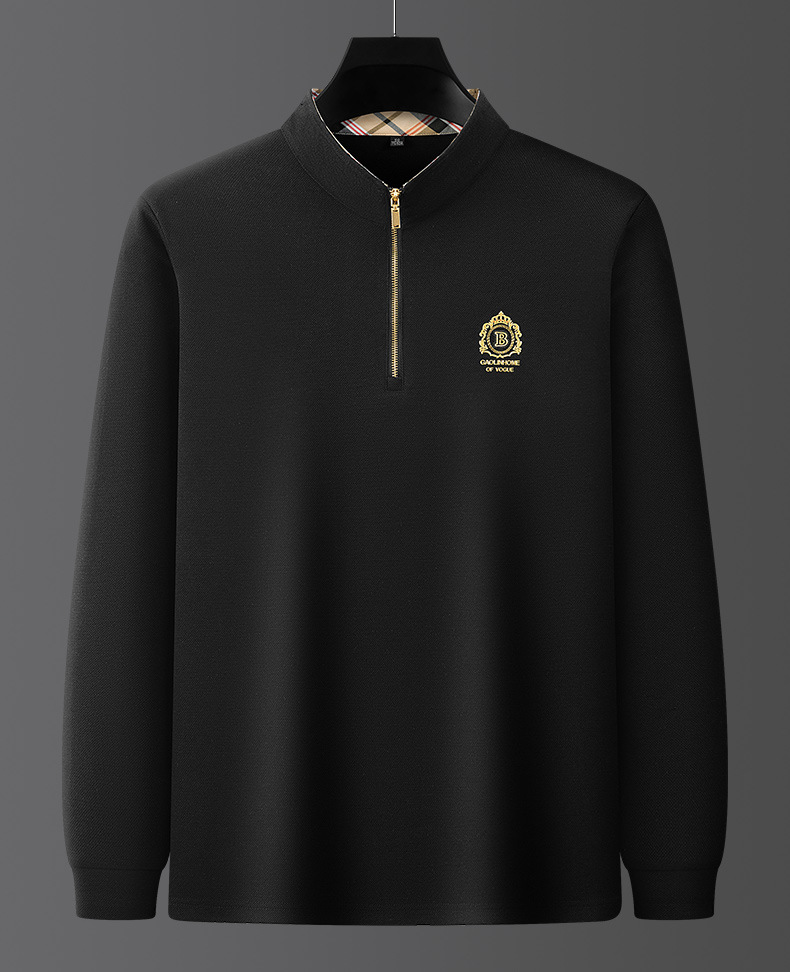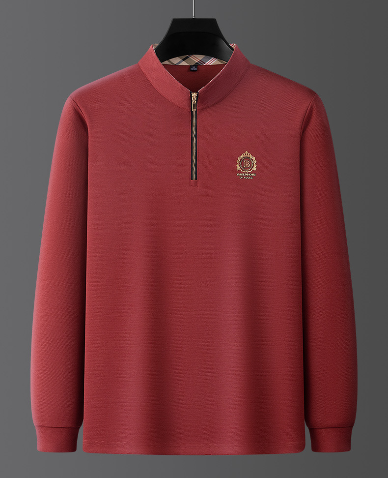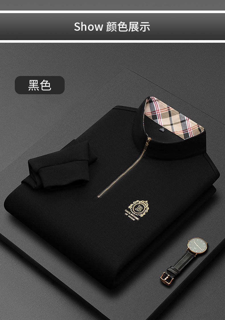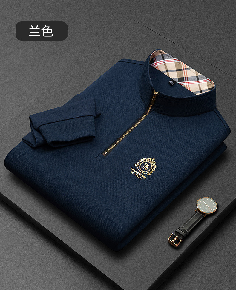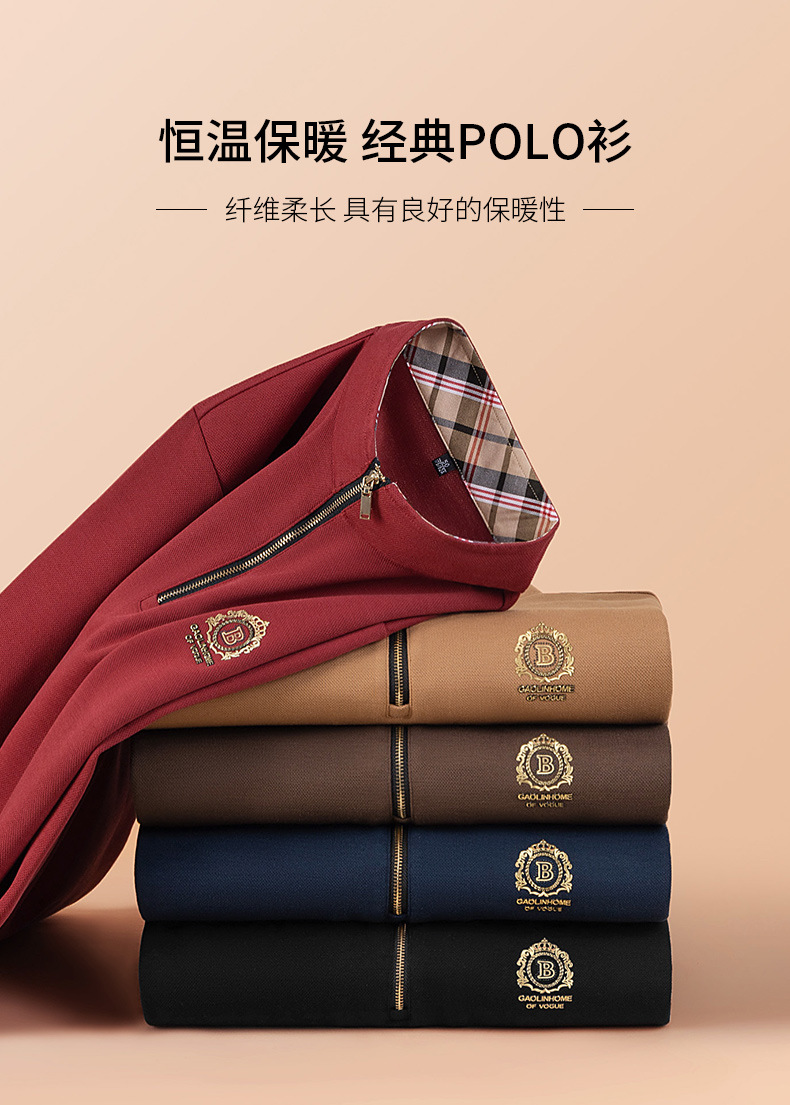 Pesson Dragon 2023 하이 엔드 가을과 겨울 두꺼운 따뜻한 남성용 폴로 셔츠 중년 지퍼 칼라 긴팔 남성용 티셔츠