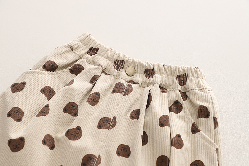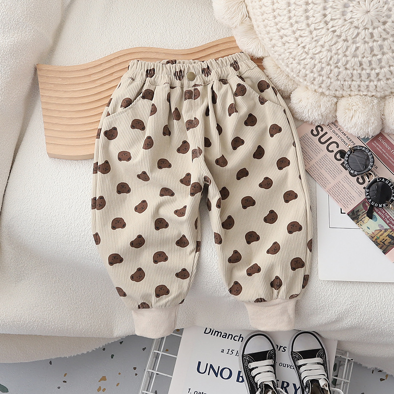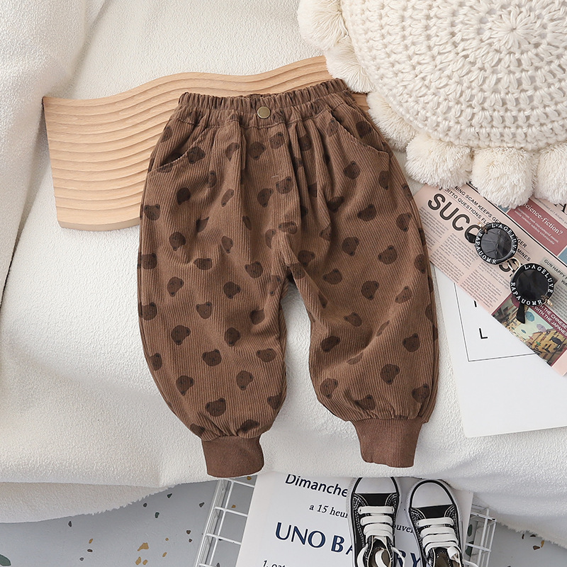 한 팬 어린이 코듀로이 콩 바지 봄 가을 싱글 레이어 아기 바지 느슨한 면 캐주얼 웨스턴 스타일스토어 가기