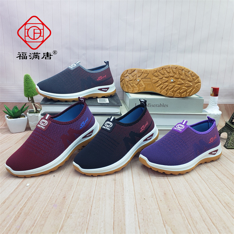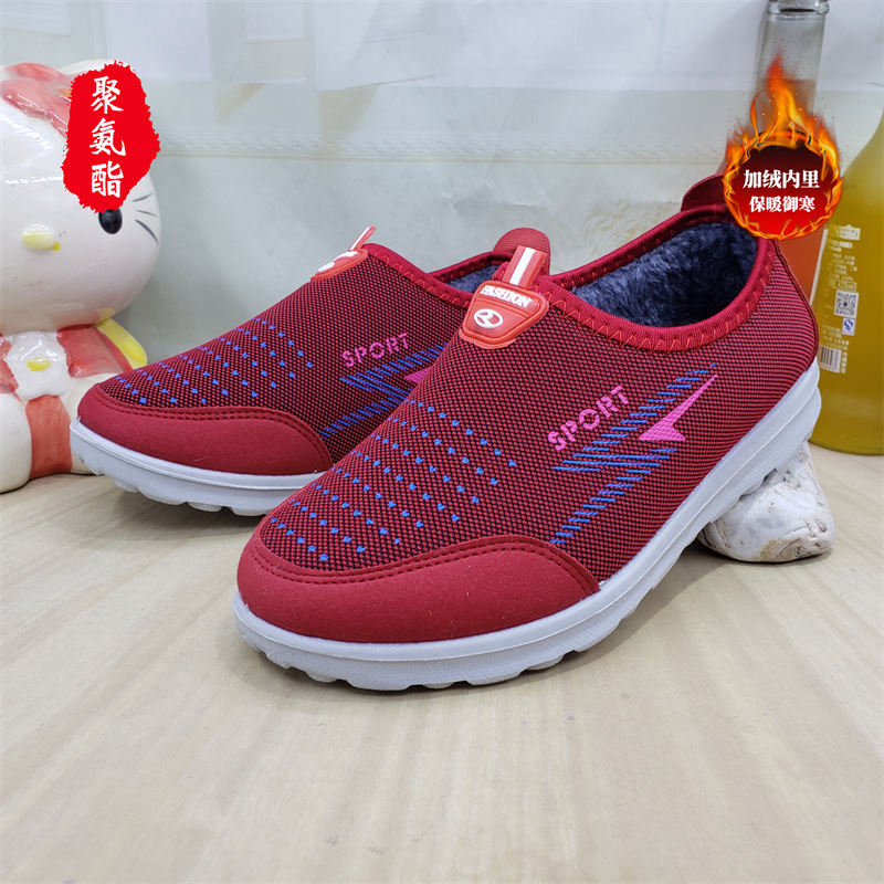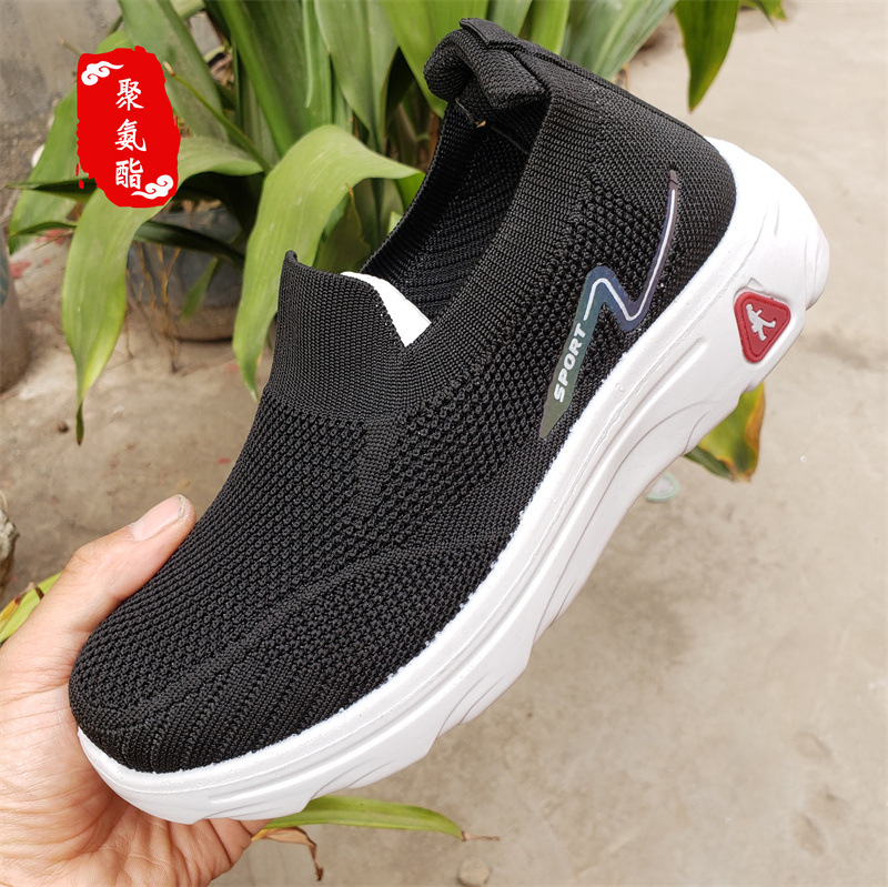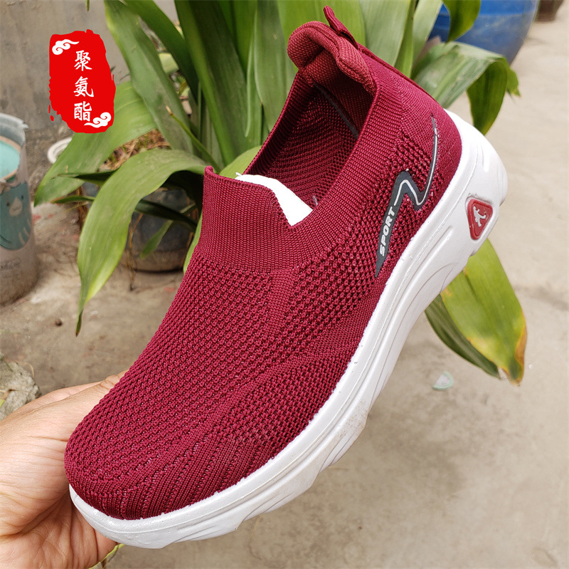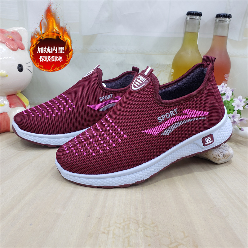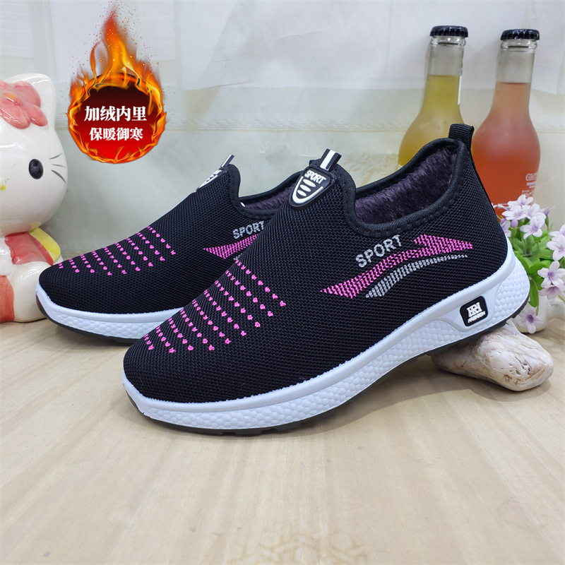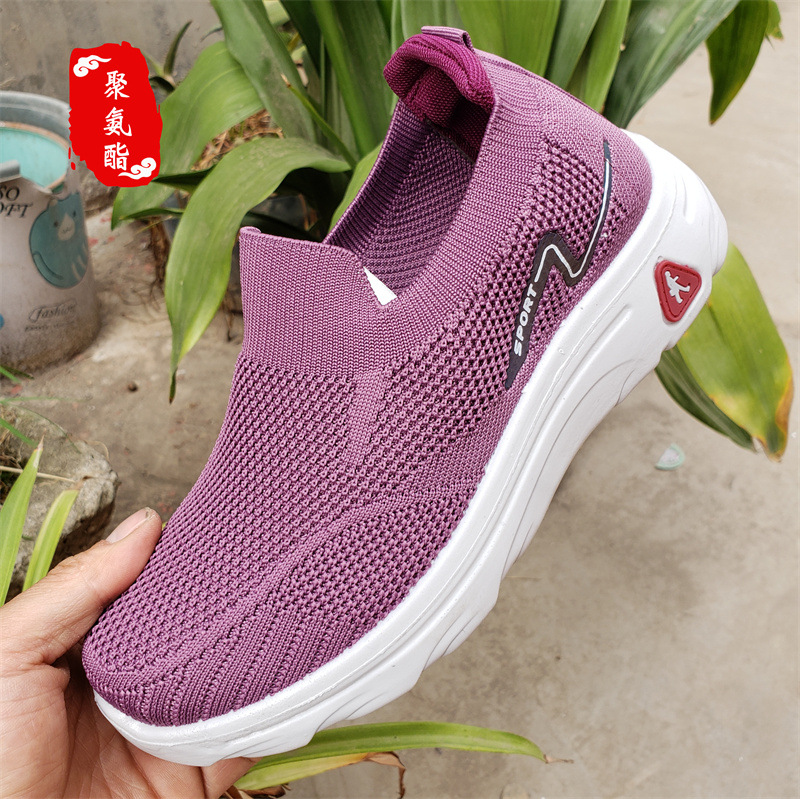 【소매】24가지 신상품, 올드 베이징 스타일 슬립온 레이스업 여성용 플라이 니트 단화, 스포츠 코튼 메쉬 고무 밑창 워킹화