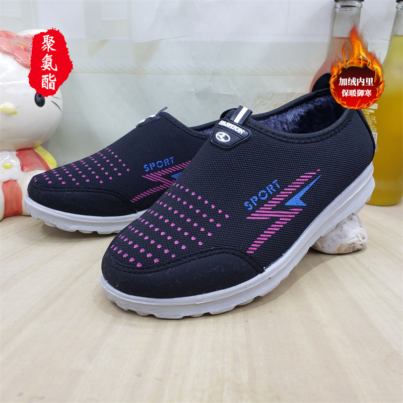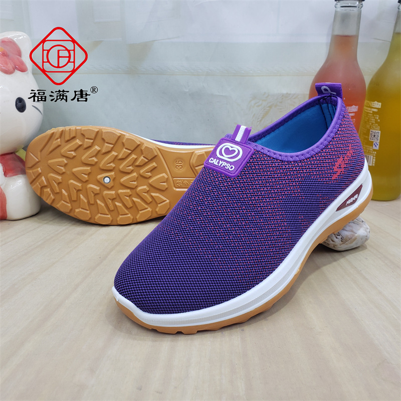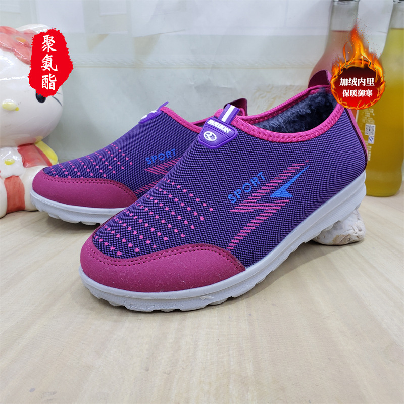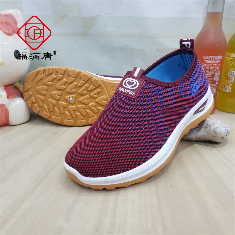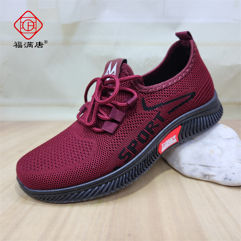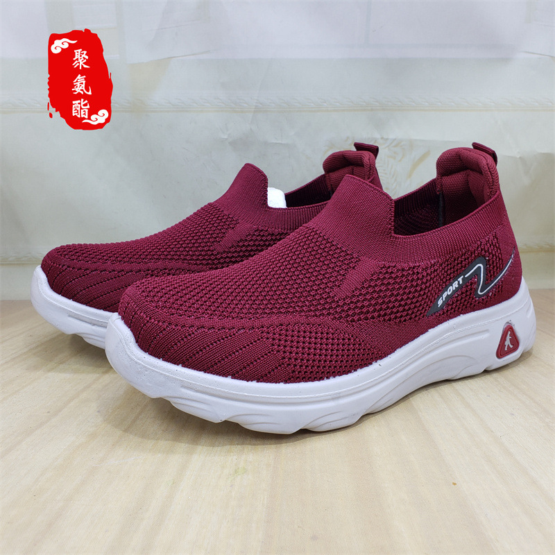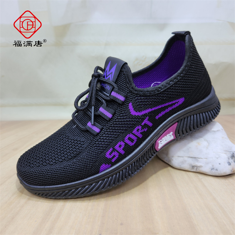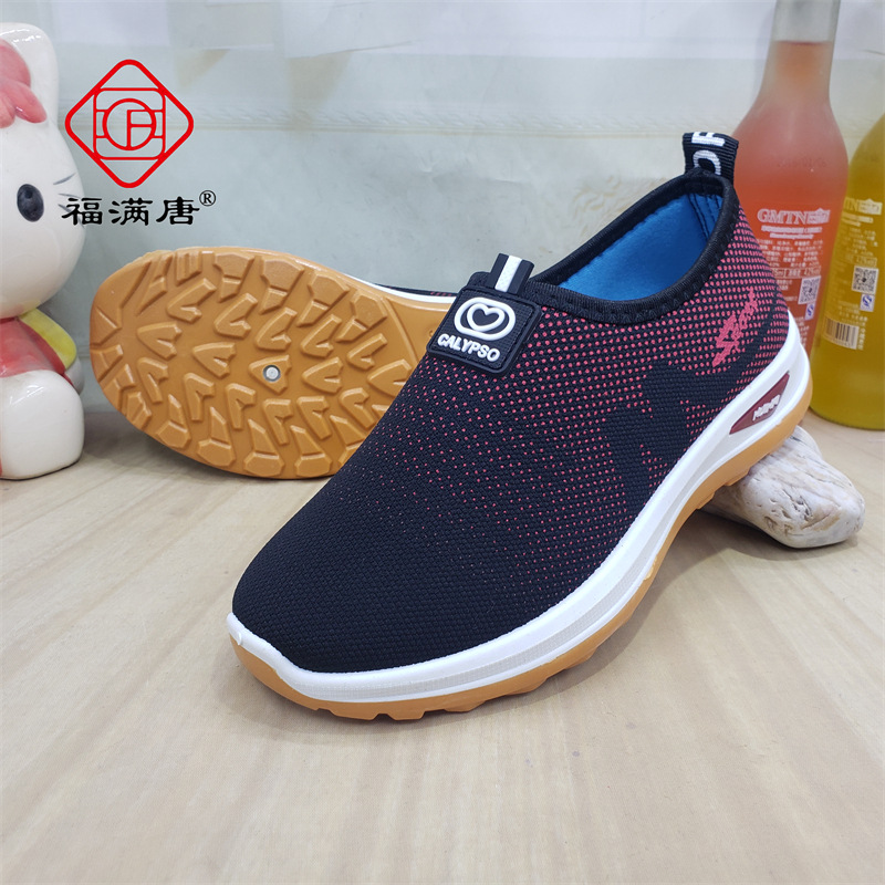 【소매】24가지 신상품, 올드 베이징 스타일 슬립온 레이스업 여성용 플라이 니트 단화, 스포츠 코튼 메쉬 고무 밑창 워킹화