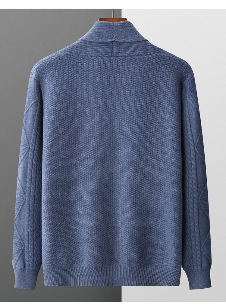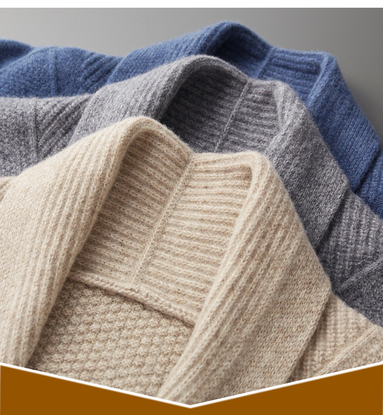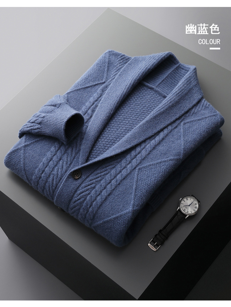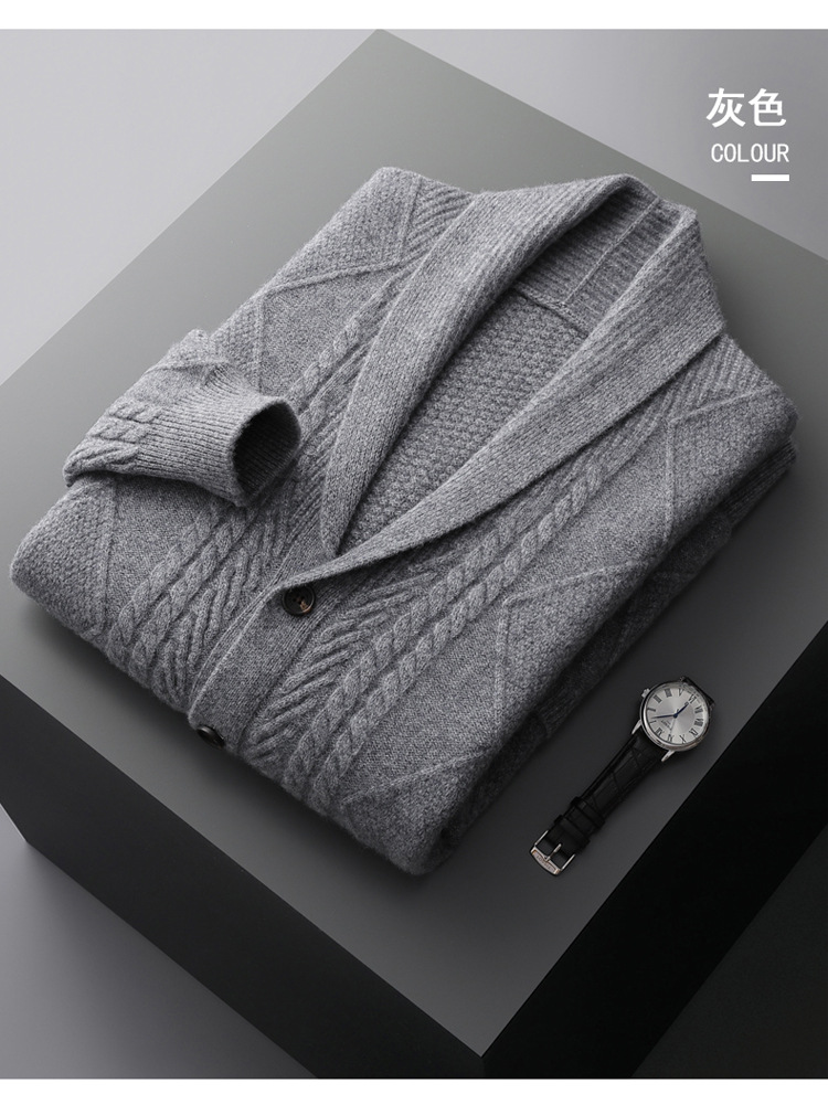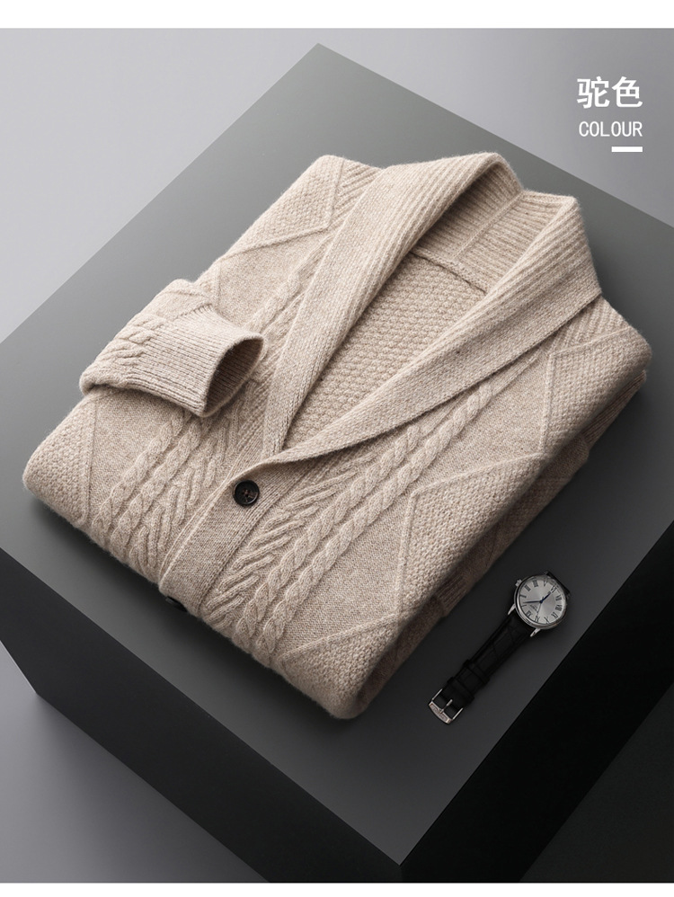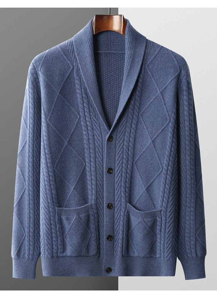 가을 겨울 100% 순모 남성용 니트 가디건, 루즈핏 아우터, 두꺼운 마름모 무늬 스웨터 재킷, 대형 니트 가디건