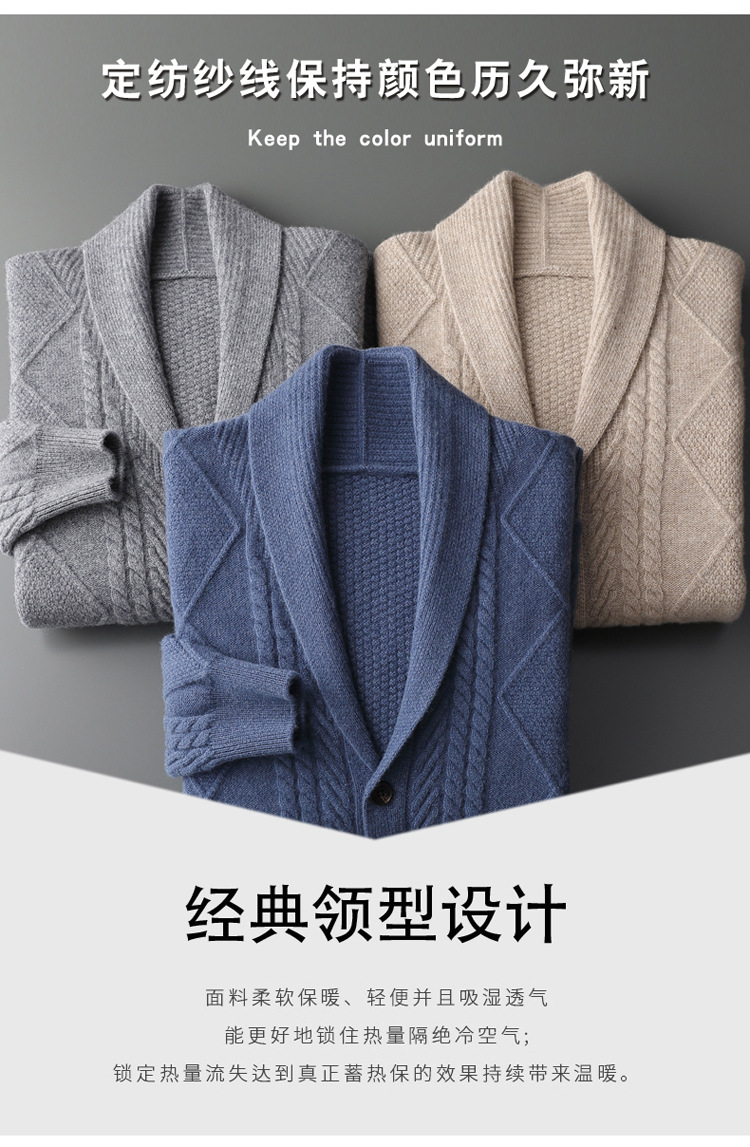 가을 겨울 100% 순모 남성용 니트 가디건, 루즈핏 아우터, 두꺼운 마름모 무늬 스웨터 재킷, 대형 니트 가디건스토어 가기