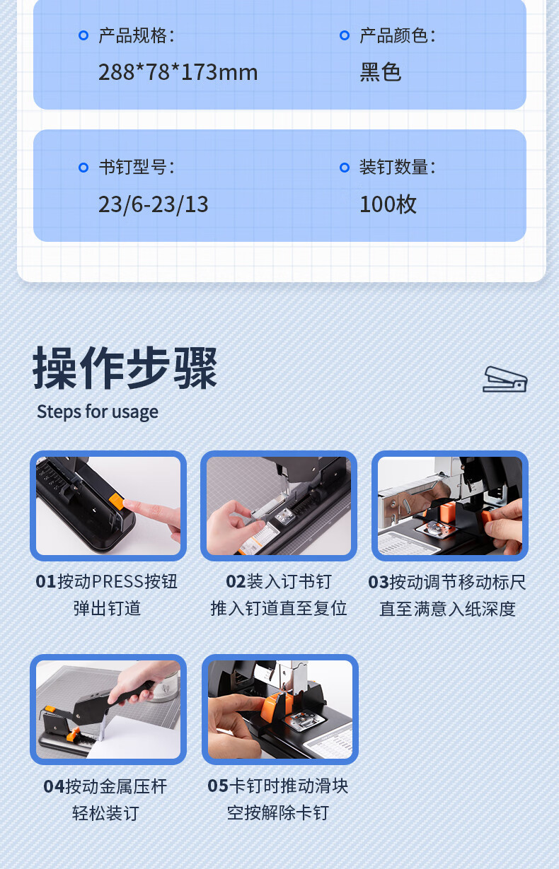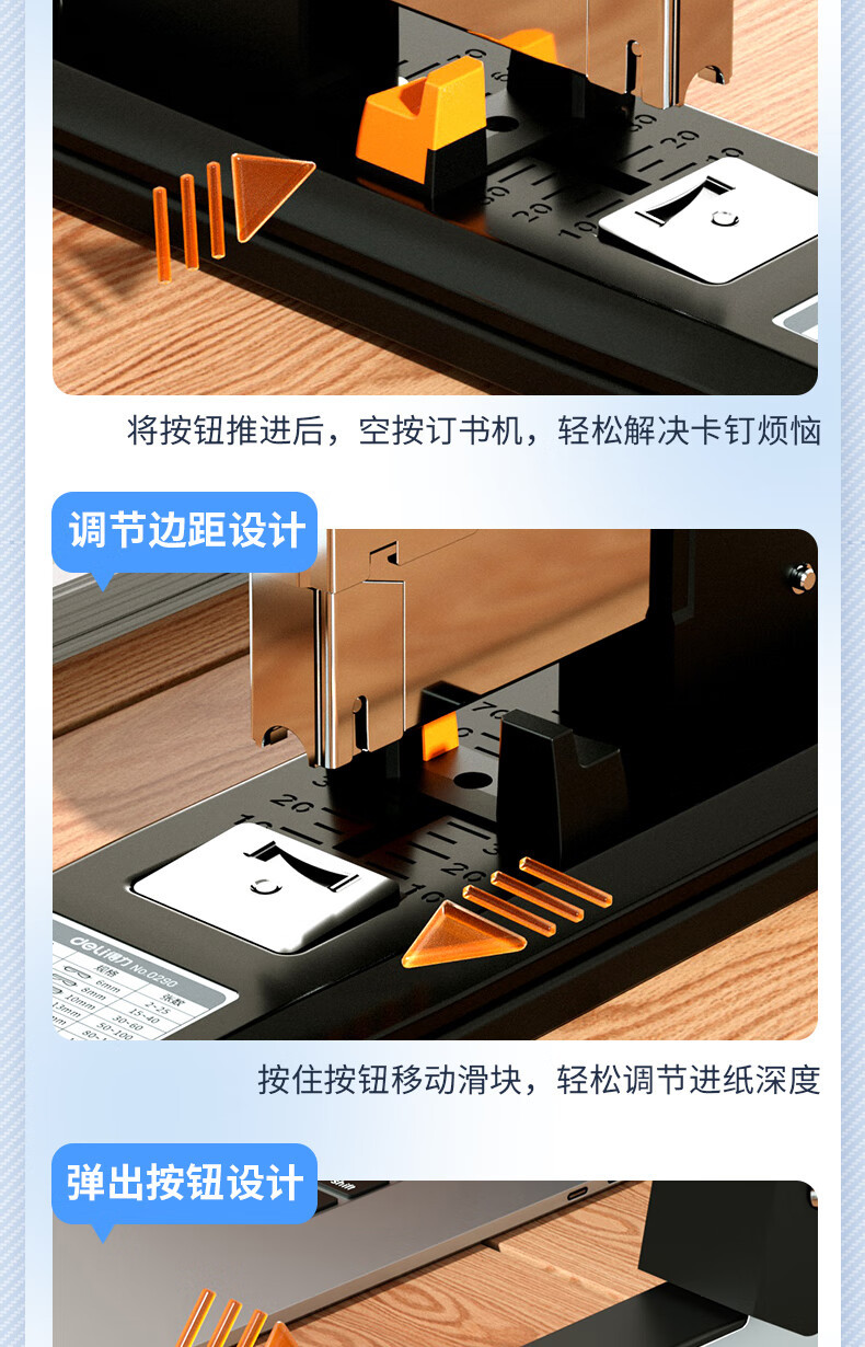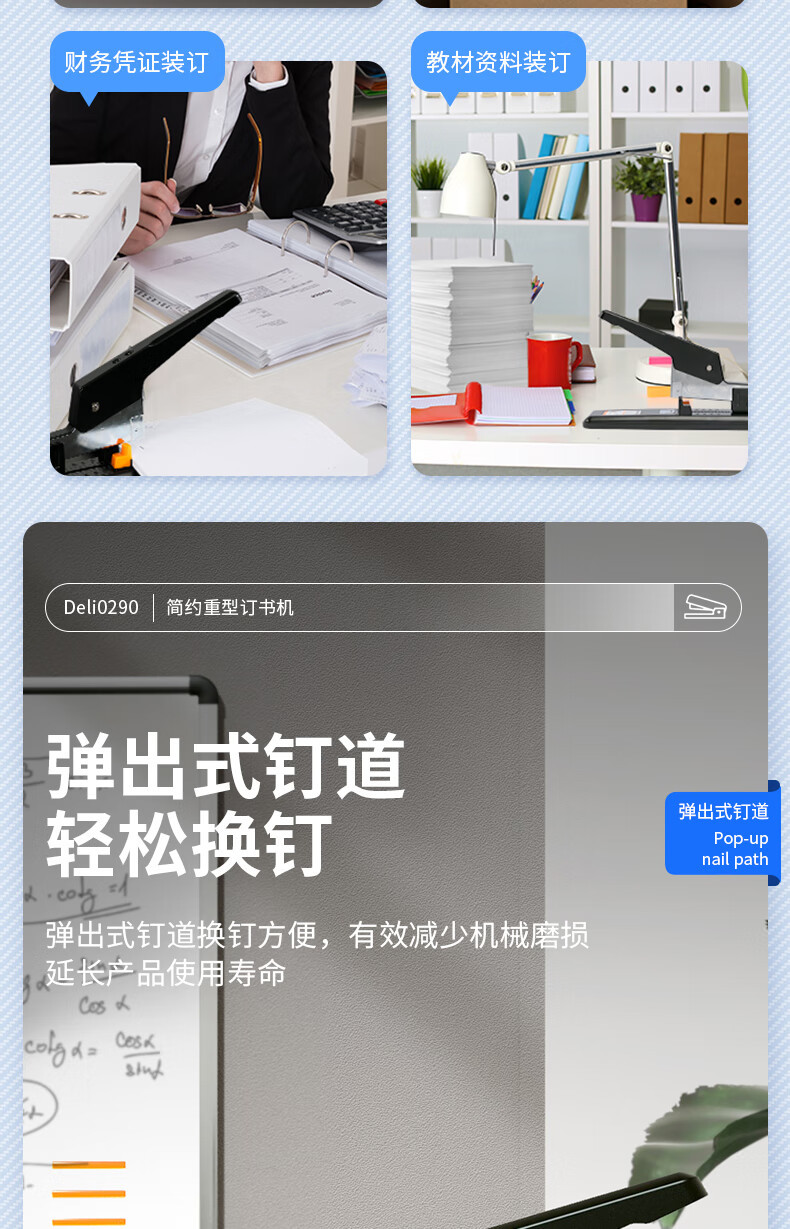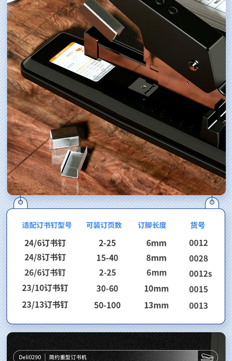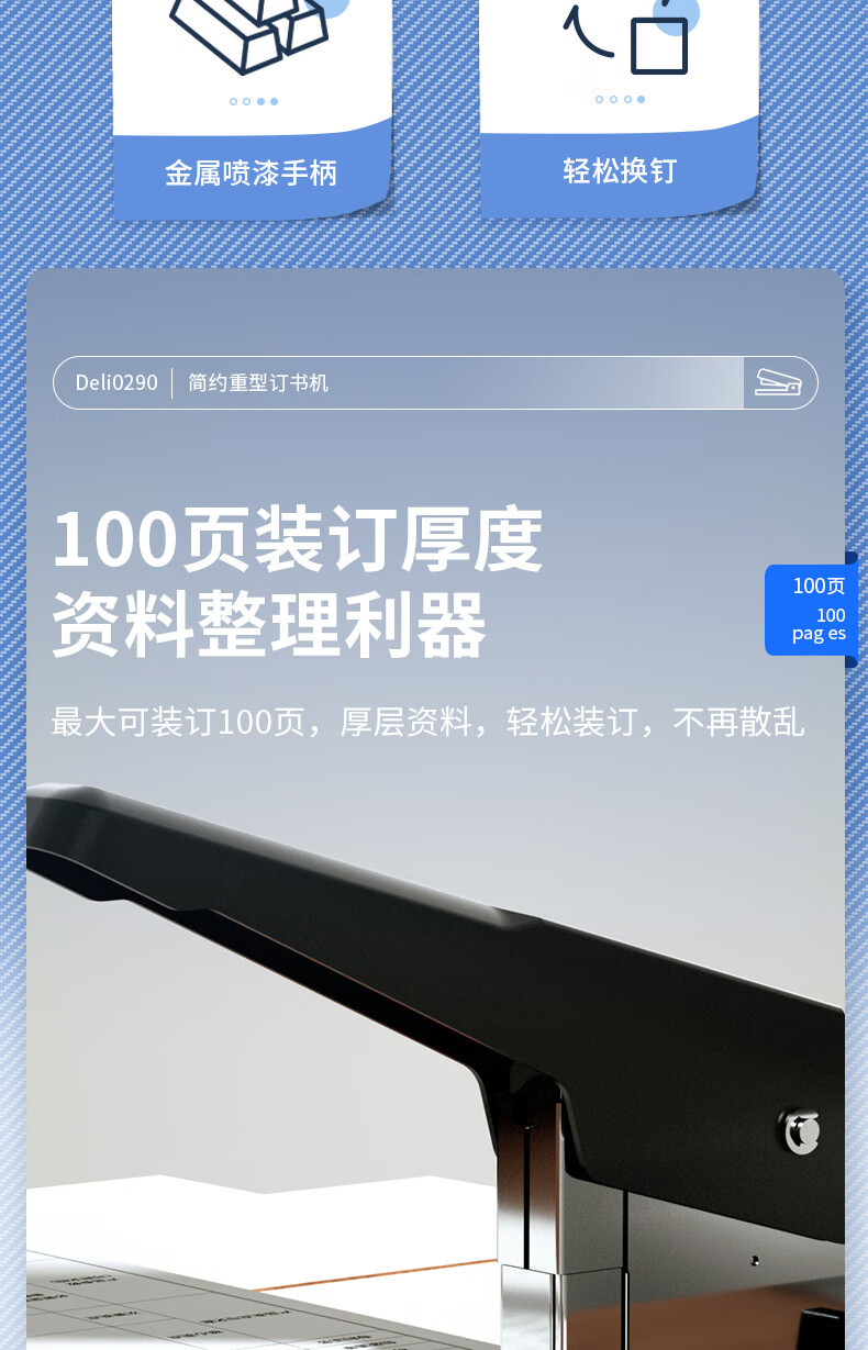 델리 0290 중형 스테이플러 제본 테이프 눈금 100 페이지 팝업 쉬운 노동 절약 스테이플러