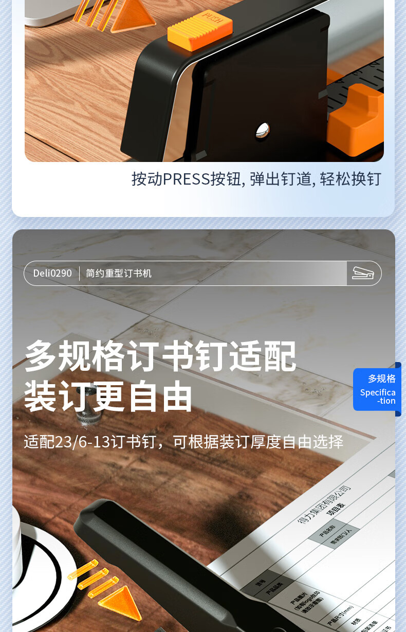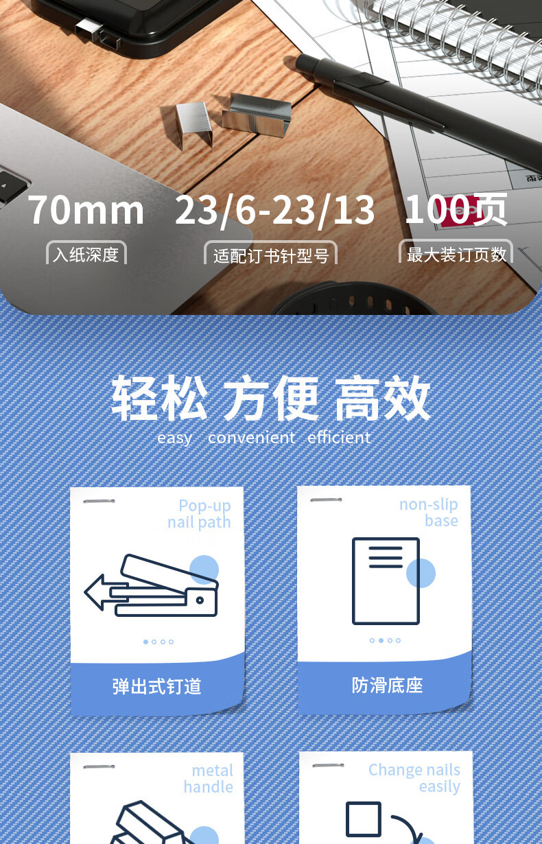 델리 0290 중형 스테이플러 제본 테이프 눈금 100 페이지 팝업 쉬운 노동 절약 스테이플러스토어 가기