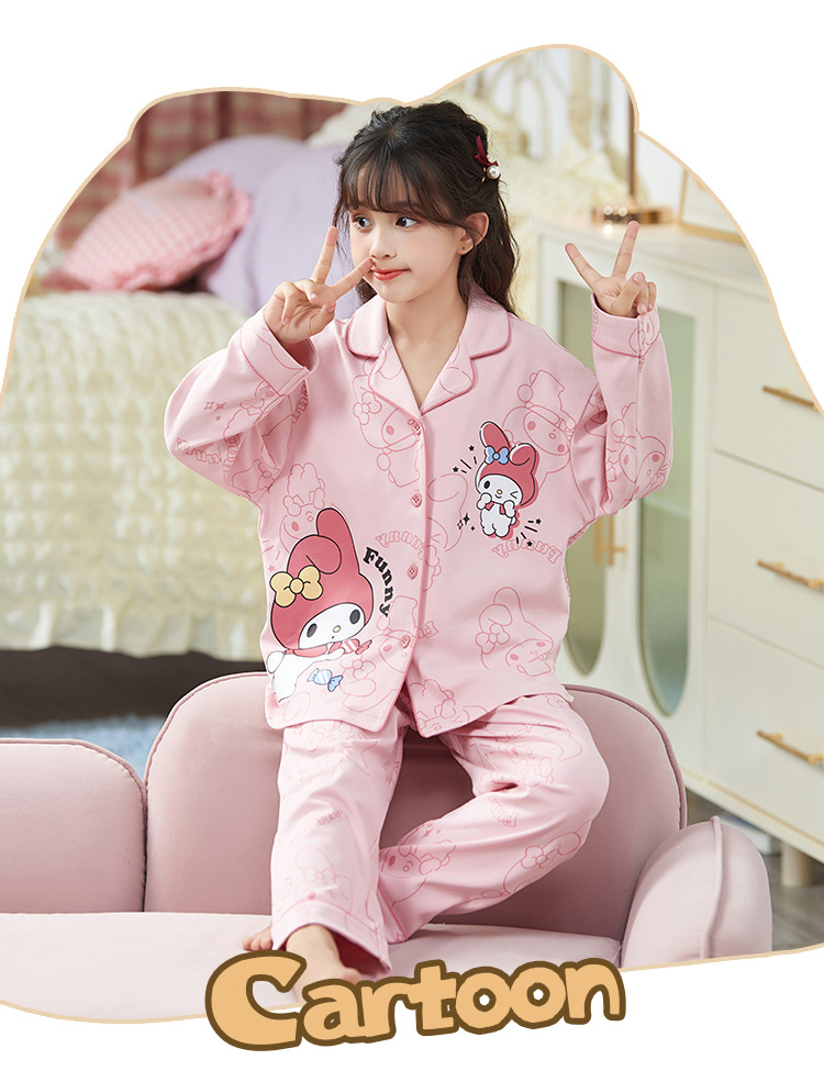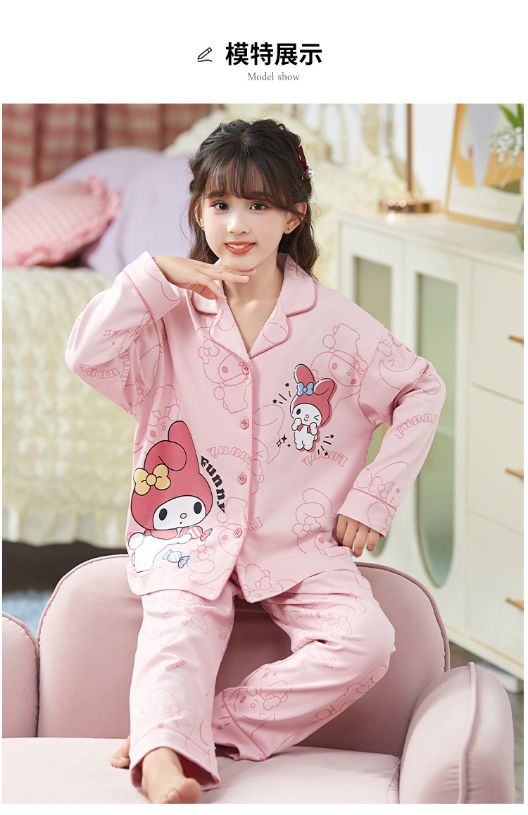 儿童睡衣女孩春秋季棉长袖薄款棉卡通美乐蒂女童家居服套装10