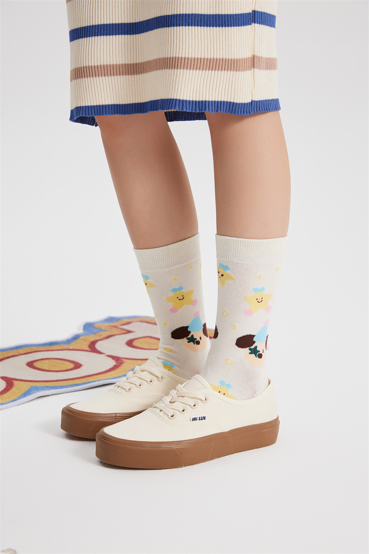 새로운 크리에이티브 만화 귀여운 토끼 일러스트 여성용 양말 봄과 여름 모든 경기 강아지 스타 뼈없는 양말