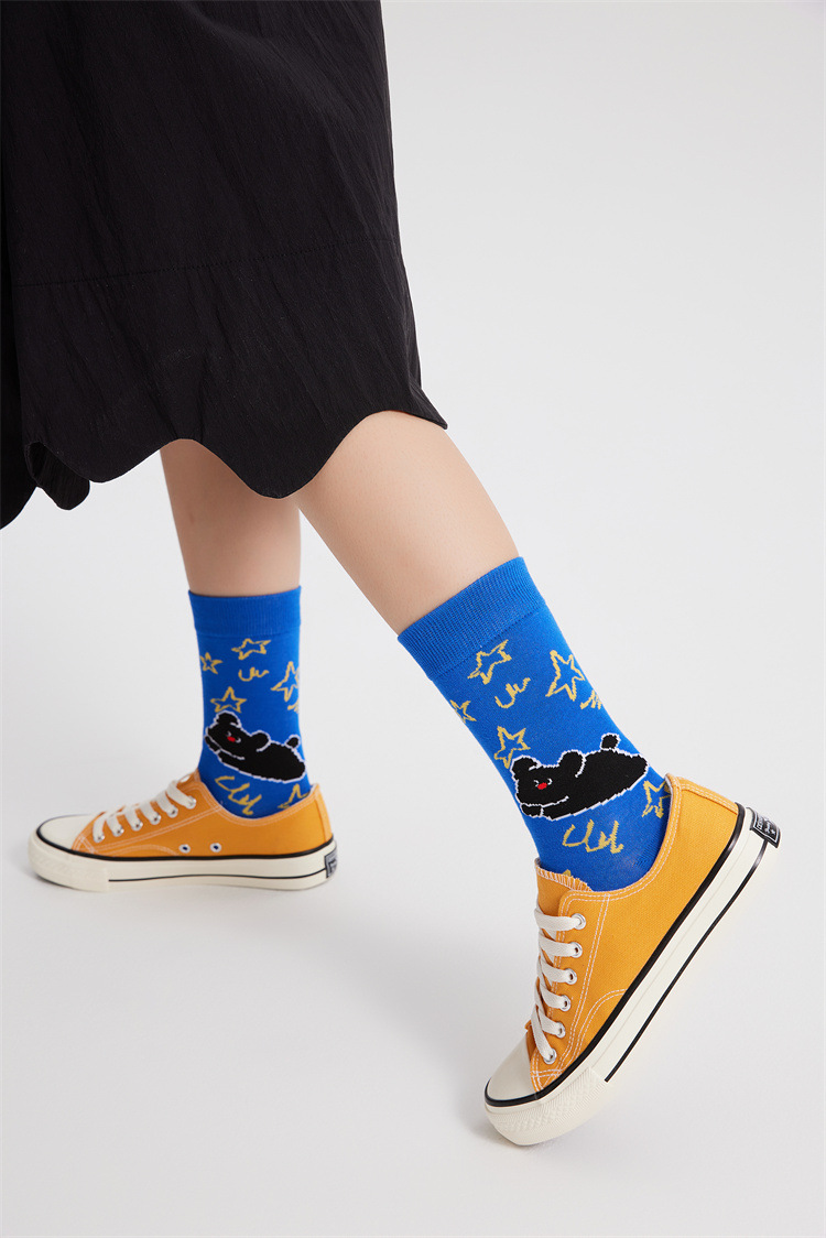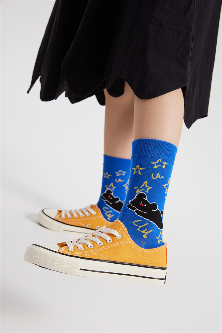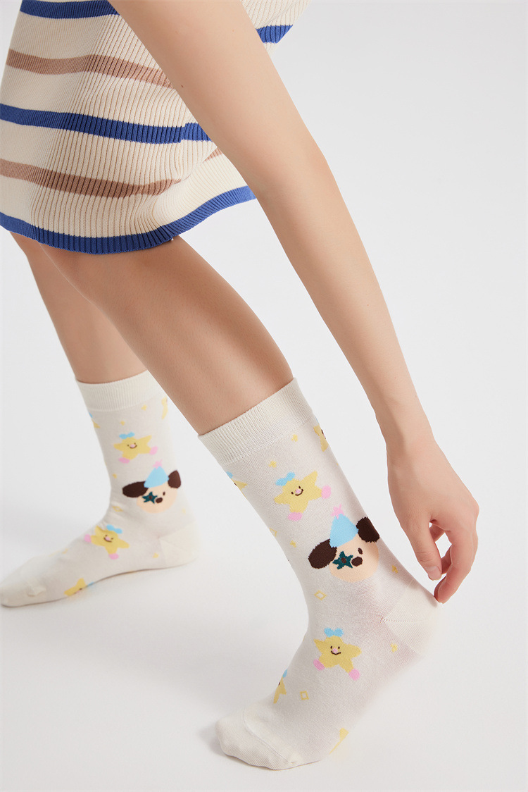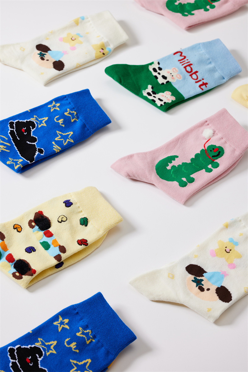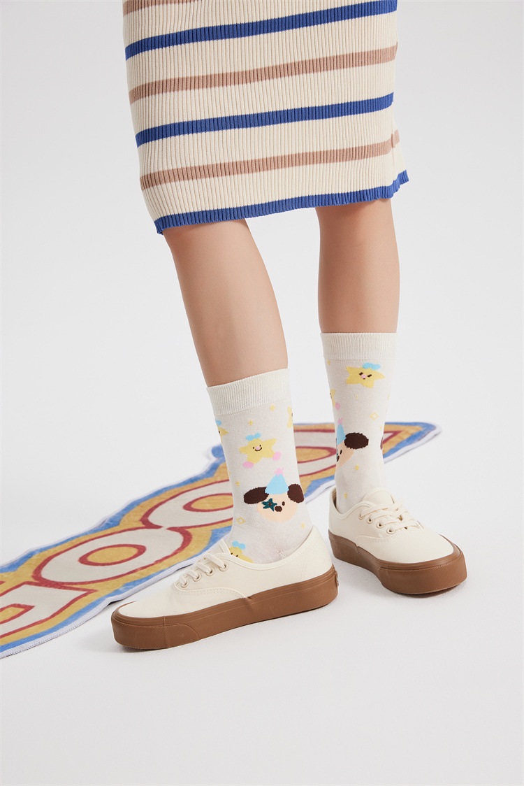 새로운 크리에이티브 만화 귀여운 토끼 일러스트 여성용 양말 봄과 여름 모든 경기 강아지 스타 뼈없는 양말스토어 가기