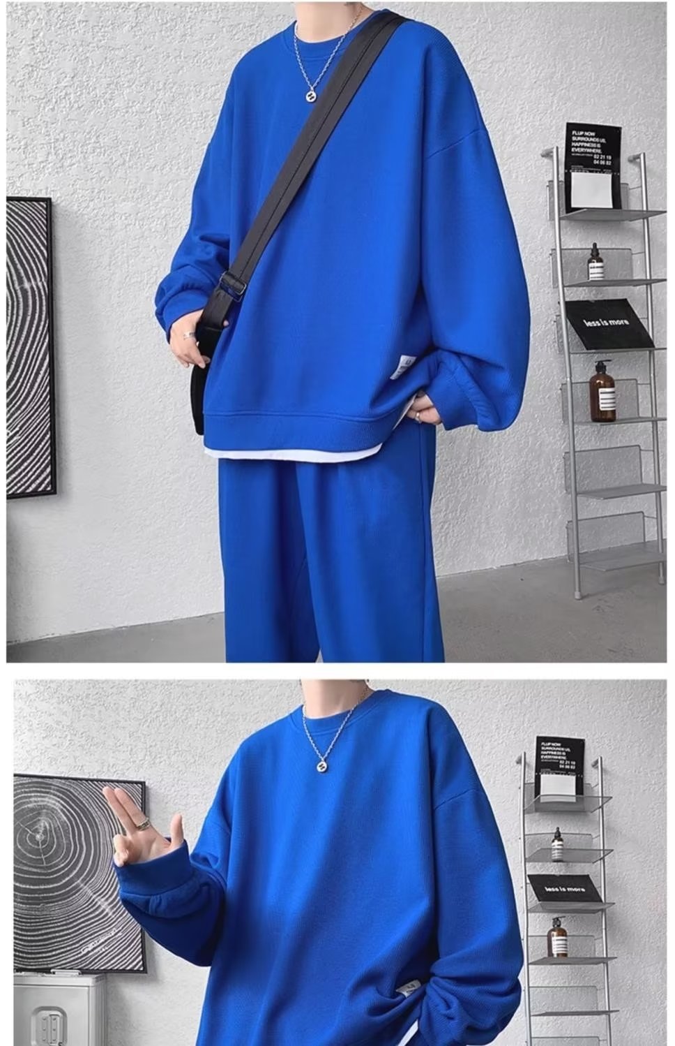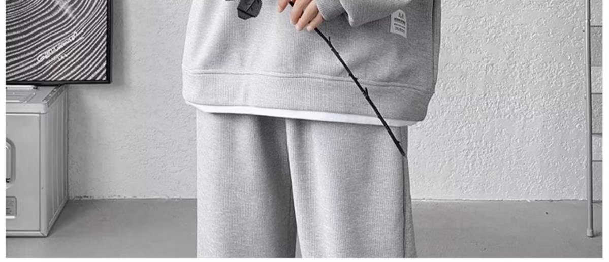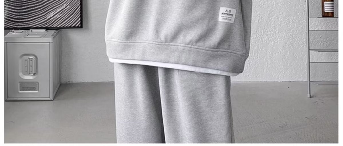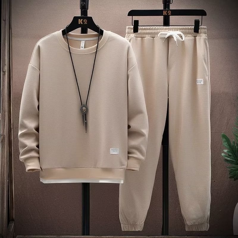내셔널 타이드 청소년 스포츠 세트 남자의 봄과 가을 무거운 와플 스웨터 바지 플러스 사이즈 남성복 매칭 세트스토어 가기