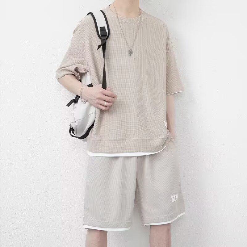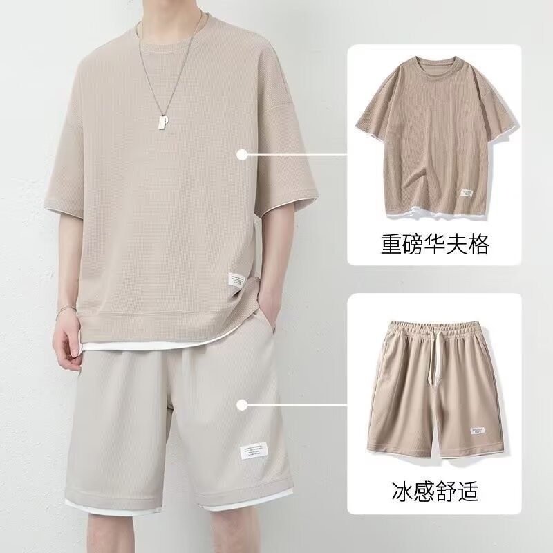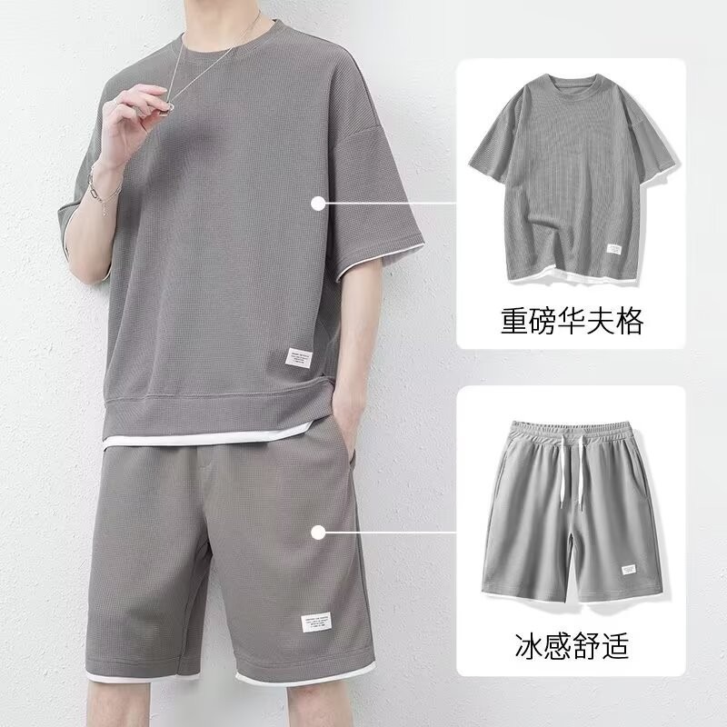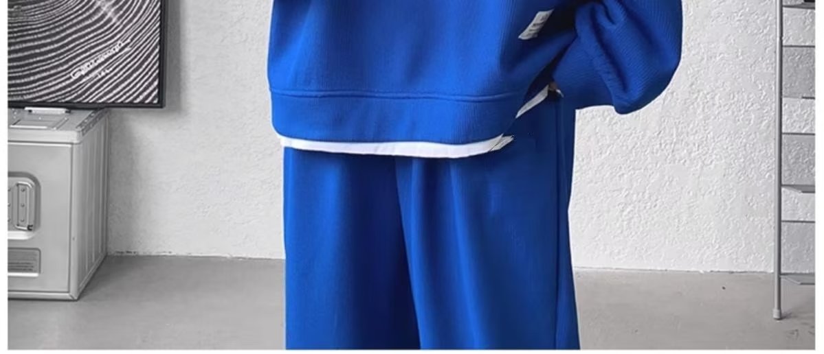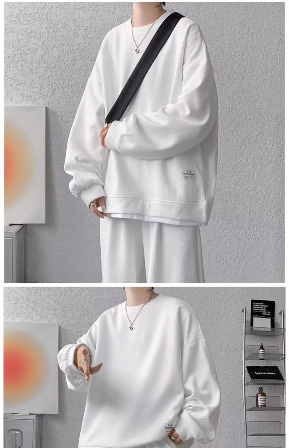 내셔널 타이드 청소년 스포츠 세트 남자의 봄과 가을 무거운 와플 스웨터 바지 플러스 사이즈 남성복 매칭 세트스토어 가기