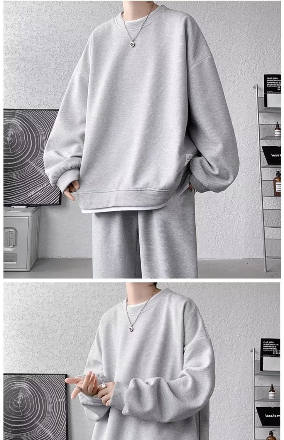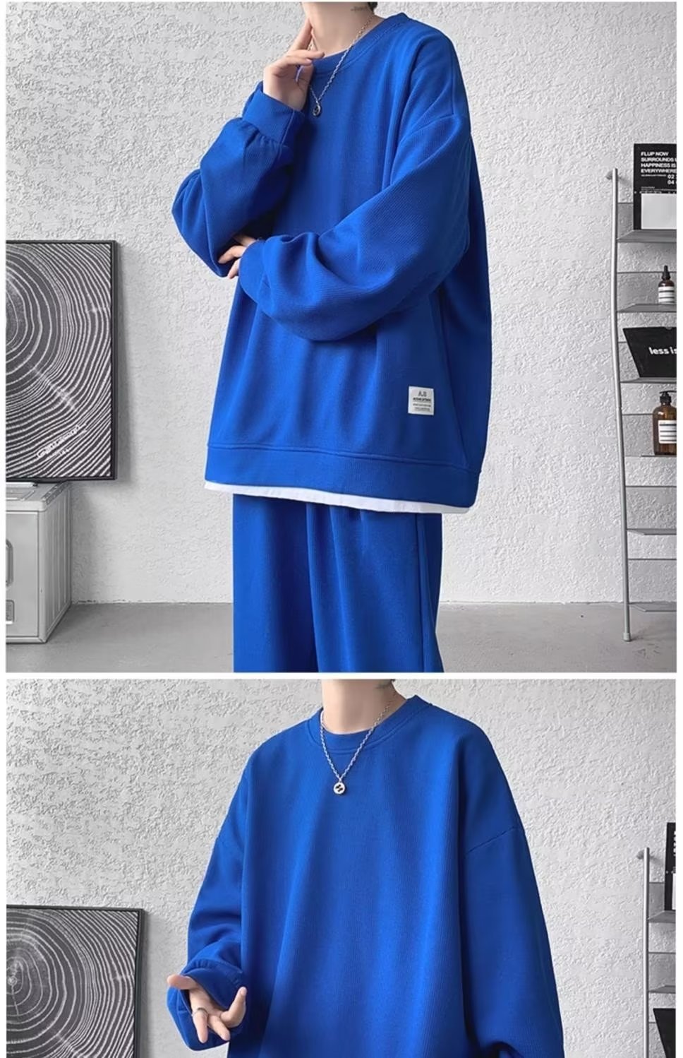 내셔널 타이드 청소년 스포츠 세트 남자의 봄과 가을 무거운 와플 스웨터 바지 플러스 사이즈 남성복 매칭 세트