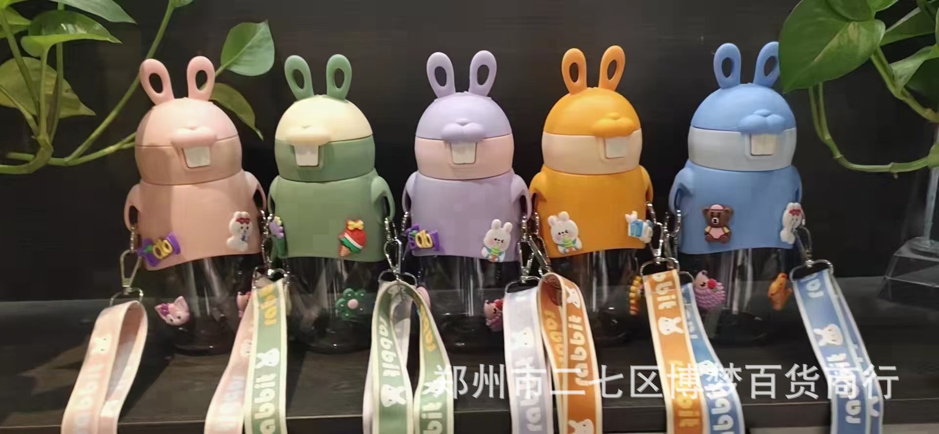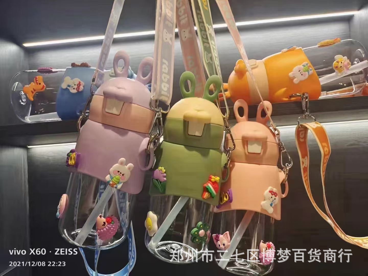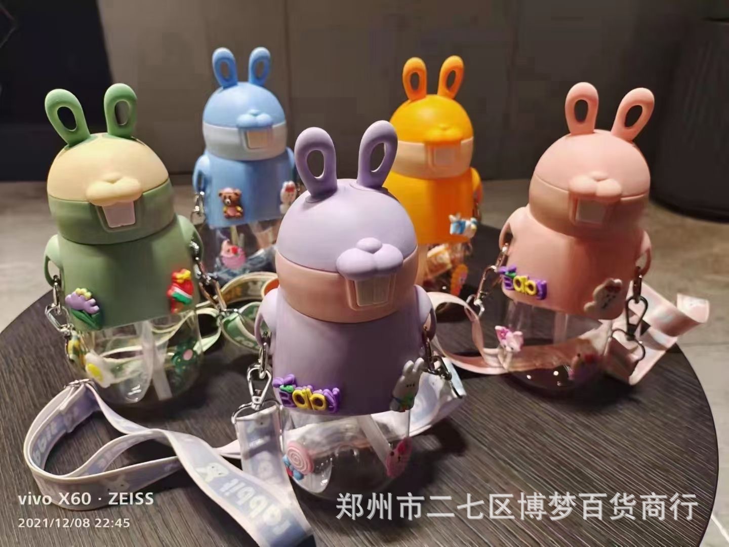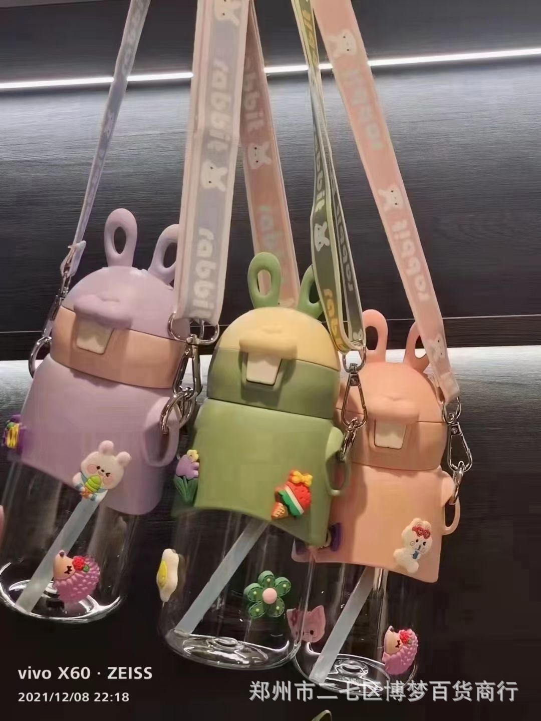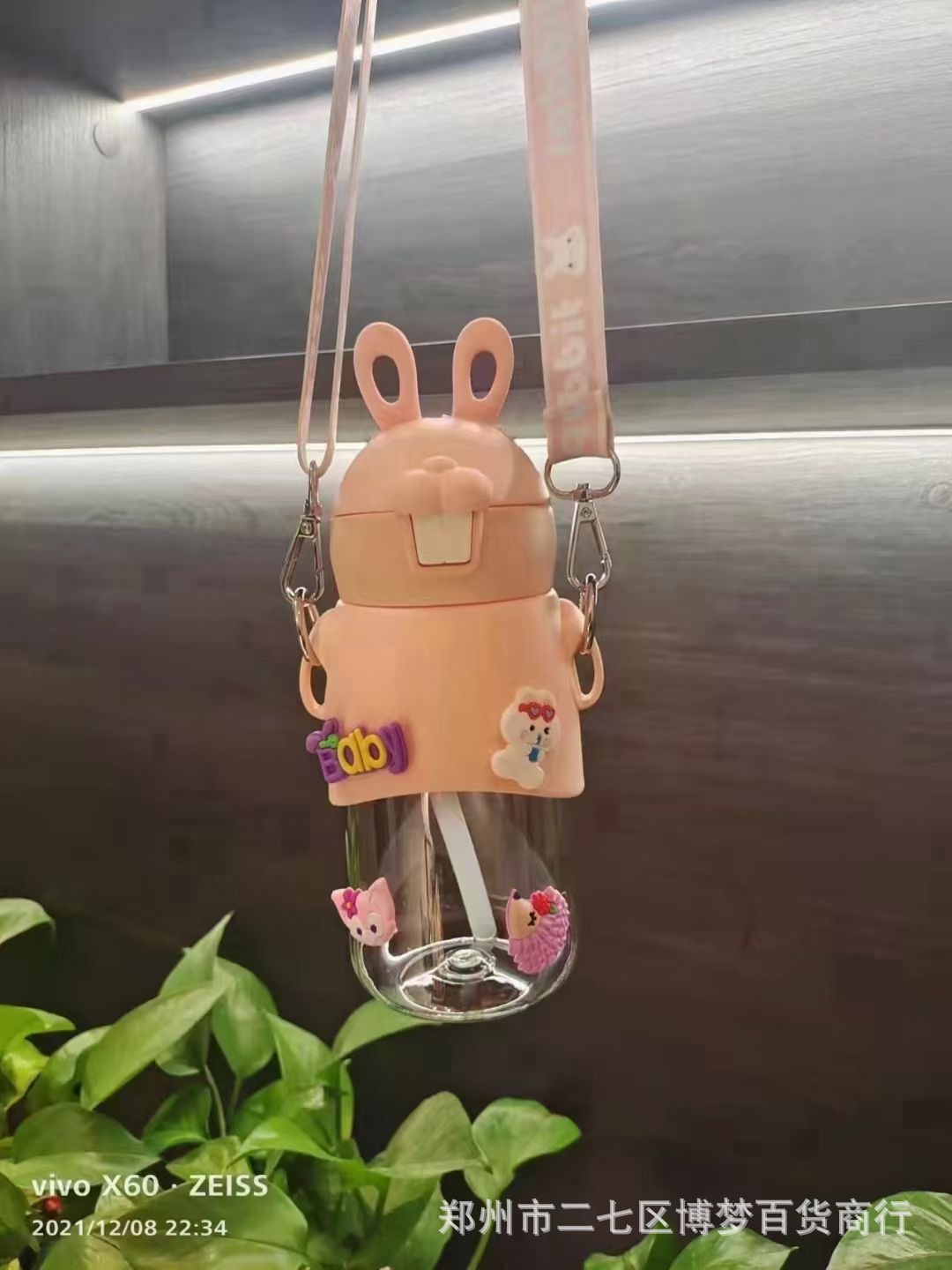어린이 모에 토끼 물 컵 흡입 튜브 컵 만화 인터넷 인기 여름 플라스틱 컵 유치원 아기 학생 대용량 물 컵스토어 가기