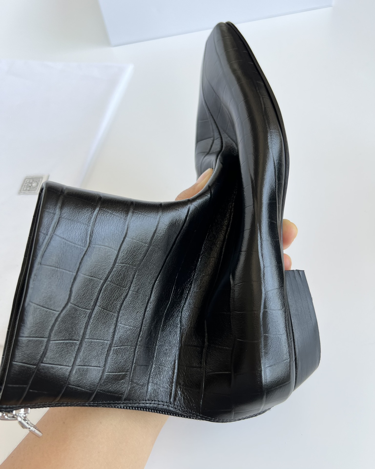 채널 순수 원래 악어 패턴 소가죽 낮은 굽 발목 부츠 프랑스 복고풍 카우보이 부츠 여성을위한 새로운 스퀘어 헤드 낮은 굽 발목 부츠