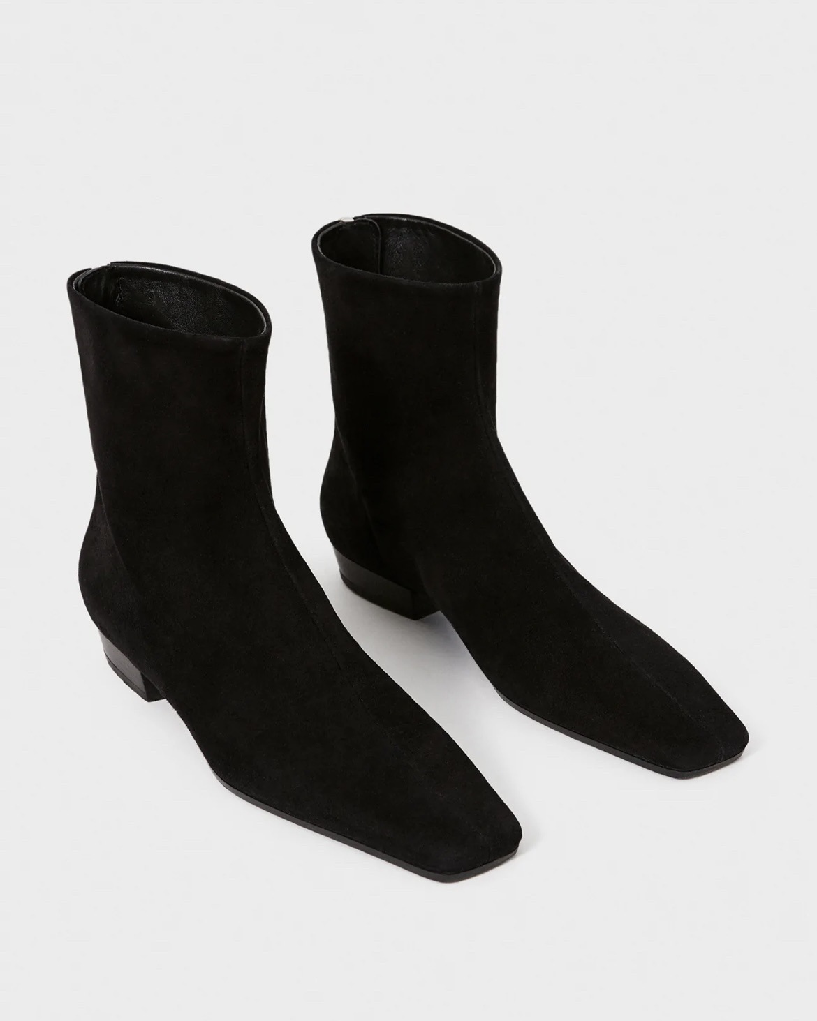 一双简约干练、低调时髦的短靴,没有鲜艳的色彩和繁杂的设计,仅凭一双2厘米的小跟和利落时髦的方头设计,就能气场全开。