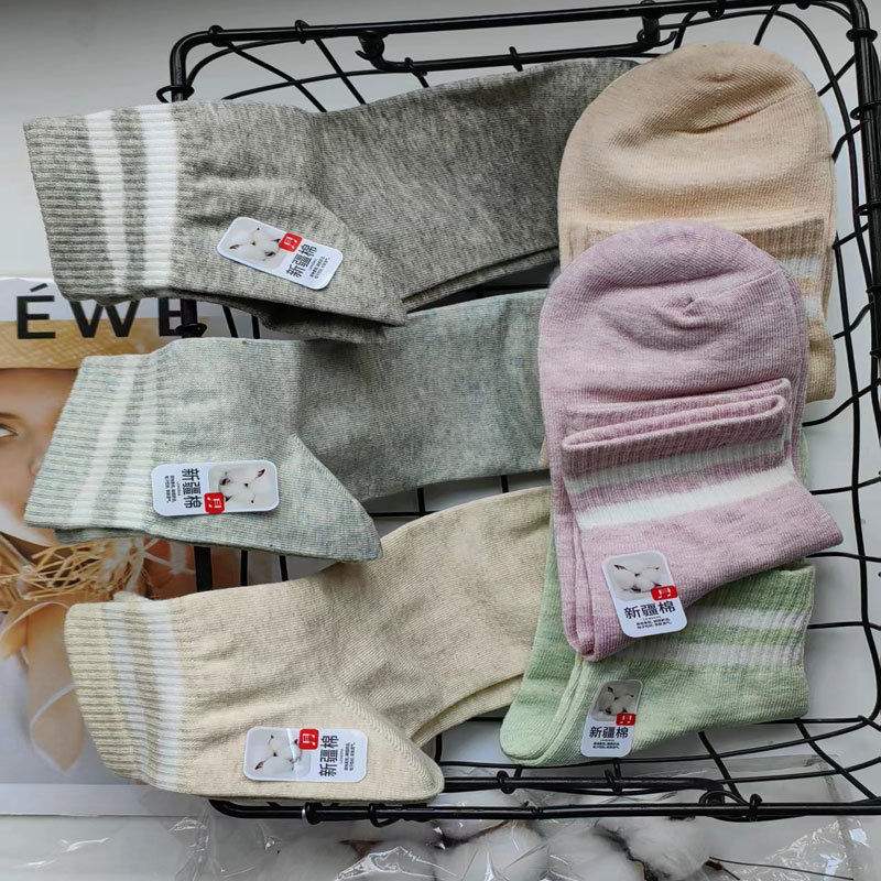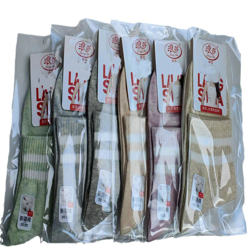 Longsha 여성용 면 양말 면 양말 면 통기성 땀 흡수 미드 실린더 가을과 겨울 독립 포장 면 양말