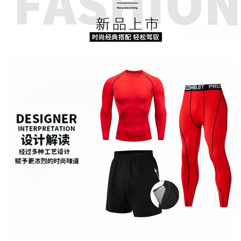크로스 보더 피트니스 세트 남자의 꽉 끼는 세트 스포츠 피트니스 농구 축구 달리기 기본 압축 요가 세트스토어 가기
