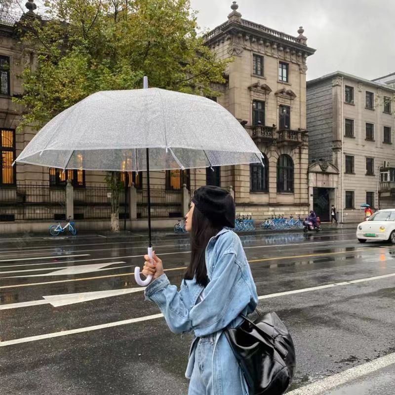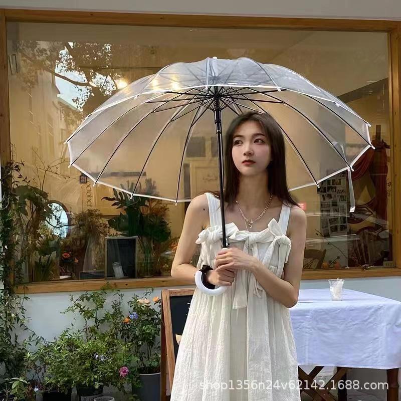 투명 우산 한국식 우산 우산 긴 손잡이 우산 인터넷 인기 두꺼운 학생 여성의 신선한 고급 우산스토어 가기