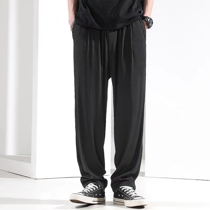 여름 얇은 아이스 실크 바지 남자의 느슨한 플러스 사이즈 드레이핑 에어컨 스포츠 캐주얼 바지 유행 와이드 레그 바지