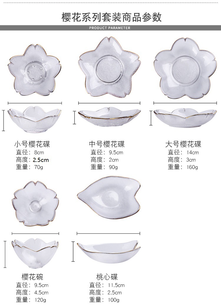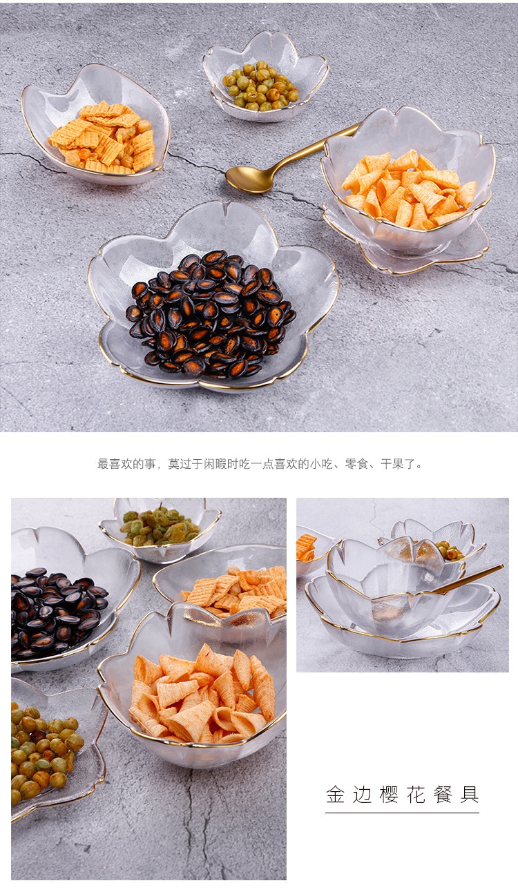 INS 프놈펜 사랑 접시 창조적 인 유리 식기 벚꽃 접시 작은 그릇 디저트 그릇 디저트 접시 과일 접시 맛 접시