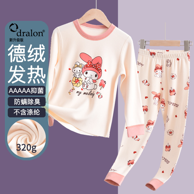 어린이 양면 벨벳 열 속옷 세트 가을 옷 긴 바지 여아 기모 두꺼운 실 실과 실 바지 어린이 잠옷