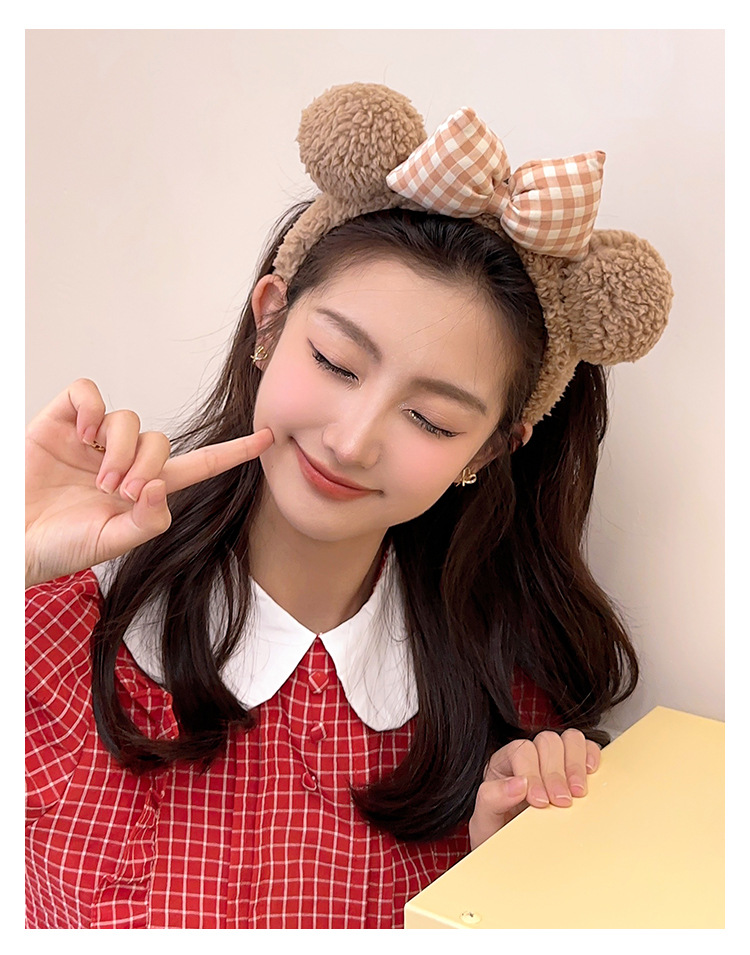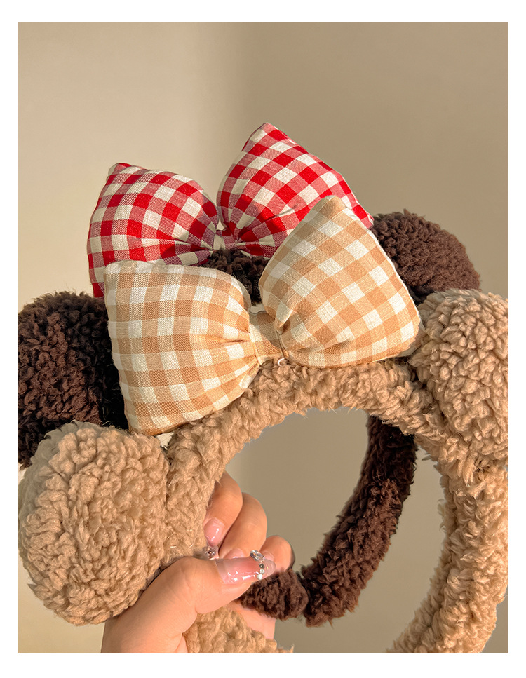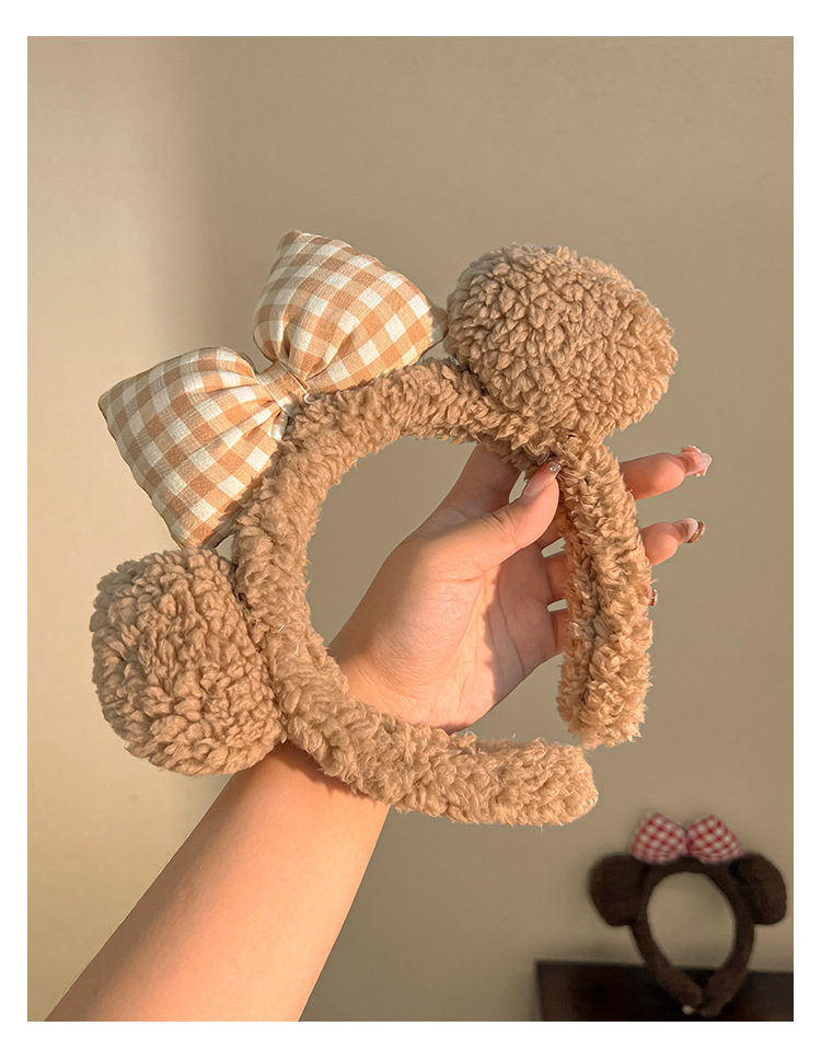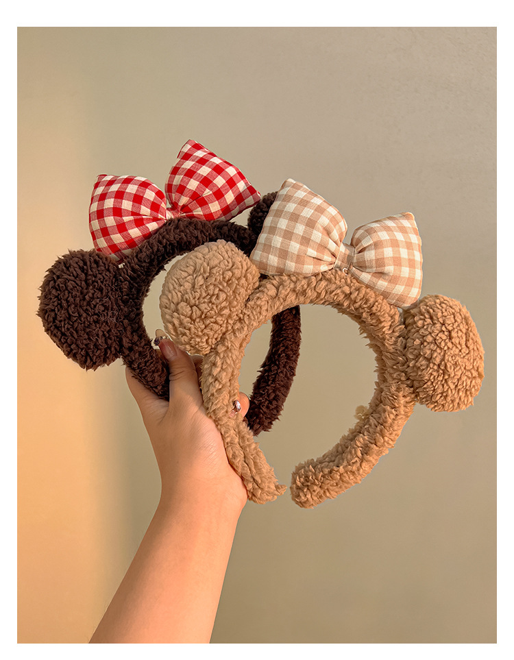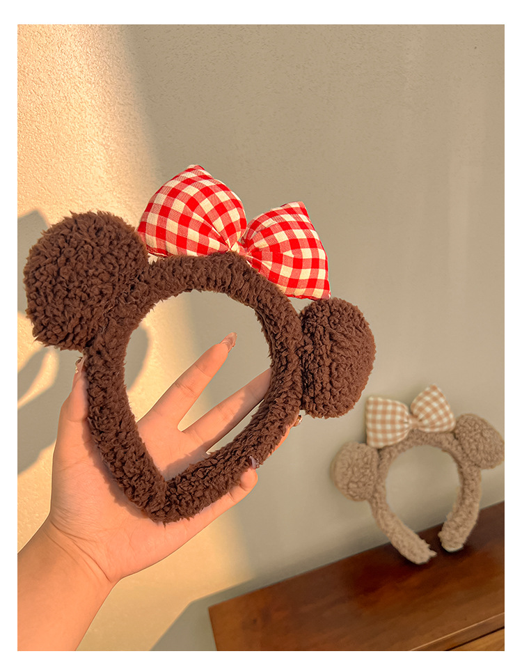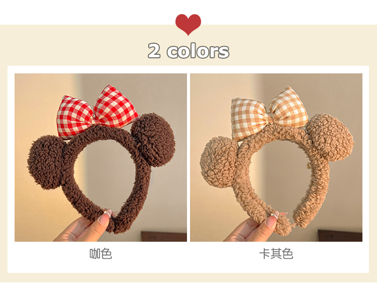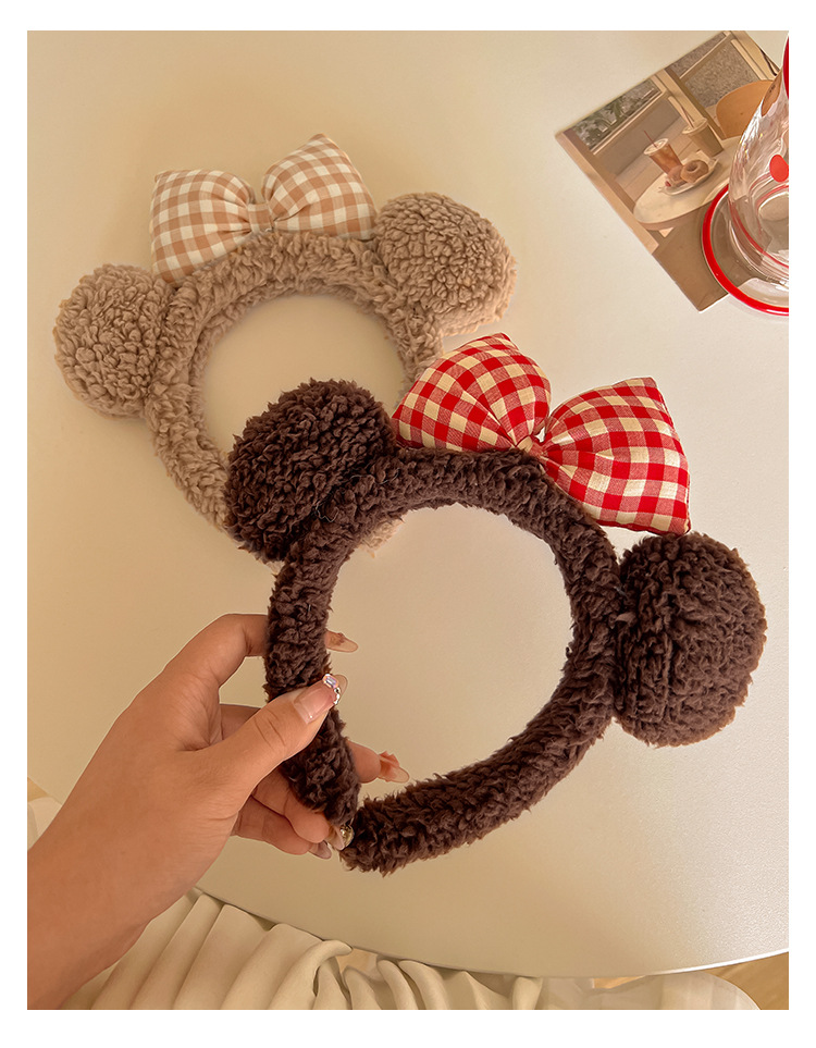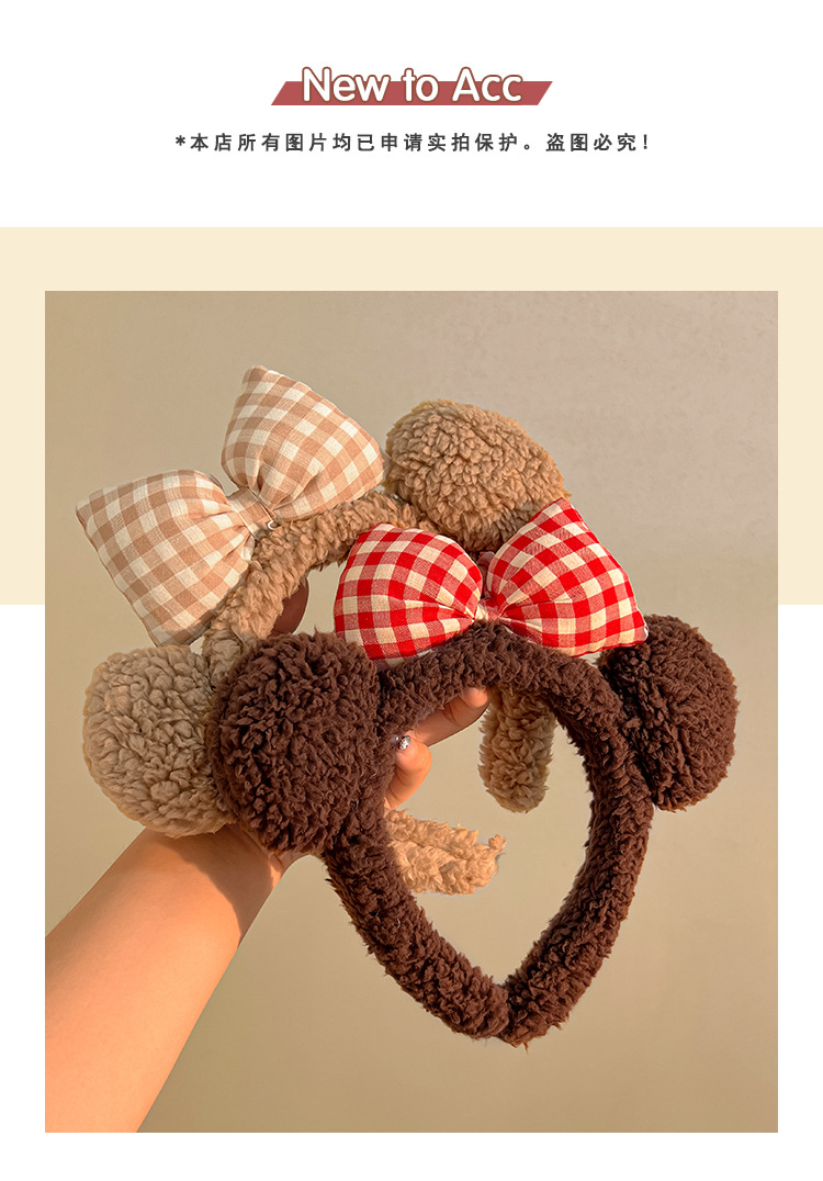 여성용 리본 곰 귀 플러시 머리띠, 세안 및 머리 압착 미끄럼 방지 머리띠 2024 새로운 귀여운 머리띠스토어 가기