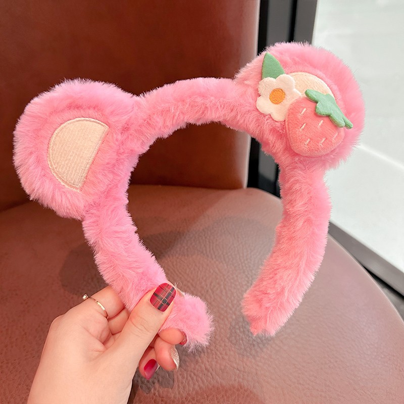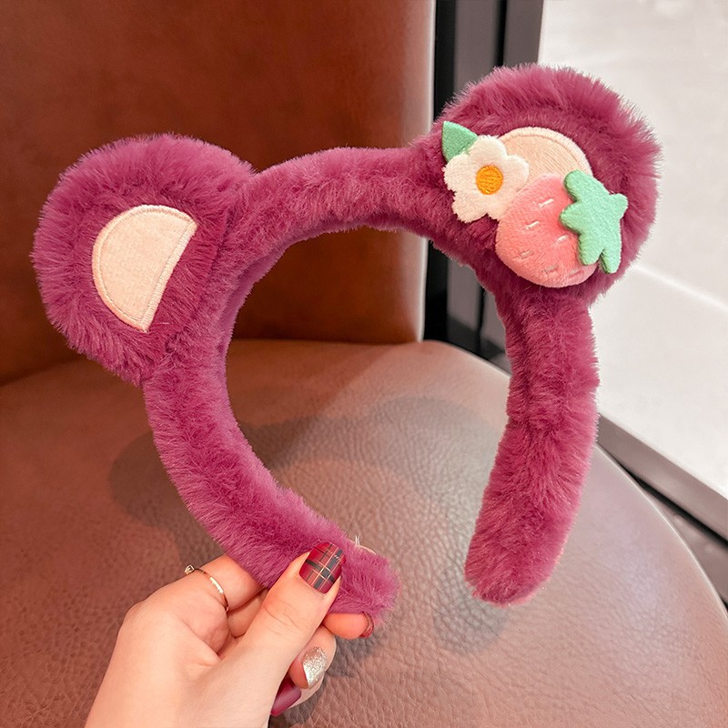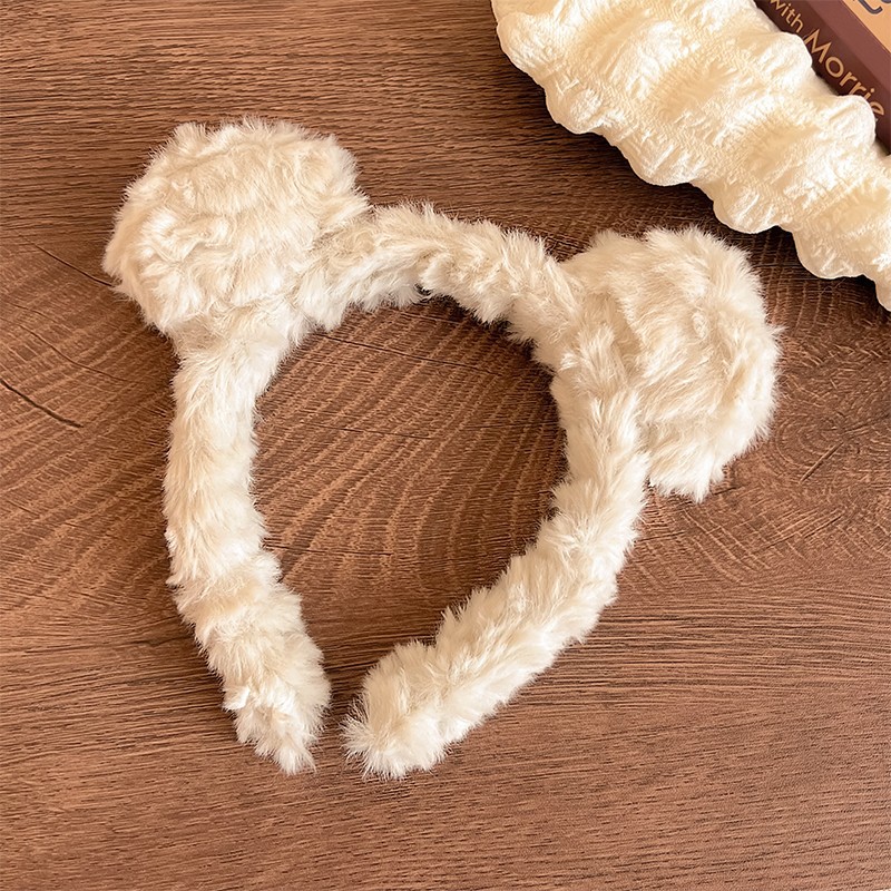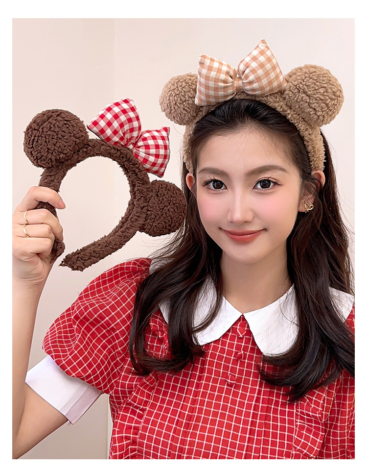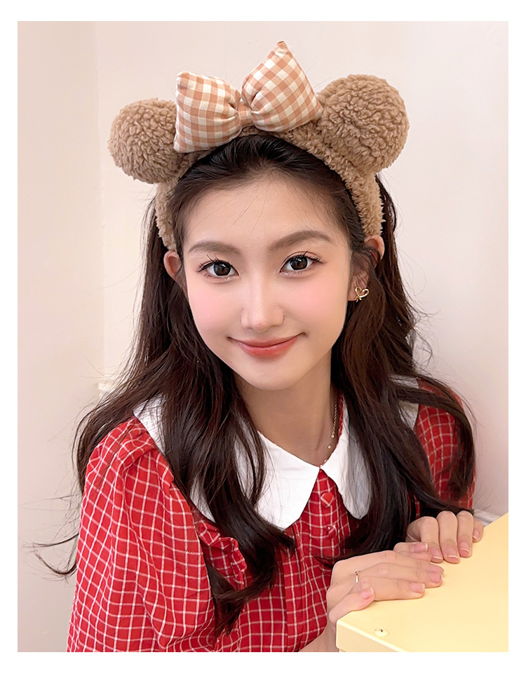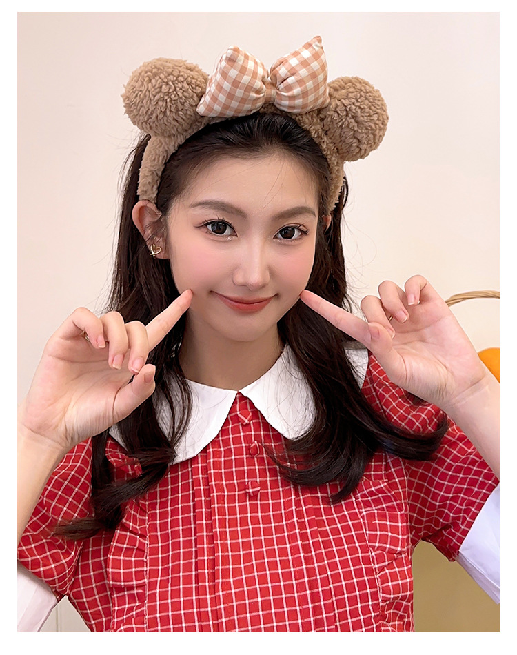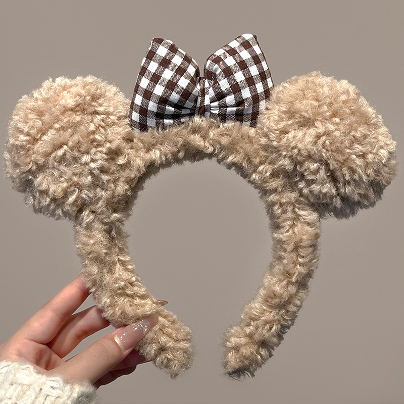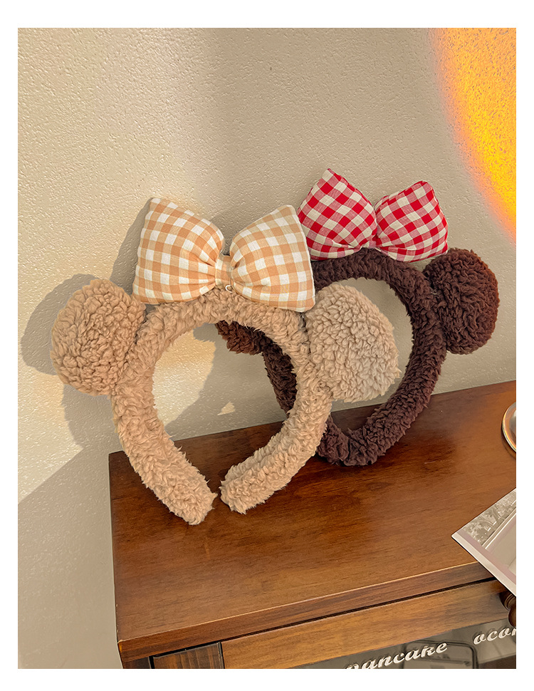 여성용 리본 곰 귀 플러시 머리띠, 세안 및 머리 압착 미끄럼 방지 머리띠 2024 새로운 귀여운 머리띠스토어 가기