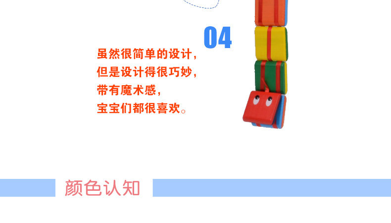 超可爱的一款玩具,色彩像彩虹一样,第一眼就被吸引住了!铭铭推荐给各位买家们,出口品质,质是很不错哦,但木质大多存在一些细小的瑕疵,如串漆,介意慎拍!