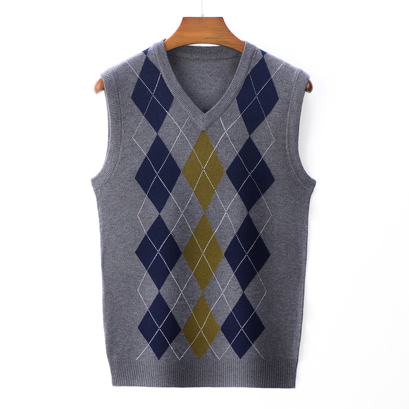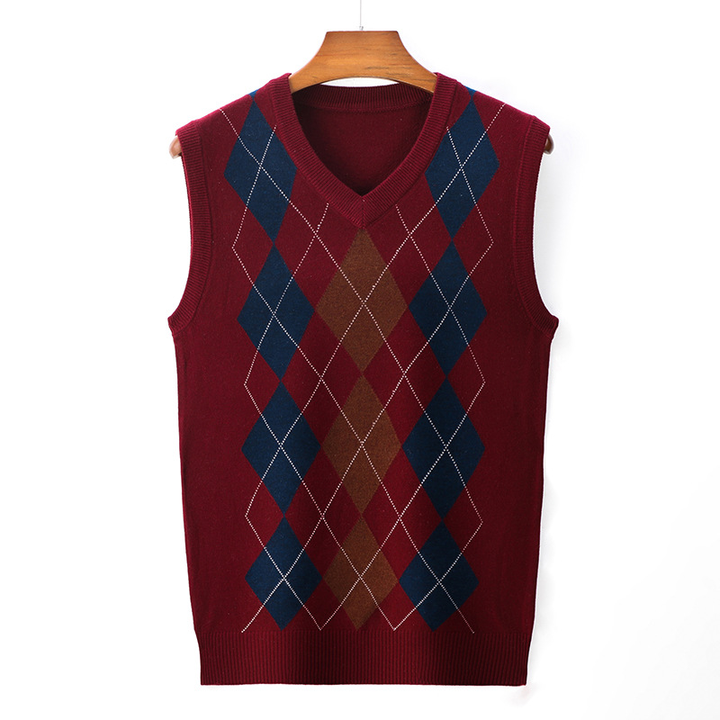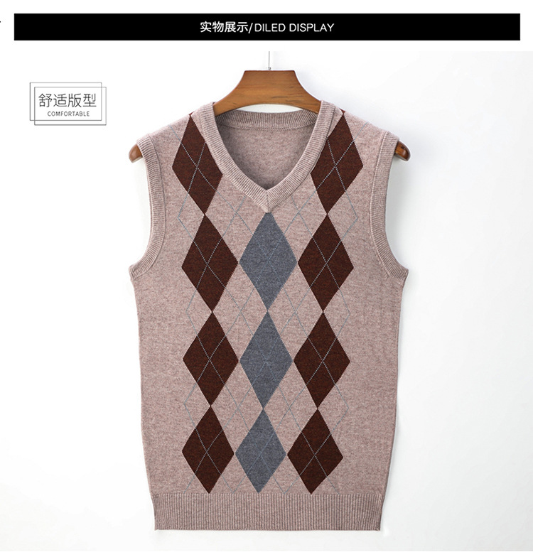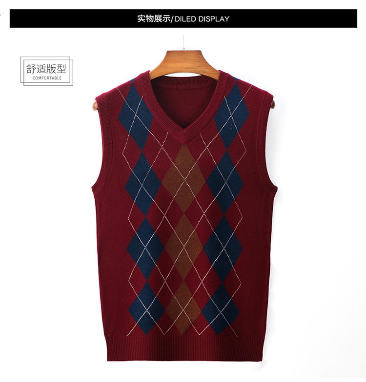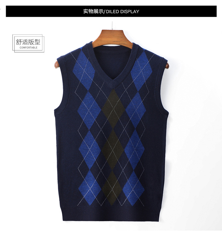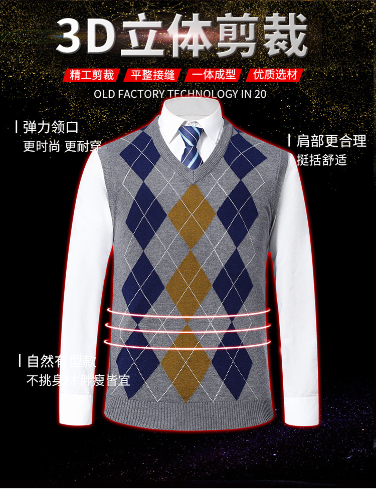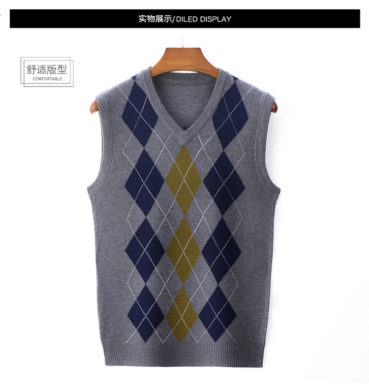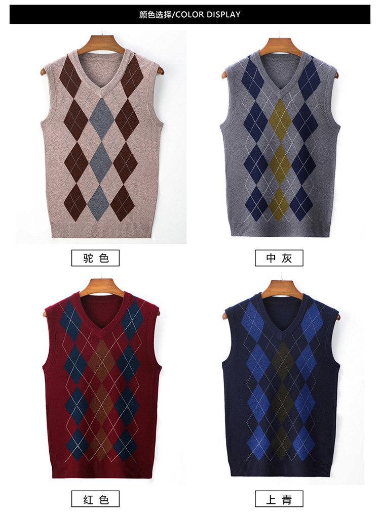 차세대 머리카락 가을과 겨울 모직 조끼 남성용 V 넥 따뜻한 스웨터 조끼 민소매 양복 조끼 아빠 스웨터스토어 가기