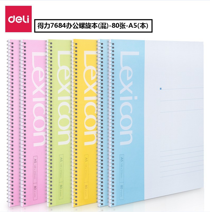 델리 7684 나선형 노트북 80 페이지 나선형 주문 A5 사무실 노트북 메모장 A5 소프트 카피