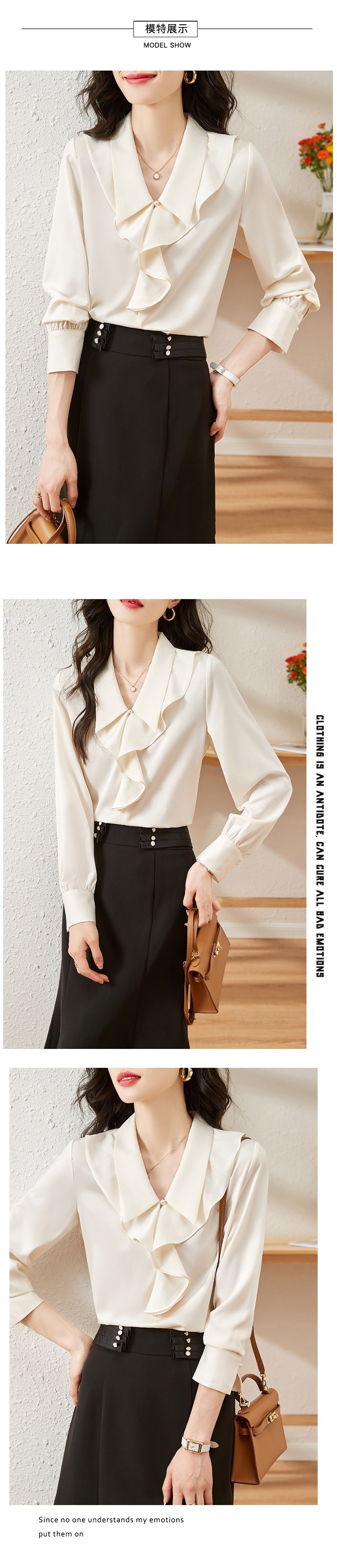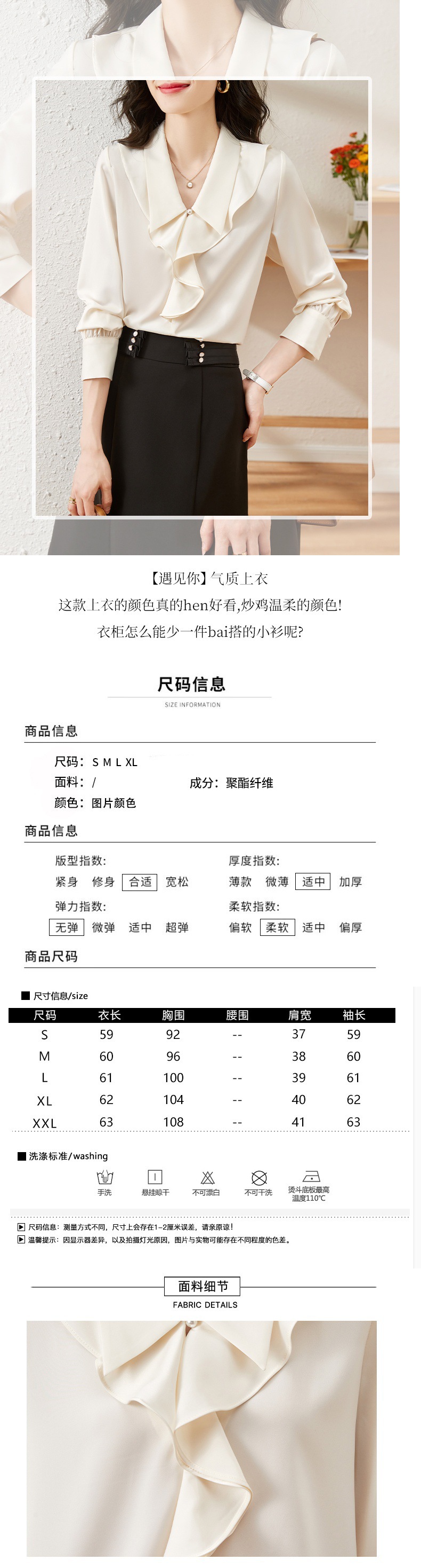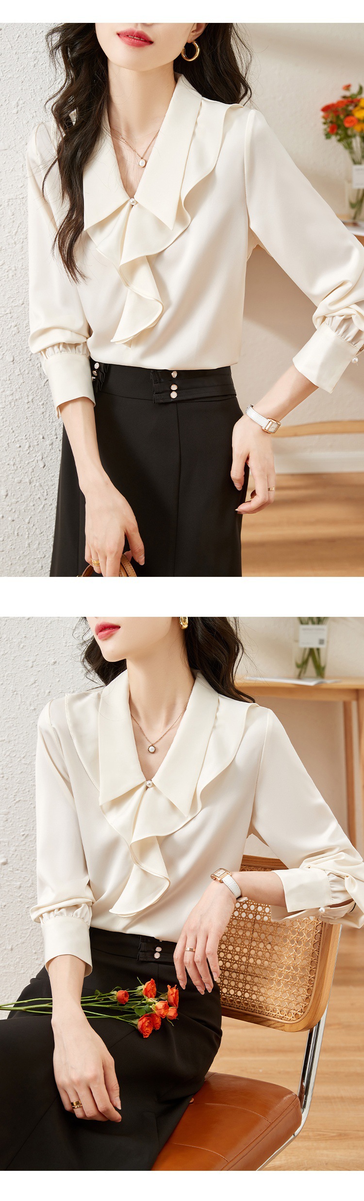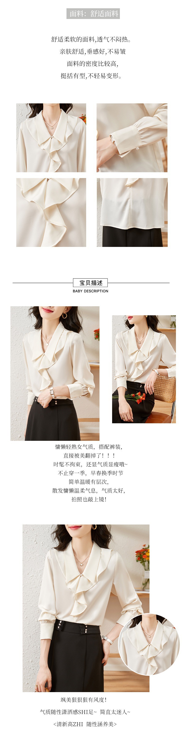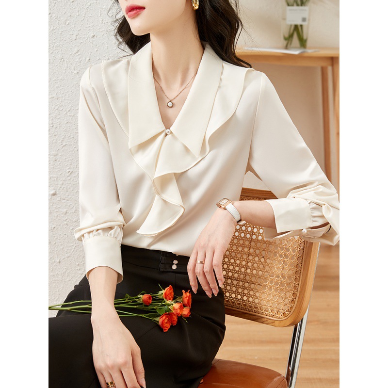엄선~2025 봄 신상품 연잎 칼라 새틴 셔츠 여성 디자인 감각이 돋보이는 프렌치 스타일 달콤하고 독특한 상의