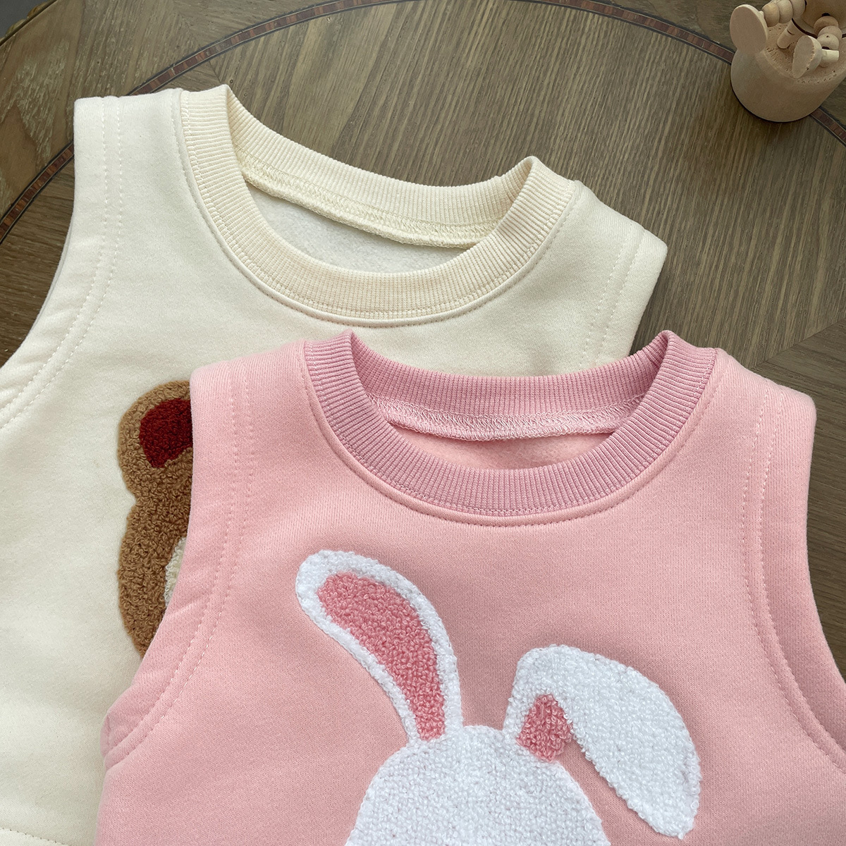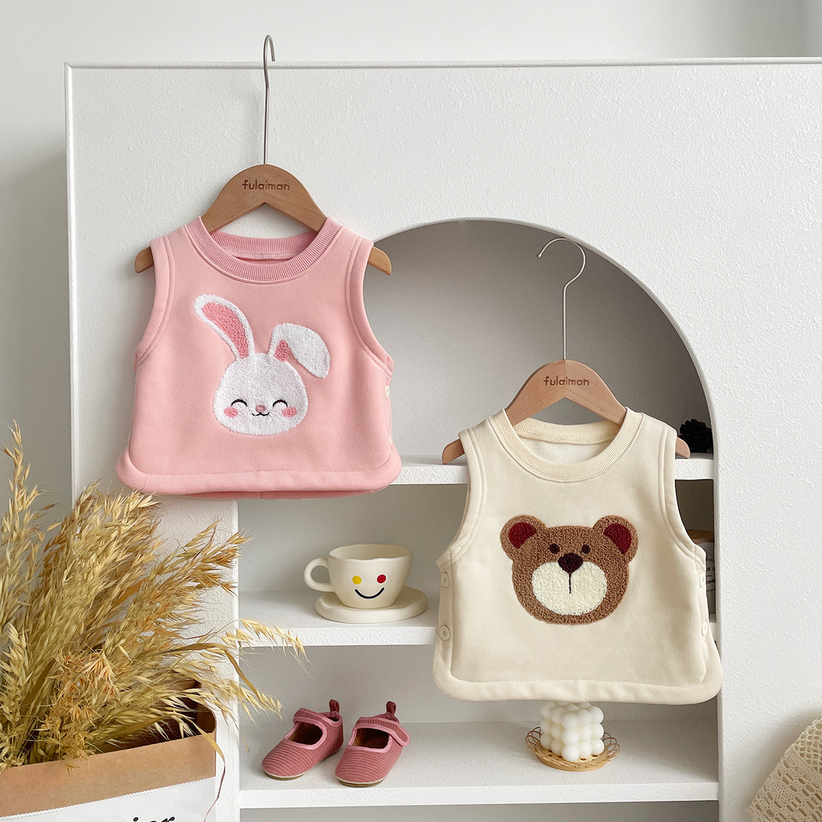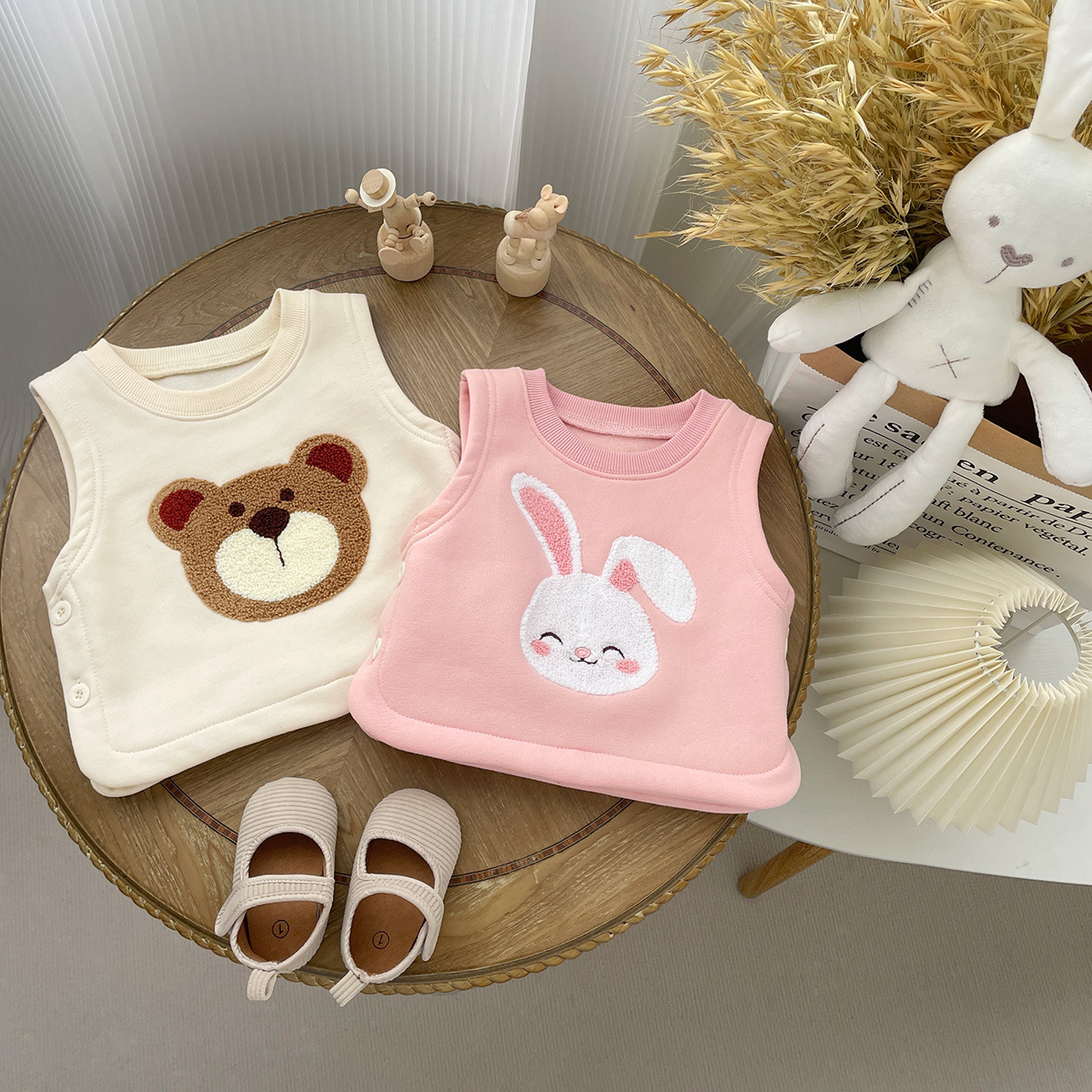 2025 아기 겨울옷 한국 스타일 어린이 귀여운 만화 플러스 벨벳 조끼 남녀 아기 겨울 따뜻한 다용도 조끼