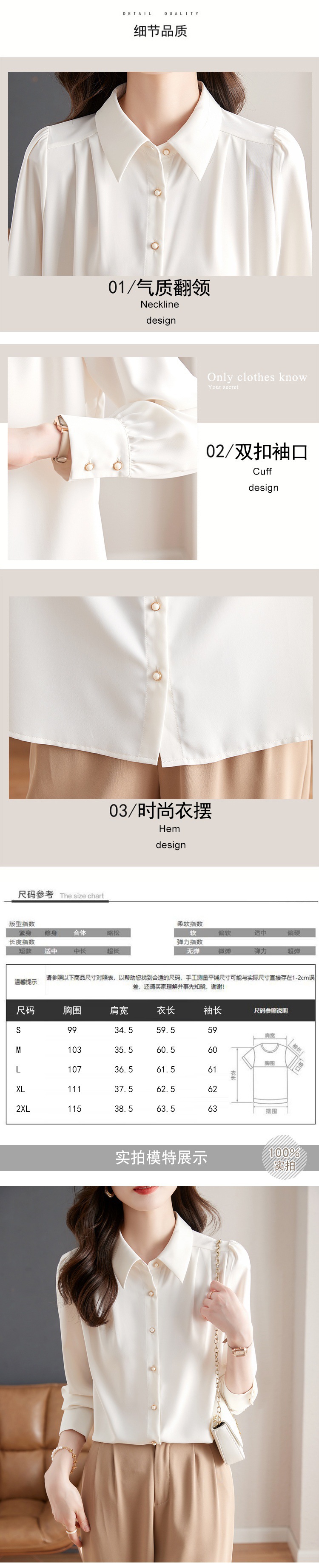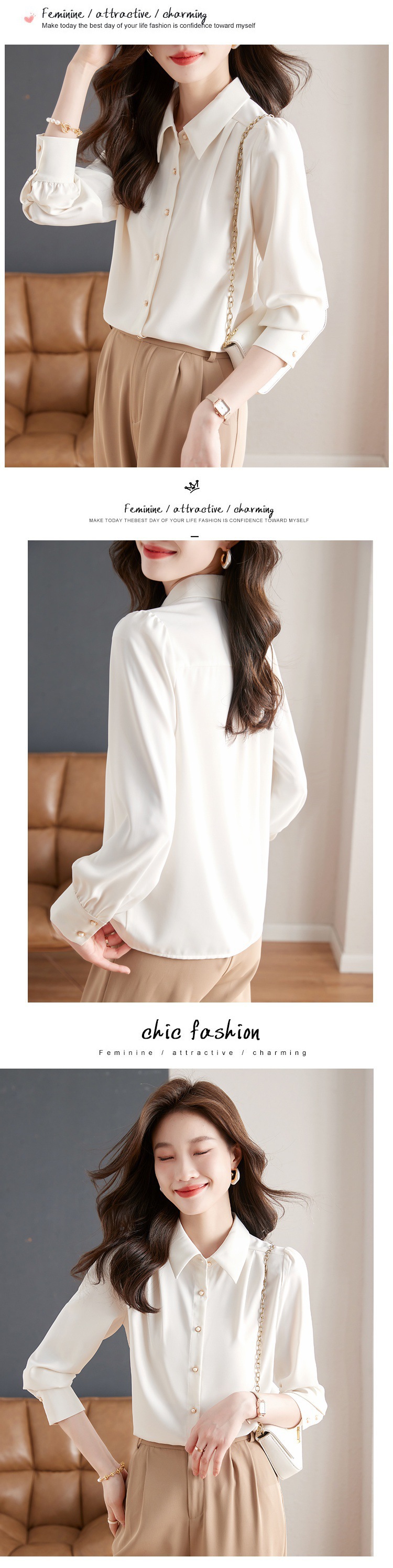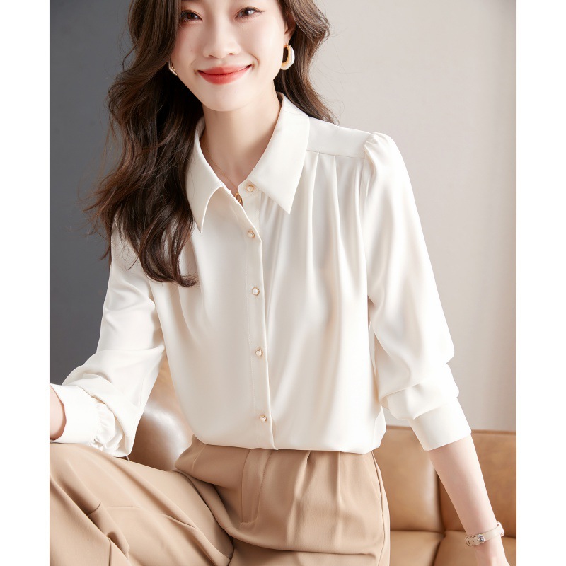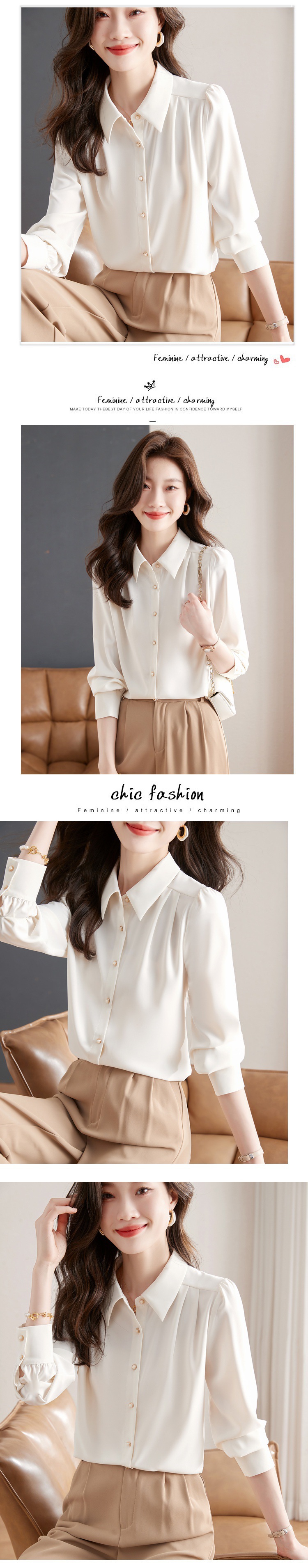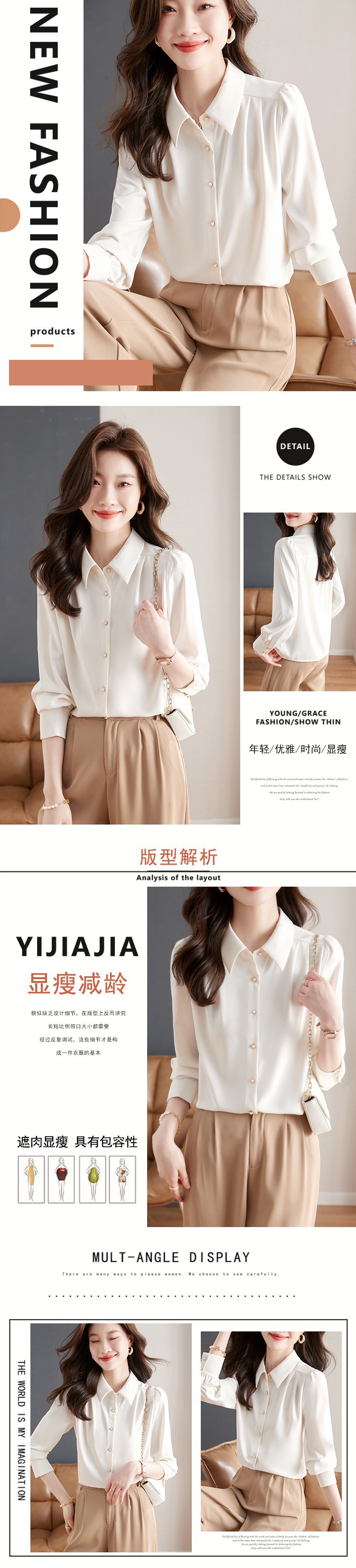 엄선된 신년 봄 의류, 통근 이너웨어, 틈새 탑, 라펠 셔츠, 여성용 긴팔 쉬폰 셔츠스토어 가기
