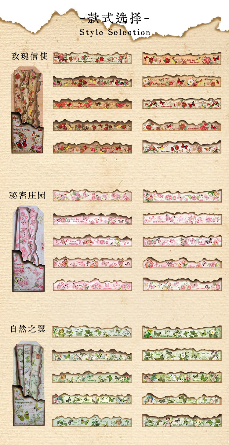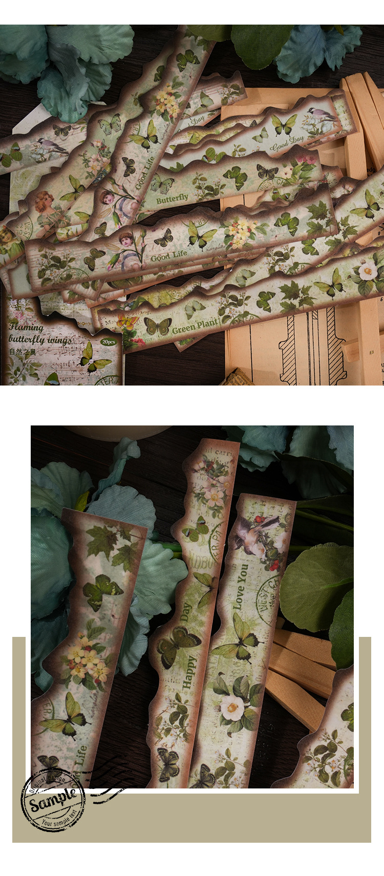 이탈리아 새 불타는 날개 시리즈 스티커 팩 레트로 꽃 나비 손 계정 DIY 콜라주 장식 기본 재료 종이