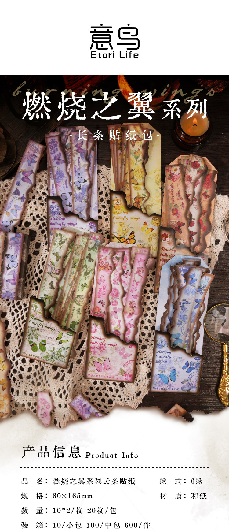이탈리아 새 불타는 날개 시리즈 스티커 팩 레트로 꽃 나비 손 계정 DIY 콜라주 장식 기본 재료 종이스토어 가기